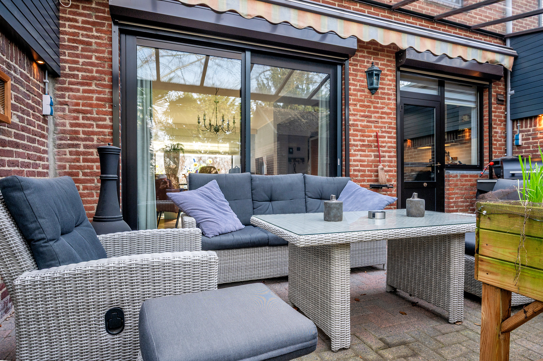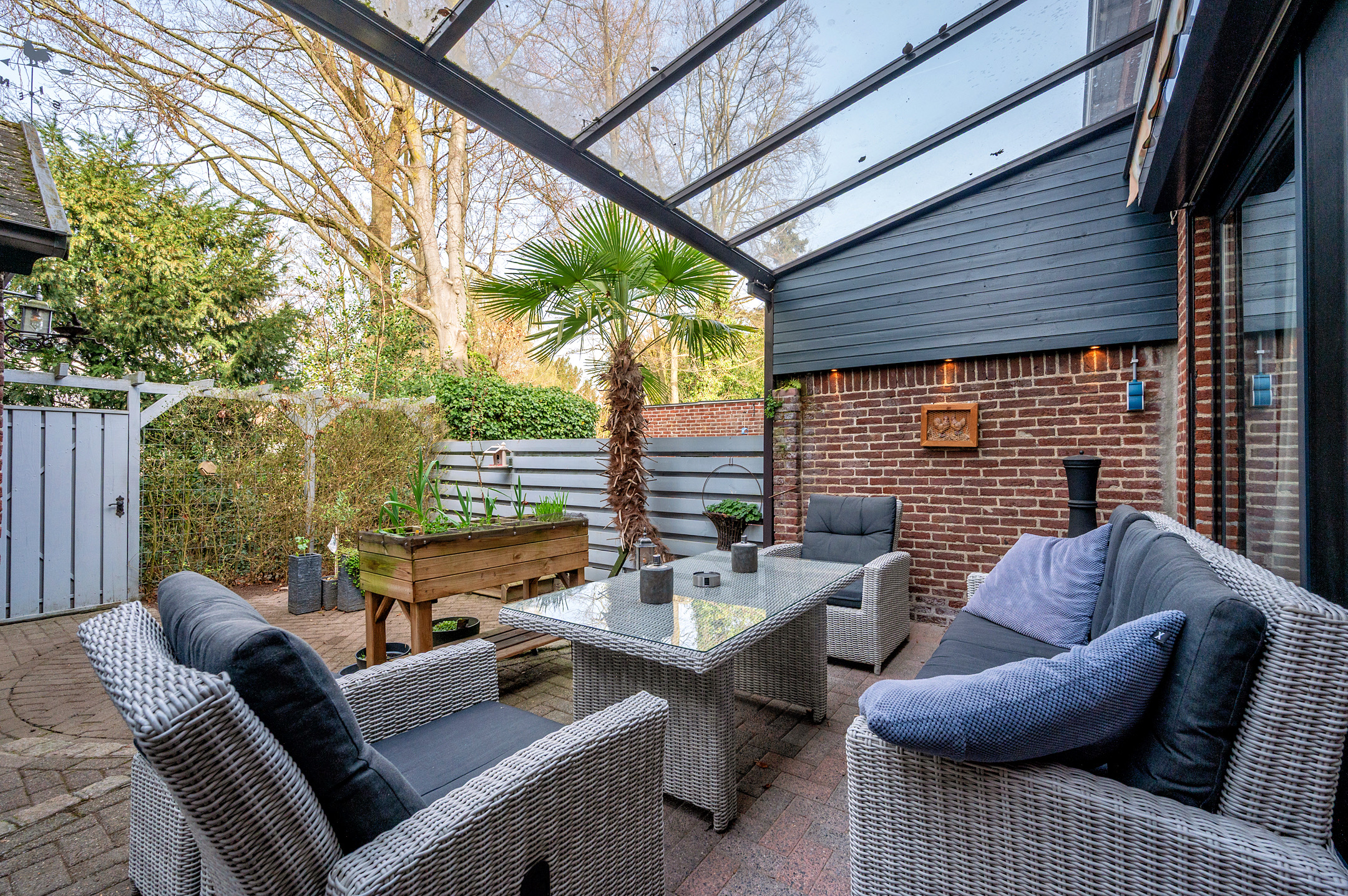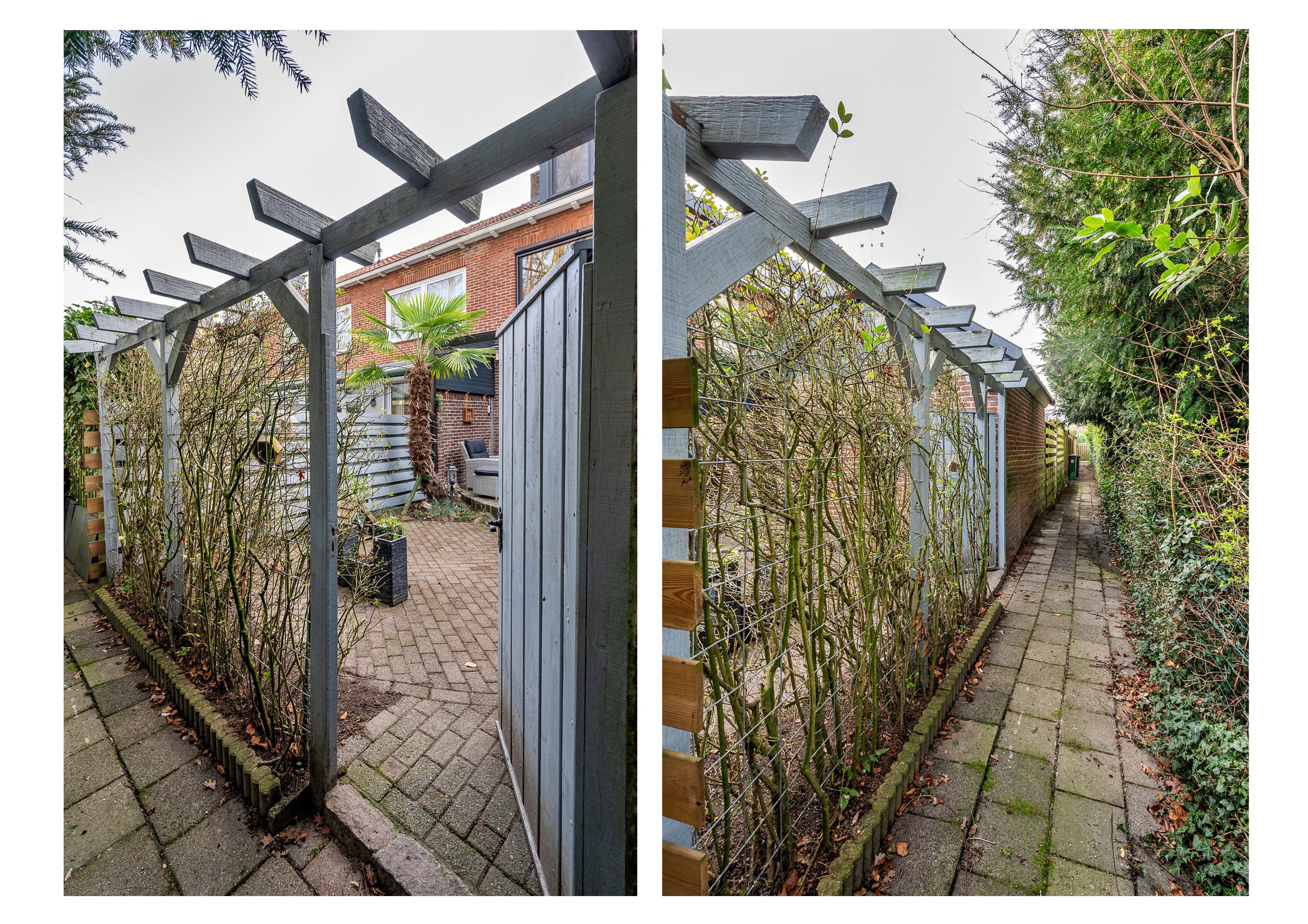 De tuin is voorzien van een overkapping en zonwering. Tevens is er tuinverlichting aanwezig. De tuin is geheel omheind en voorzien van veel privacy. Verder beschikt de tuin over een stenen berging en is er een vrije achterom.
