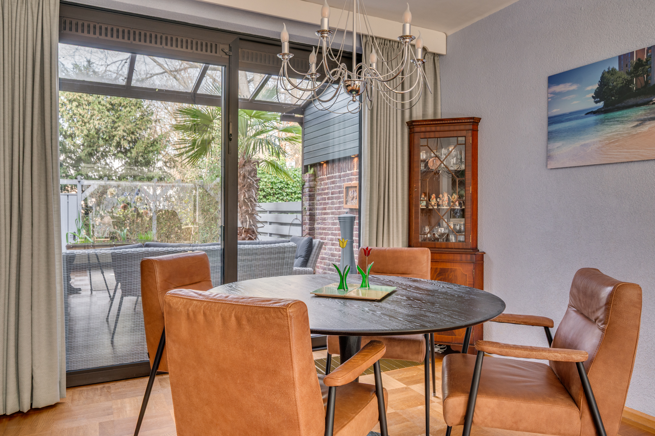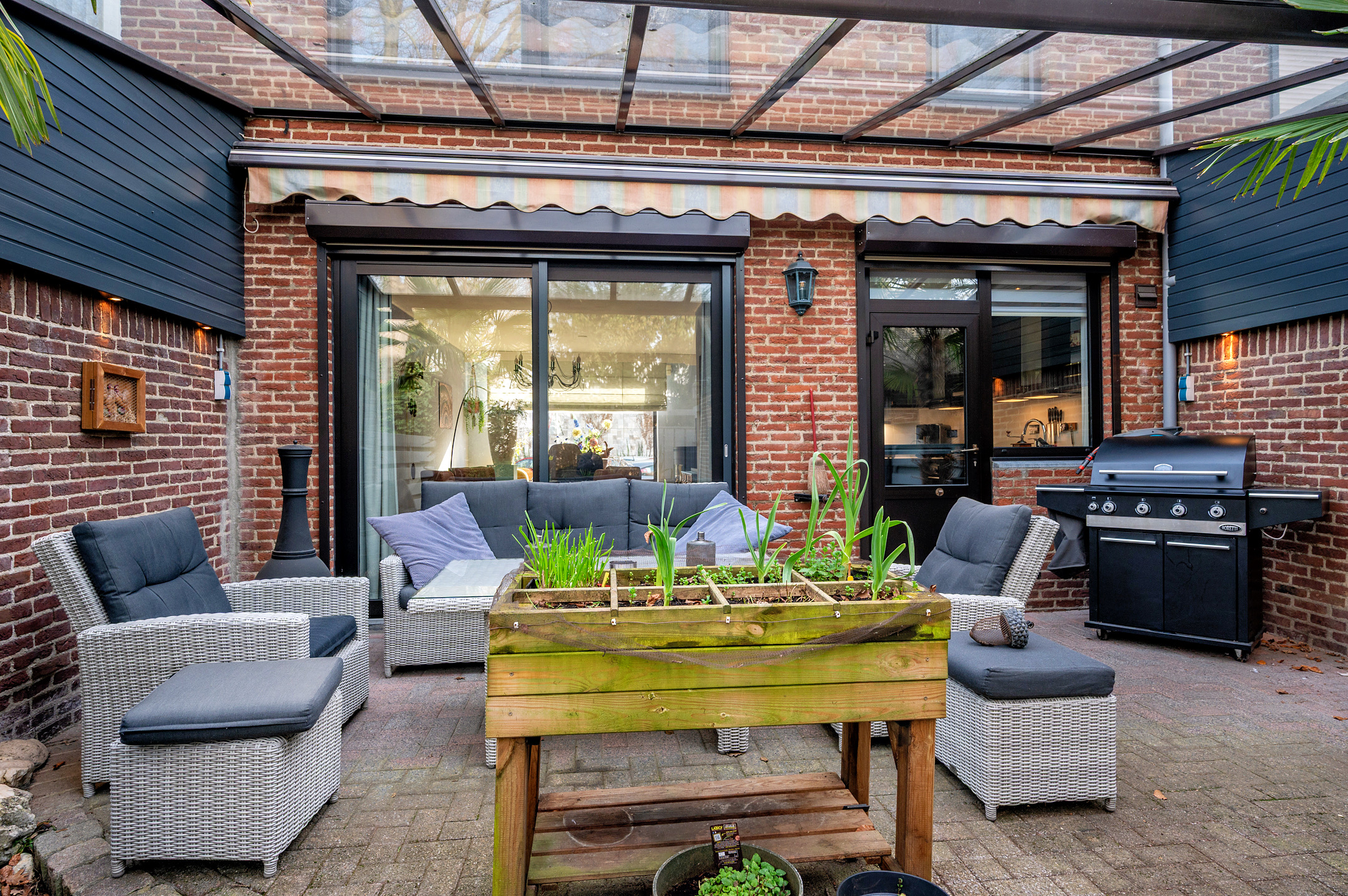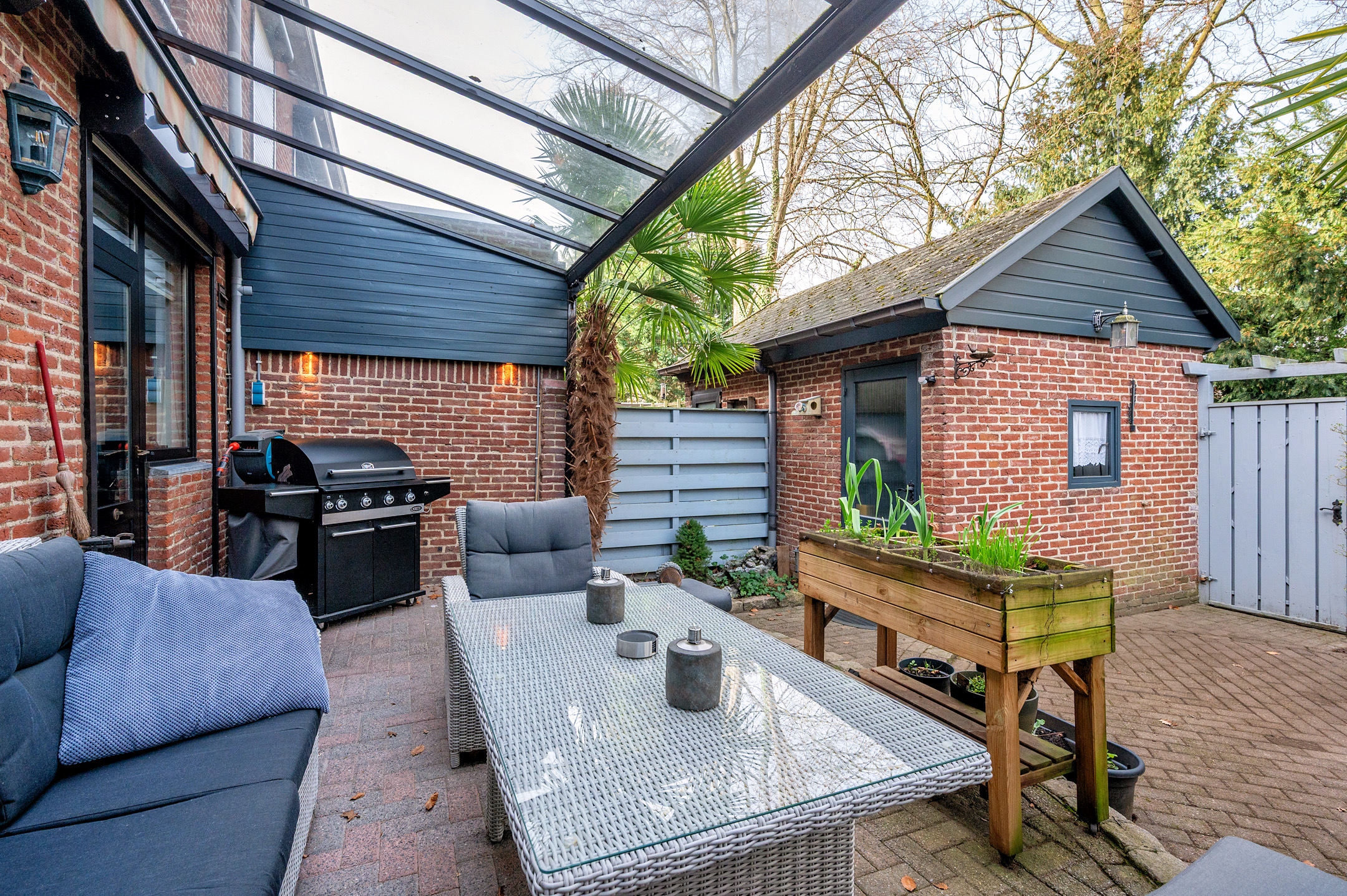De tuin is voorzien van een overkapping en zonwering. Tevens is er tuinverlichting aanwezig. De tuin is geheel omheind en voorzien van veel privacy. Verder beschikt de tuin over een stenen berging en is er een vrije achterom.