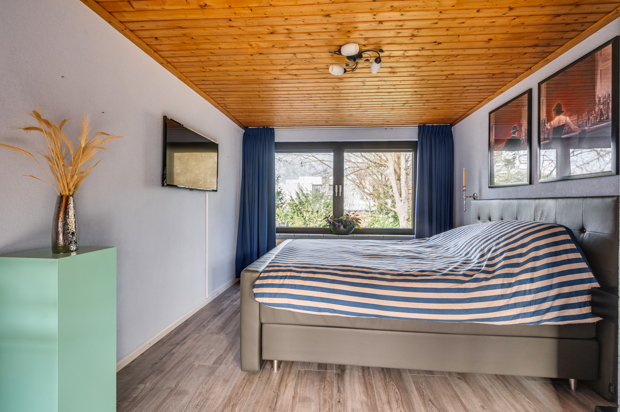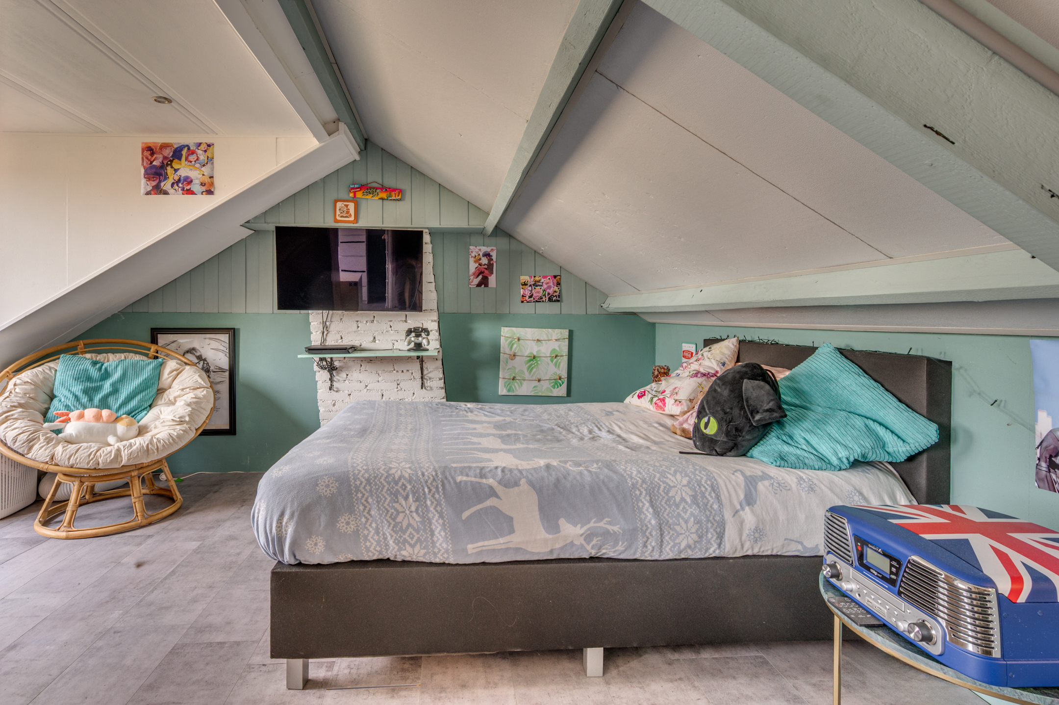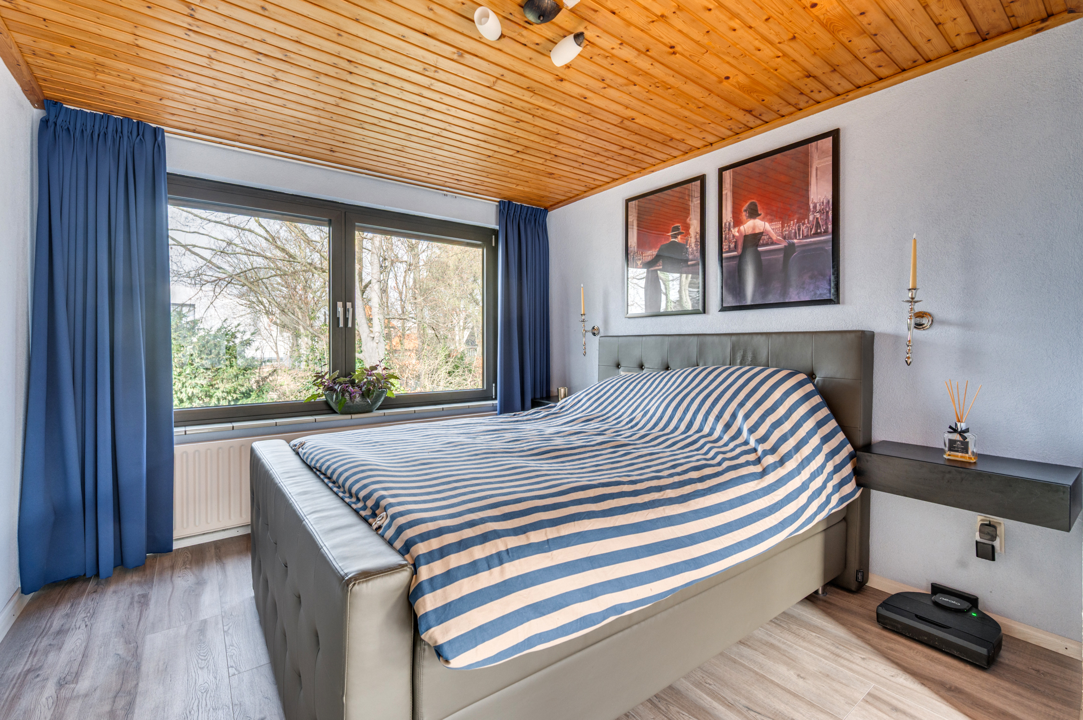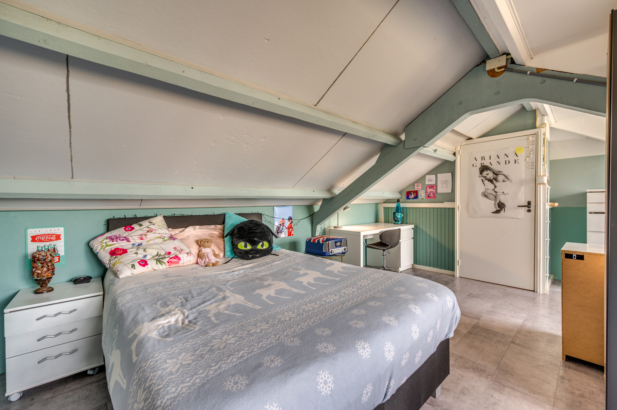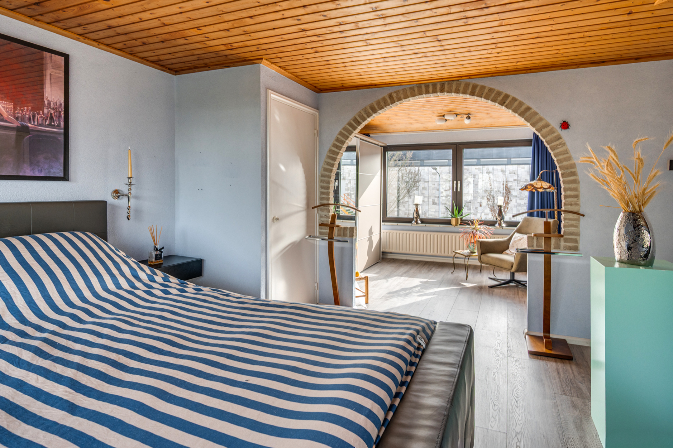 De vaste trap geeft toegang tot de 2e verdieping. Hier is een zeer ruime slaapkamer gerealiseerd door n dakkapel (2022) van ca. 5 meter breed.
