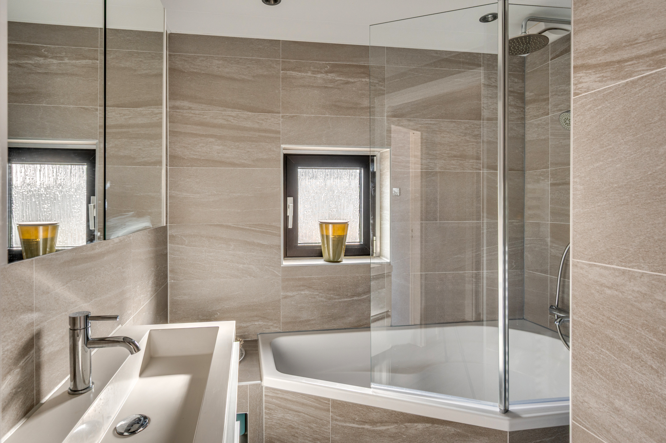 De overloop geeft toegang tot 2 slaapkamers. badkamer en vaste trapopgang naar de 2e verdieping. De slaapkamers zijn ca. 8m² en 25m² groot. De masterbedroom is gemakkelijk terug te brengen naar 2 grote slaapkamers. De badkamer welke aan de voorzijde van de woning is gelegen is geheel betegeld en in 2020 vernieuwd. De badkamer is voorzien van een groot ligbad met douchefaciliteit, wastafel met meubel, inbouwspots en een buitenraam. De gehele verdieping is voorzien van een laminaatvloer.