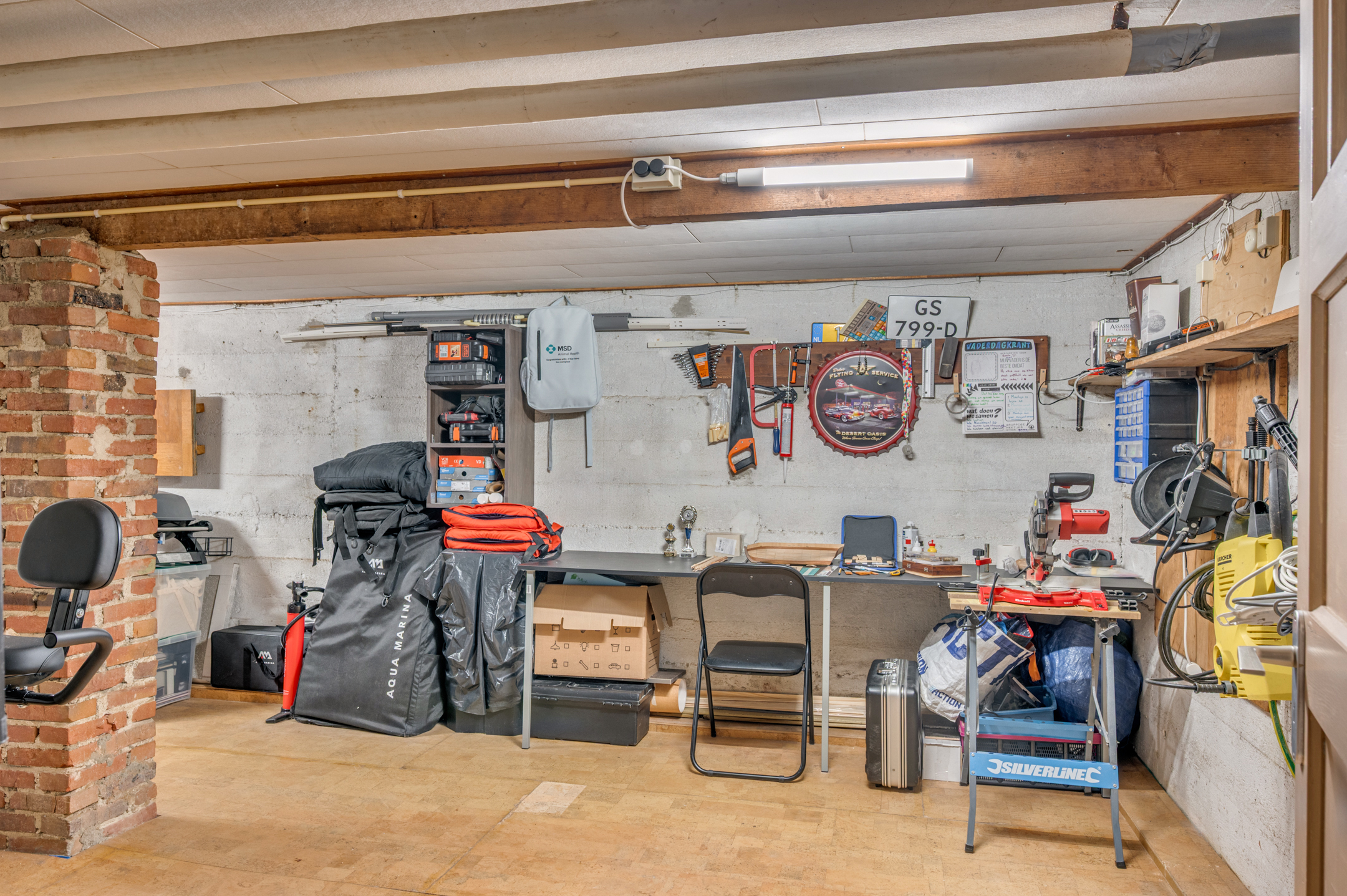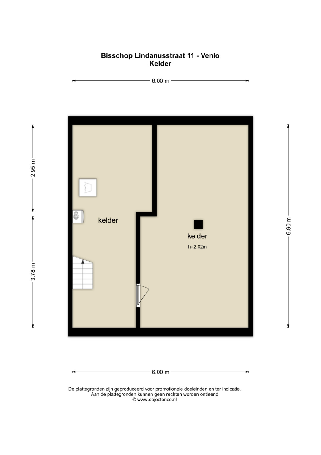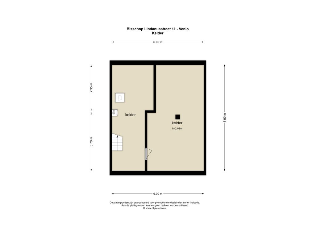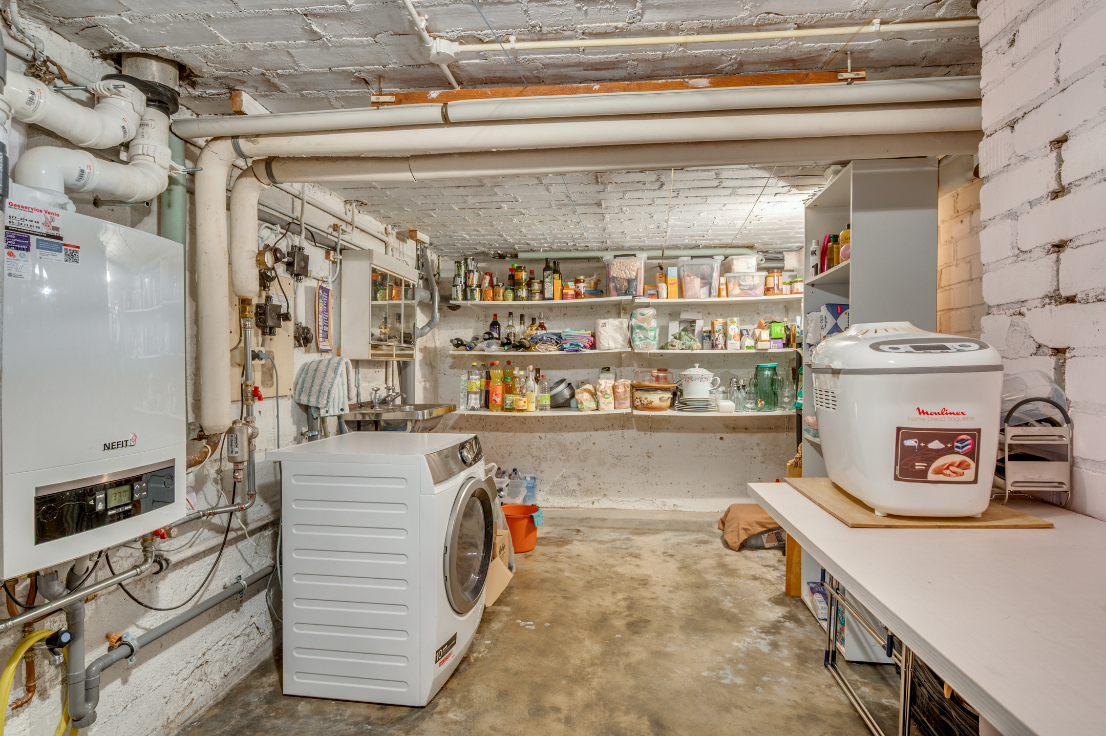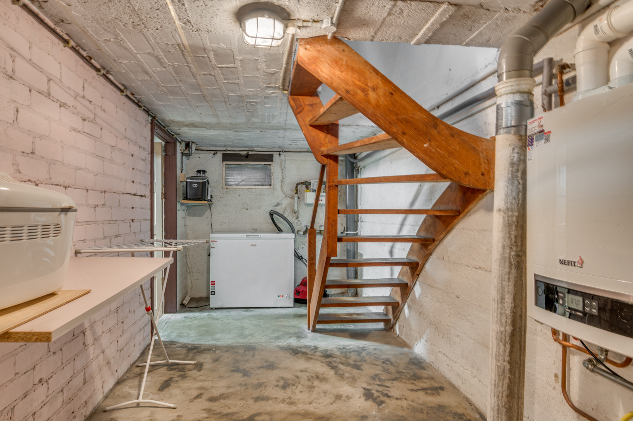 De woning is geheel onderkelderd en voorzien van 2 compartimenten. Deze ruimtes zijn verwarmd en hebben een hoogte van ca. 2 meter. Verder zijn hier de CV-ketel (Nefit 2019) en de witgoedaansluitingen te vinden.