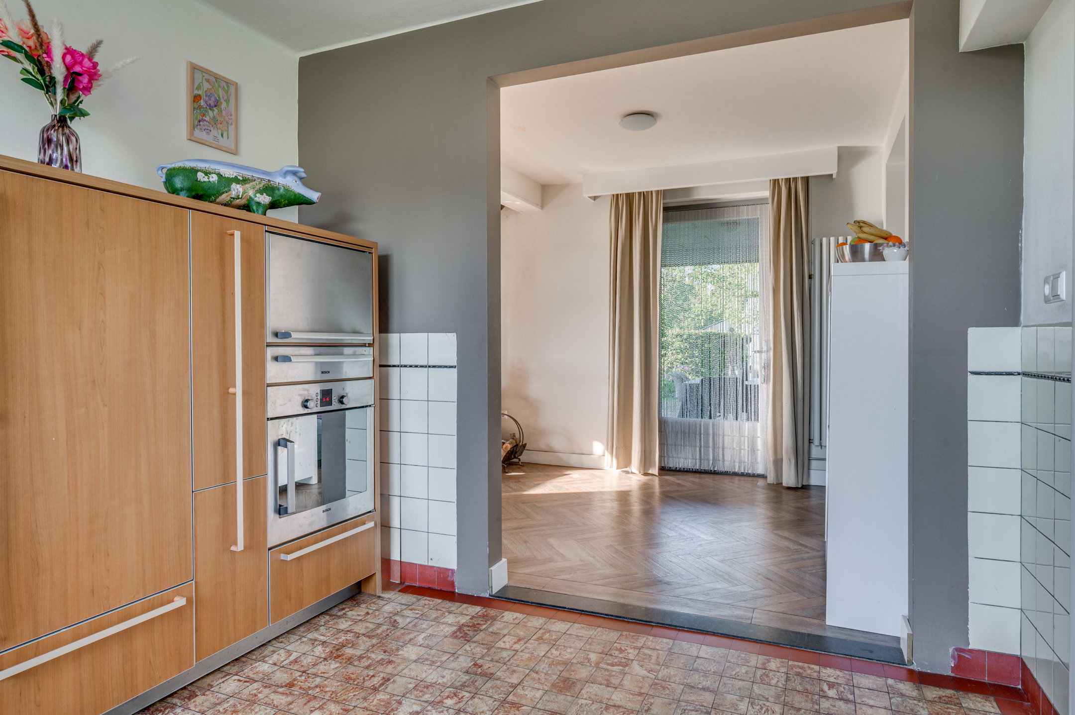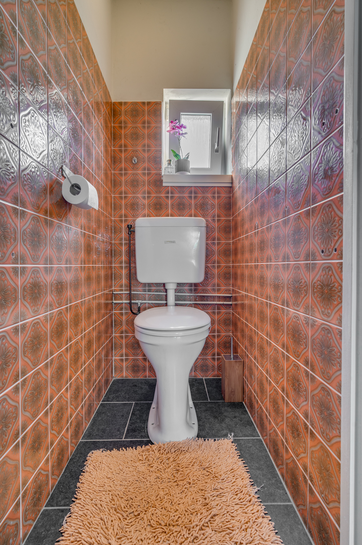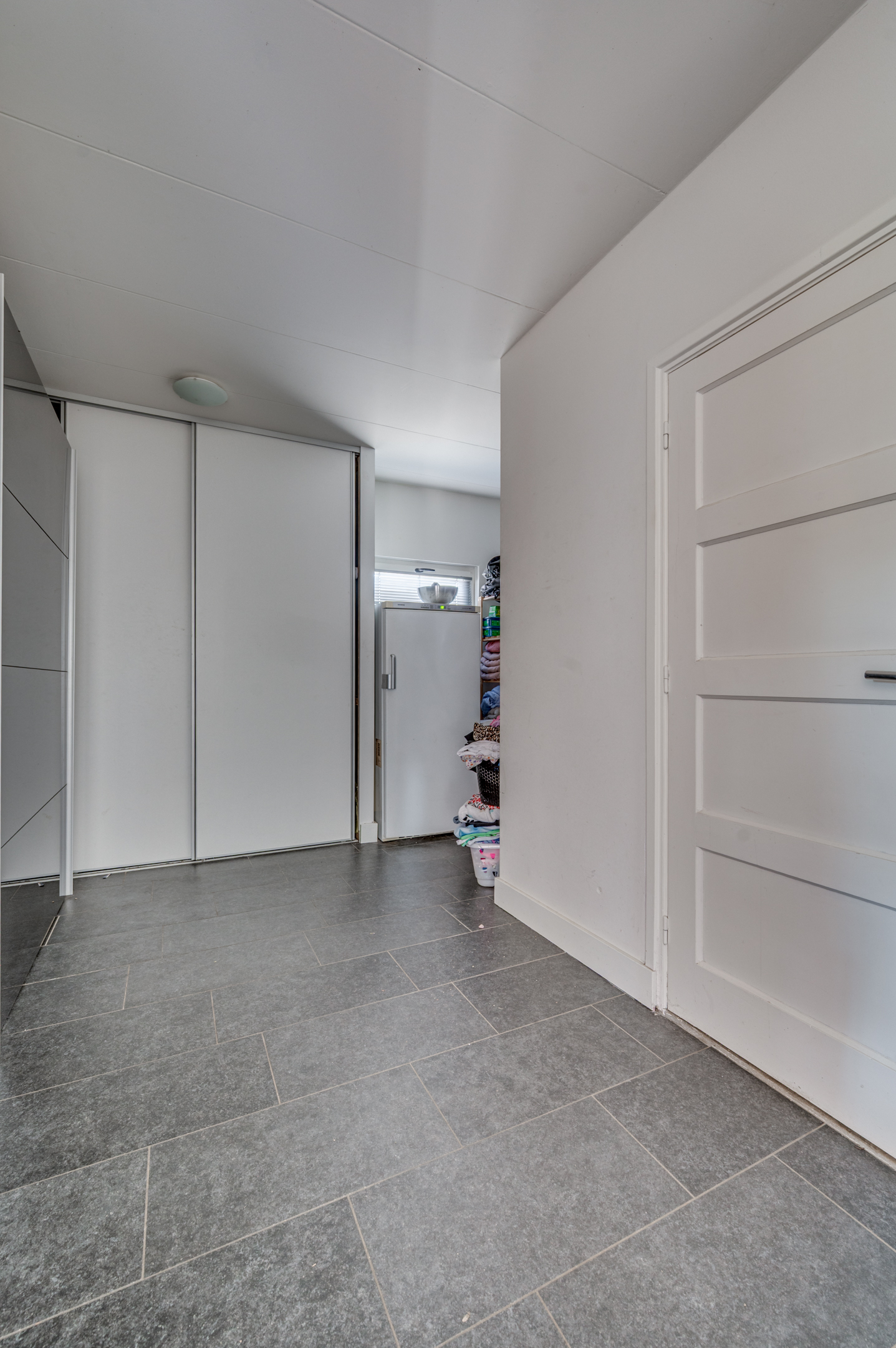 Via de beklinkerde oprit is de entree van de woning te bereiken. De hal welke is voorzien van een originele tegelvloer geeft toegang tot de meterkast, trapopgang naar de verdieping en loopdeur naar de open keuken. De keuken is voorzien van een 5-pits gas/propaan fornuis, afzuigkap, koelkast, magnetron, oven, warmhoudplaat, vaatwasmachine en veel opbergruimte. Vanuit de keuken is er toegang tot de voorraadkast, wasruimte, eetkamer, woonkamer en overkapping. De wasruimte is zeer ruim van opzet en beschikt over inbouwkasten. Verder is er toegang tot de separate toiletruimte, badkamer en loopdeur naar de tuin. De toiletruimte is deels betegeld en voorzien van een toilet en buitenraam. De badkamer beschikt over een inloopdouche, toilet, ligbad met douchefaciliteit, wastafel met meubel, designradiator en buitenraam.