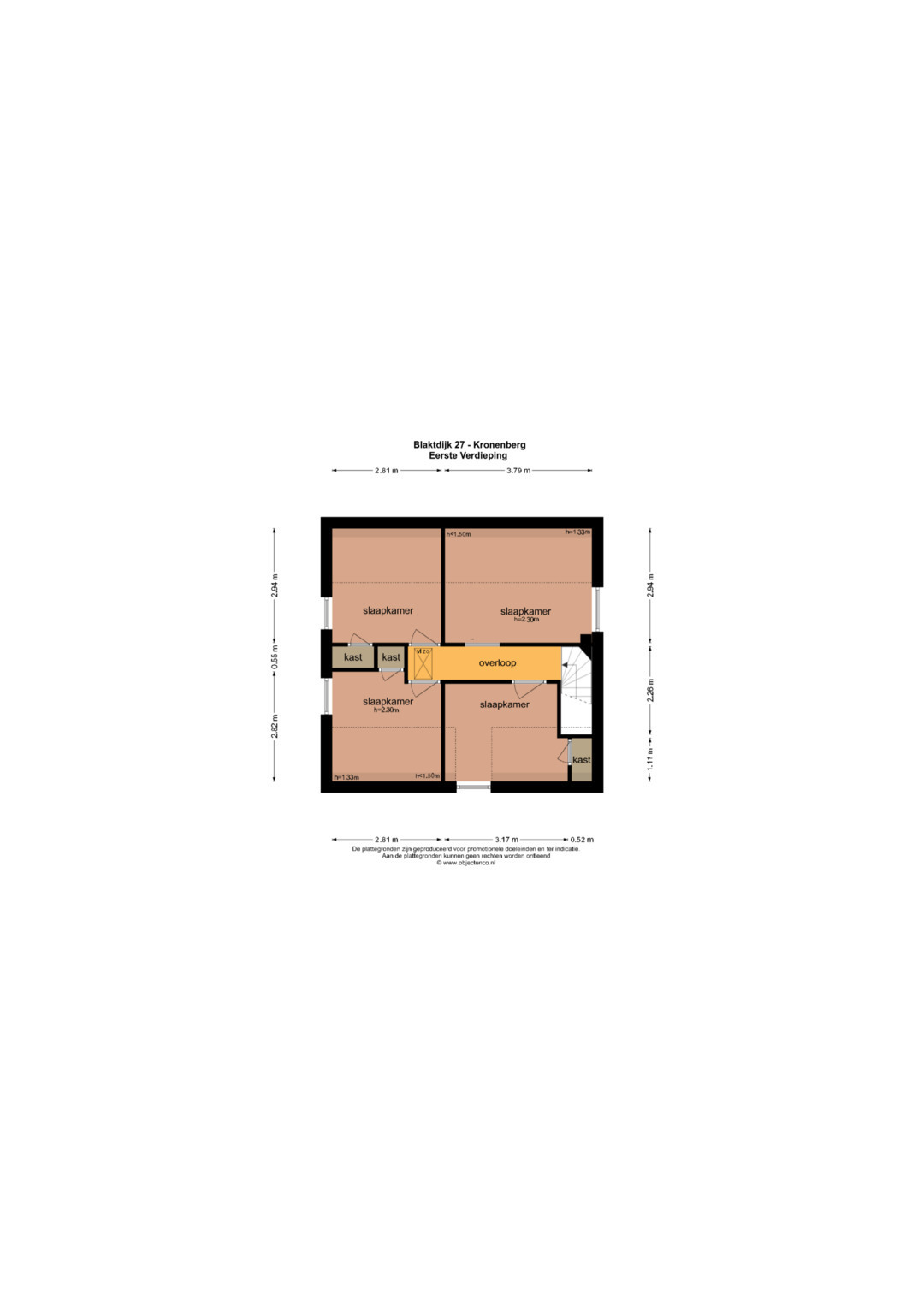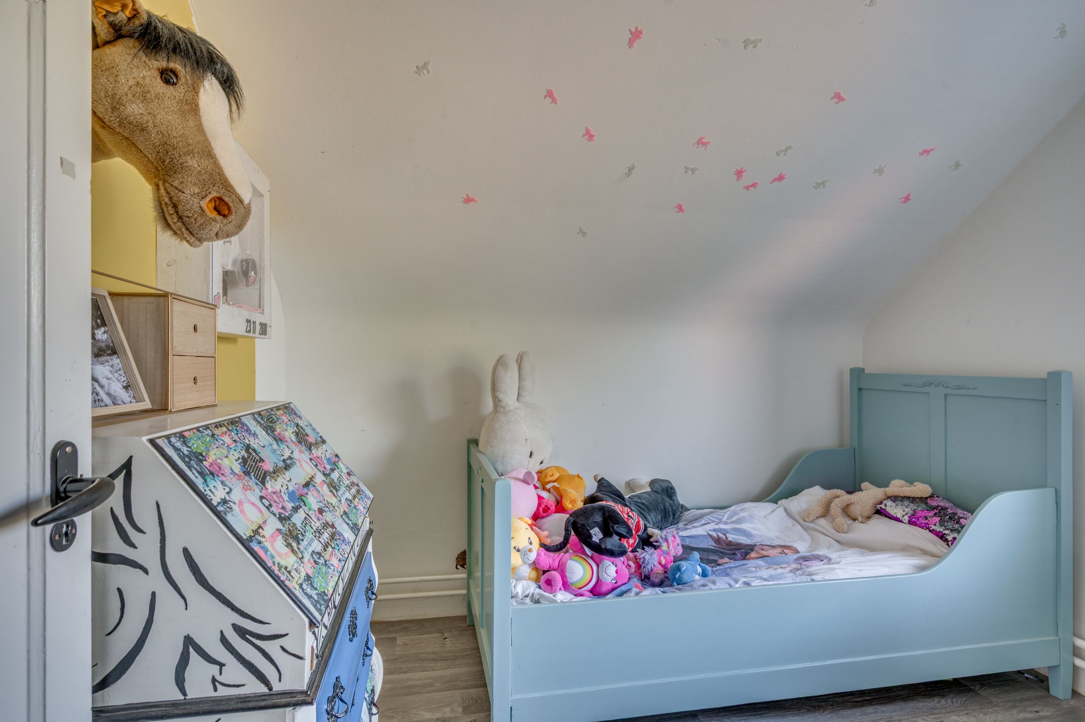 De overloop geeft toegang tot de 4 slaapkamers. De slaapkamers zijn ruim van opzet en allen voorzien van een laminaatvloer. 3 slaapkamers beschikken verder over muurkasten.
