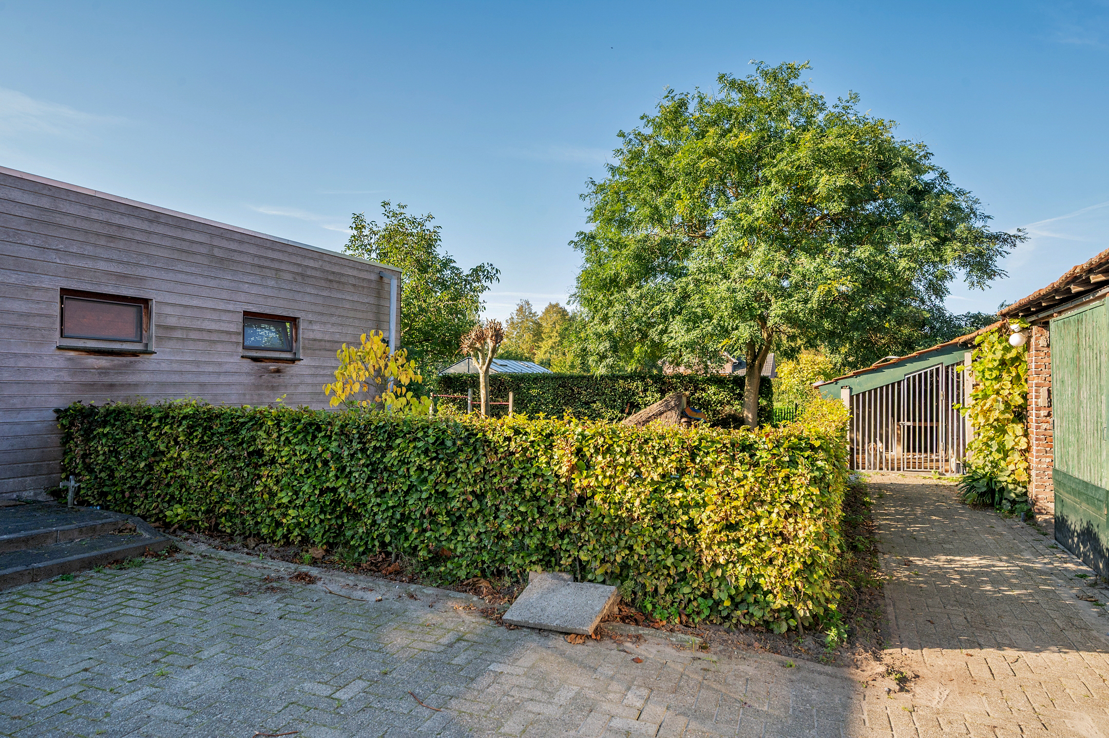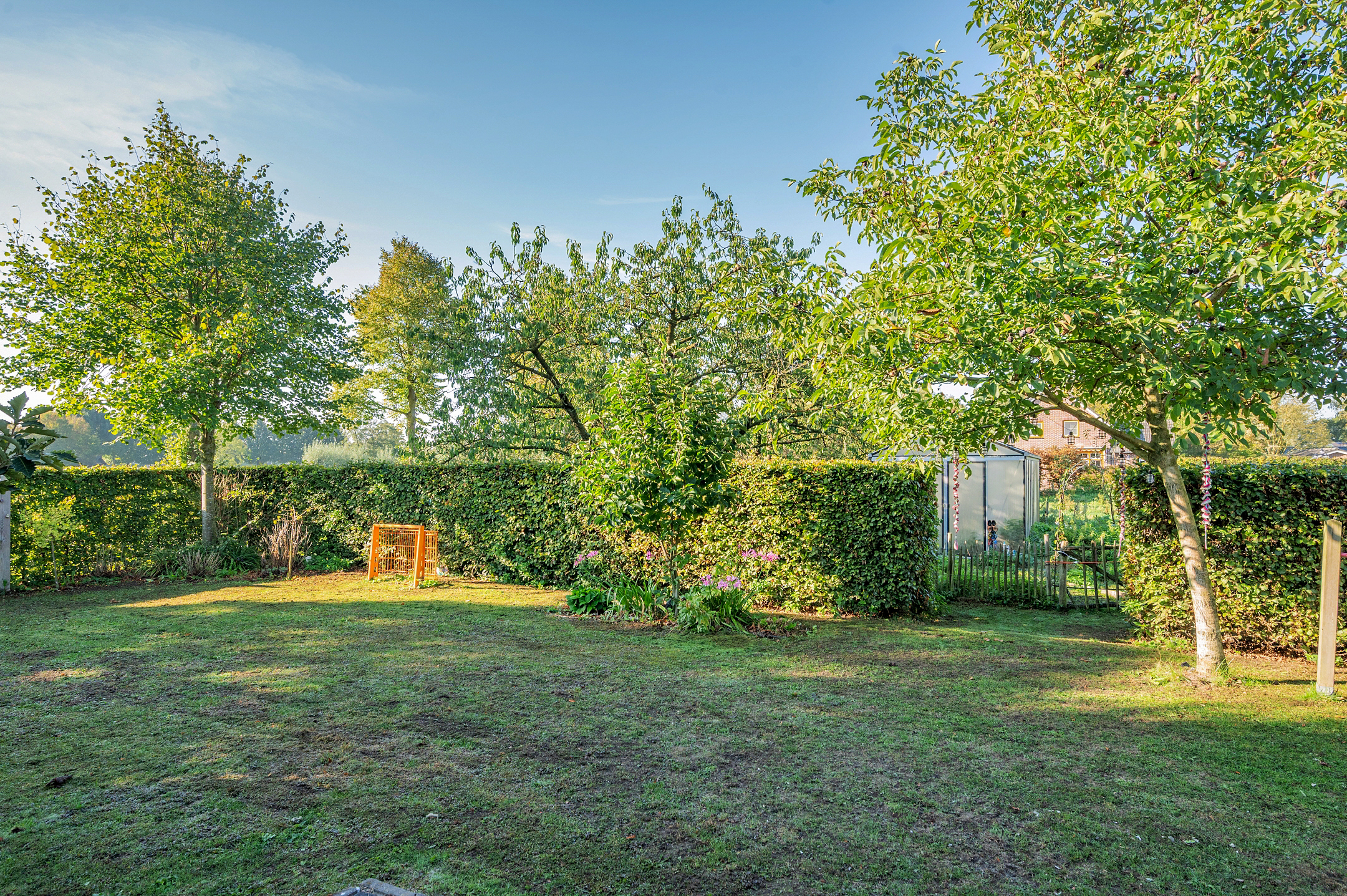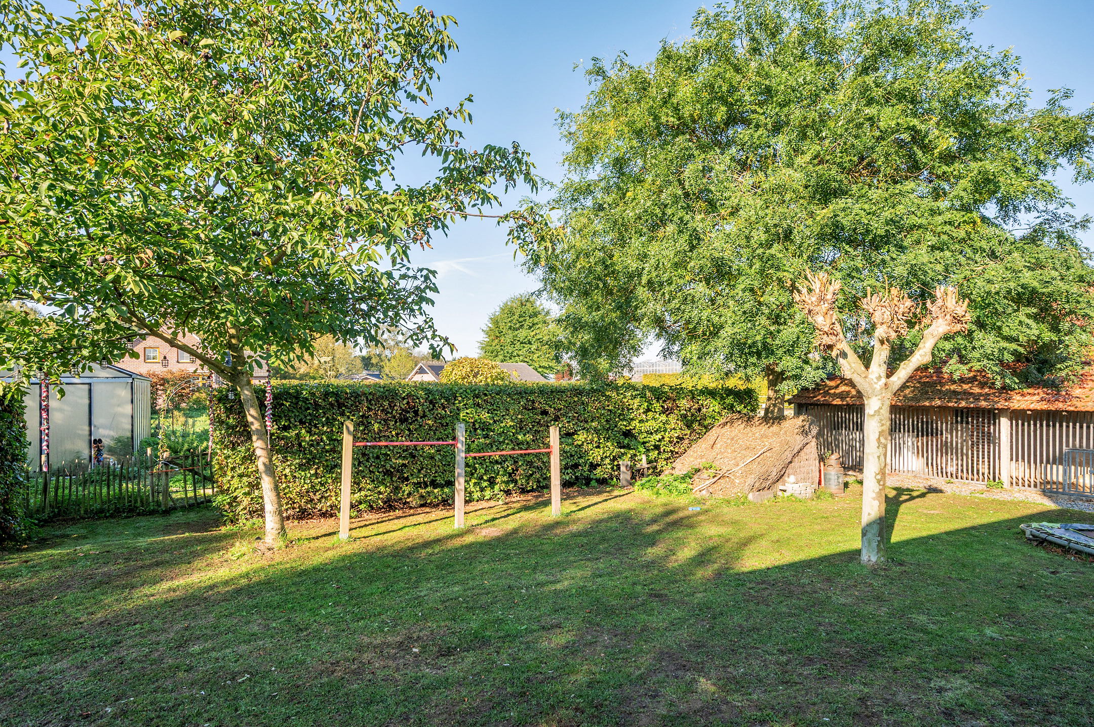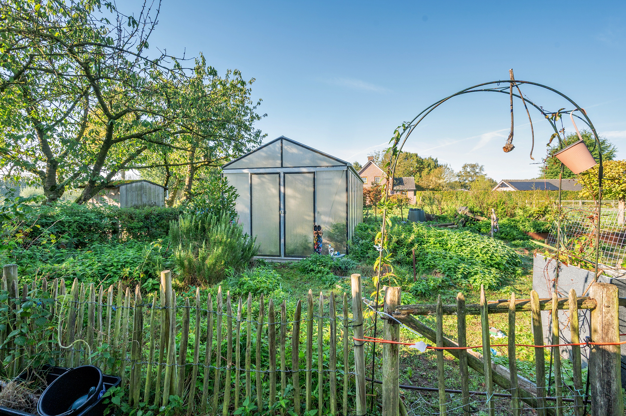 De zeer ruime tuin biedt ontzettend veel mogelijkheden. De tuin beschikt over een privé gedeelte, een rijbak van 19m*38m groot, een grote schuur met 2 paardenboxen met krachtstroom, kantoorunit, een grootte wei, tuinderskast. Verder is er een propaangastank aanwezig.