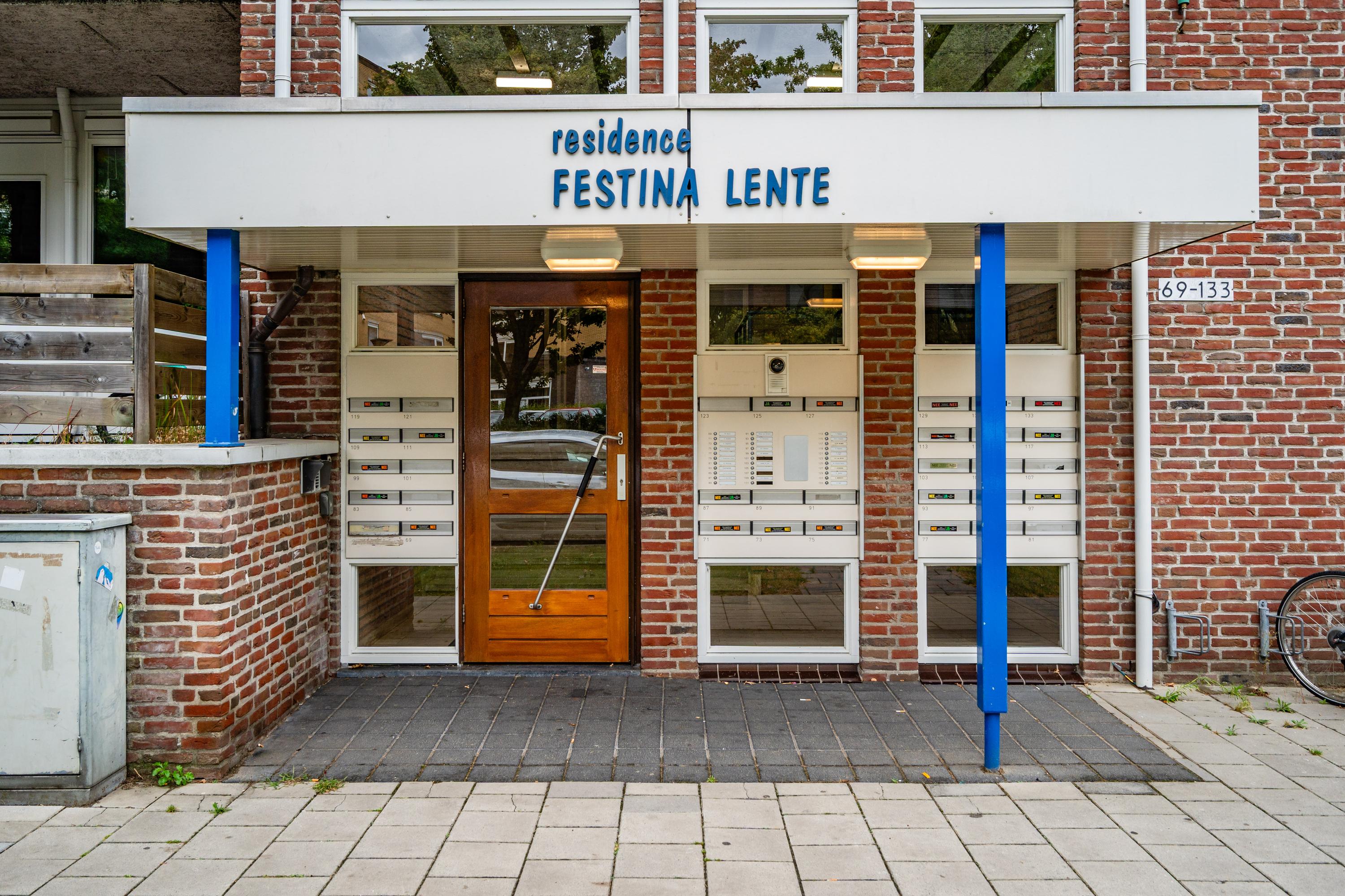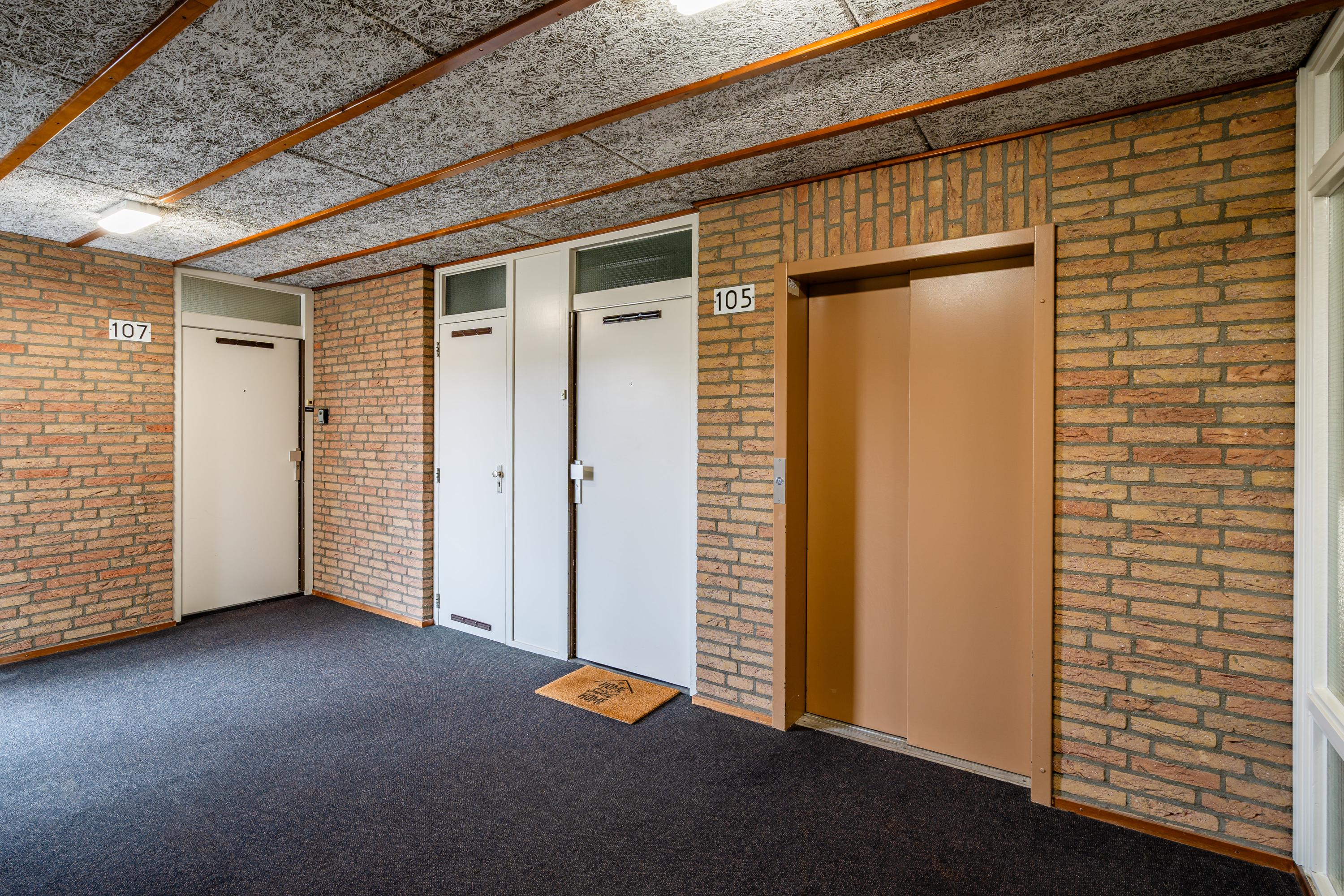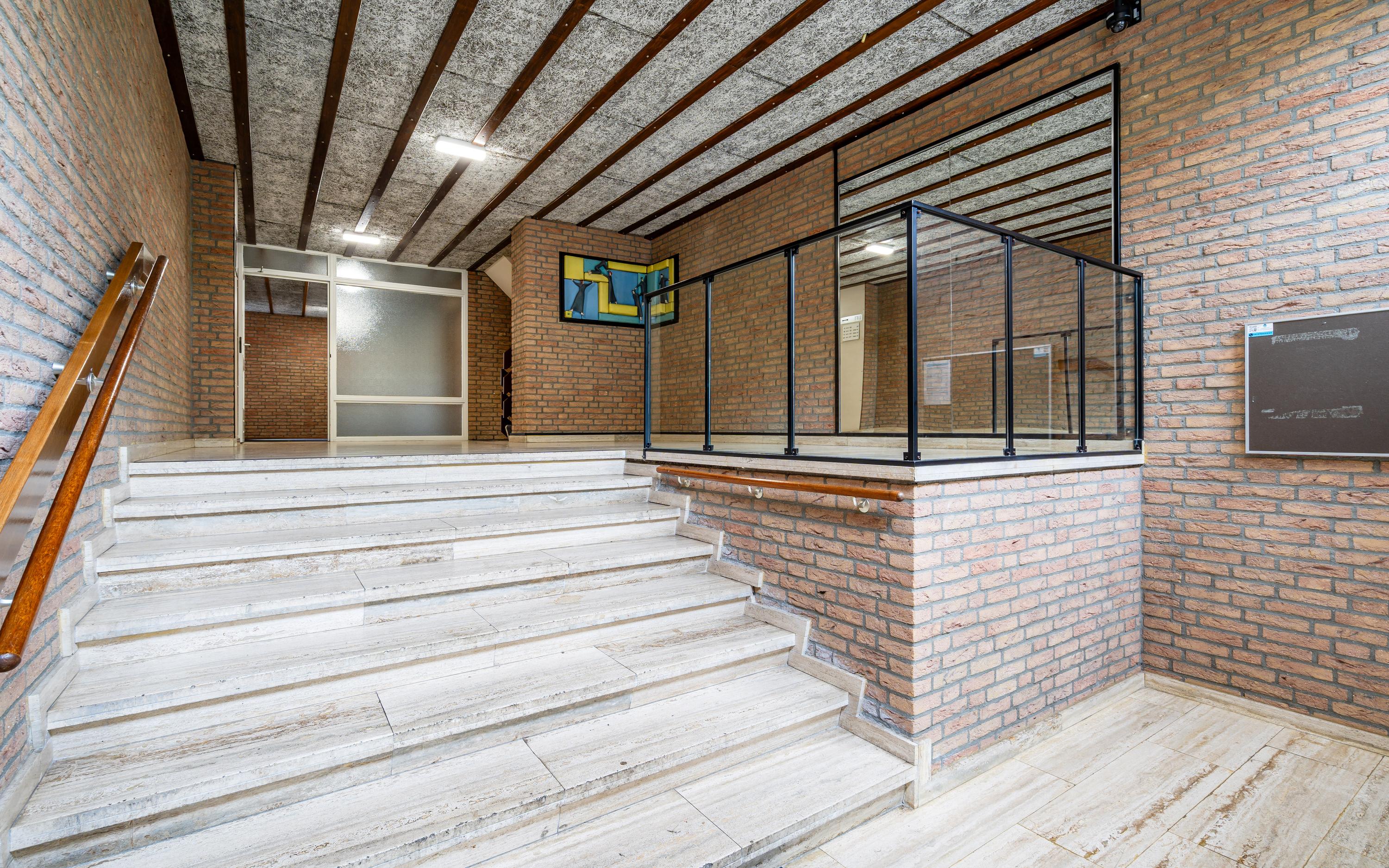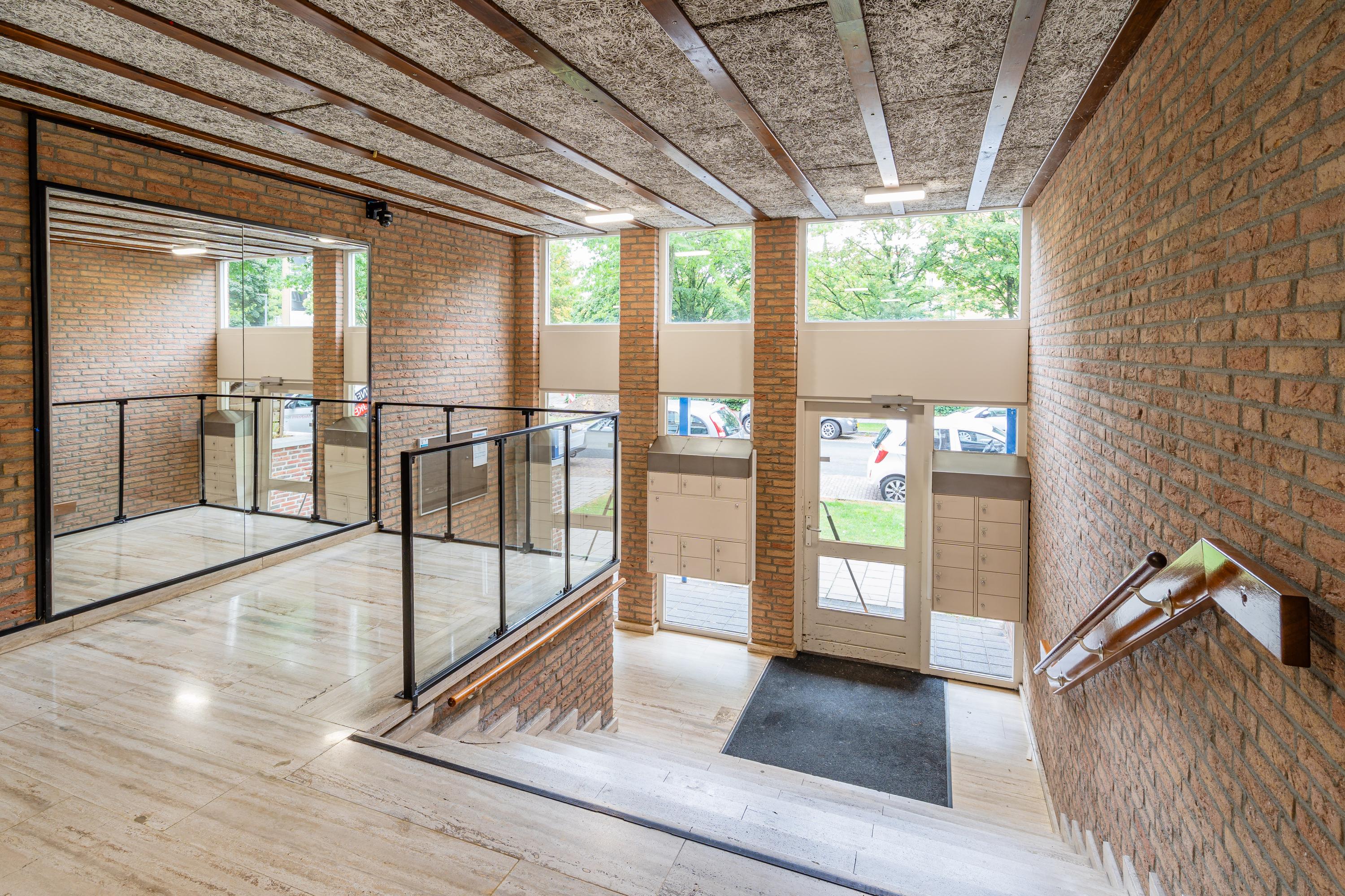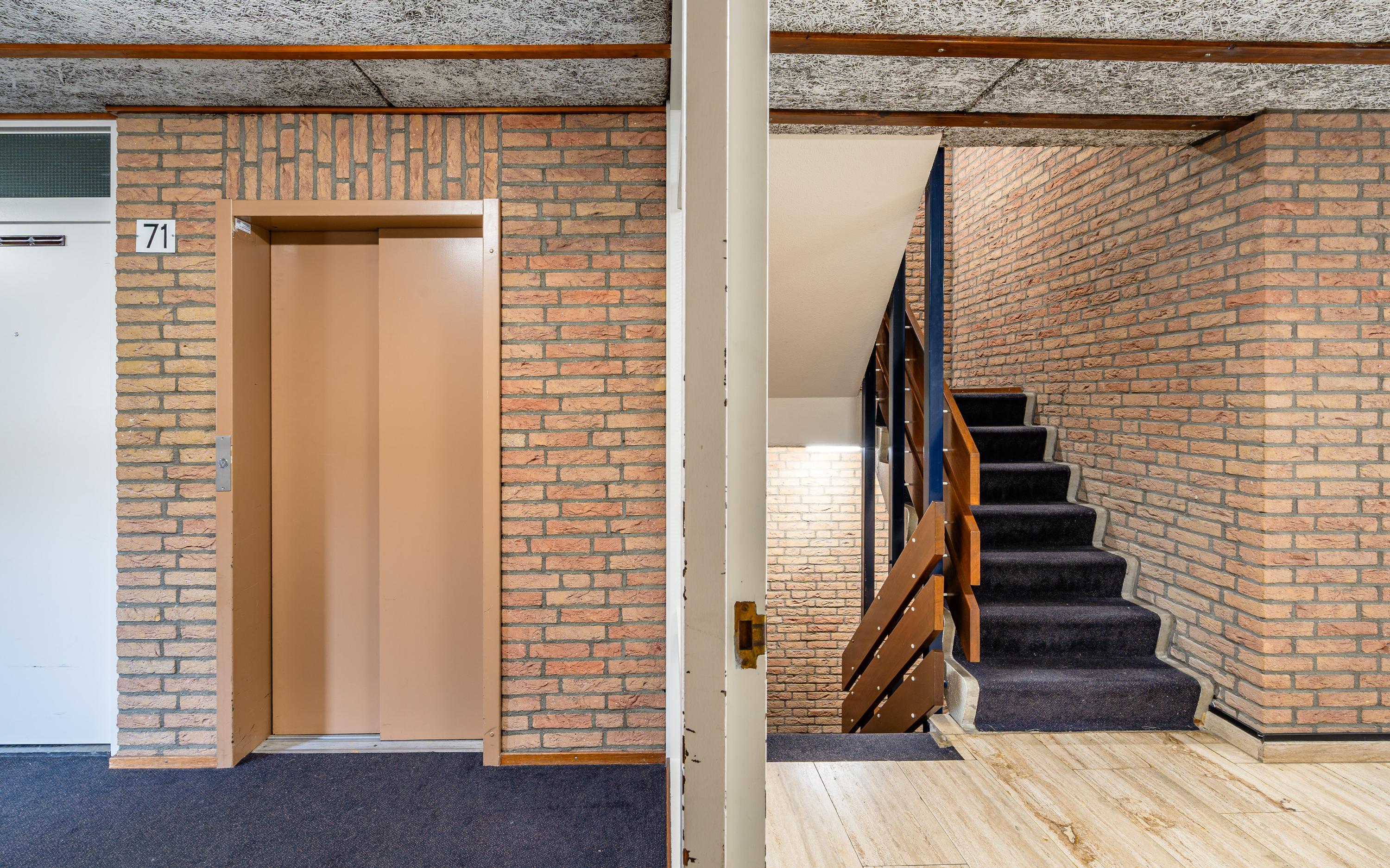 Centrale entree met beltableau met videofooninstallatie en brievenbussen. De hal geeft toegang tot het trappenhuis en de liftinstallatie.
