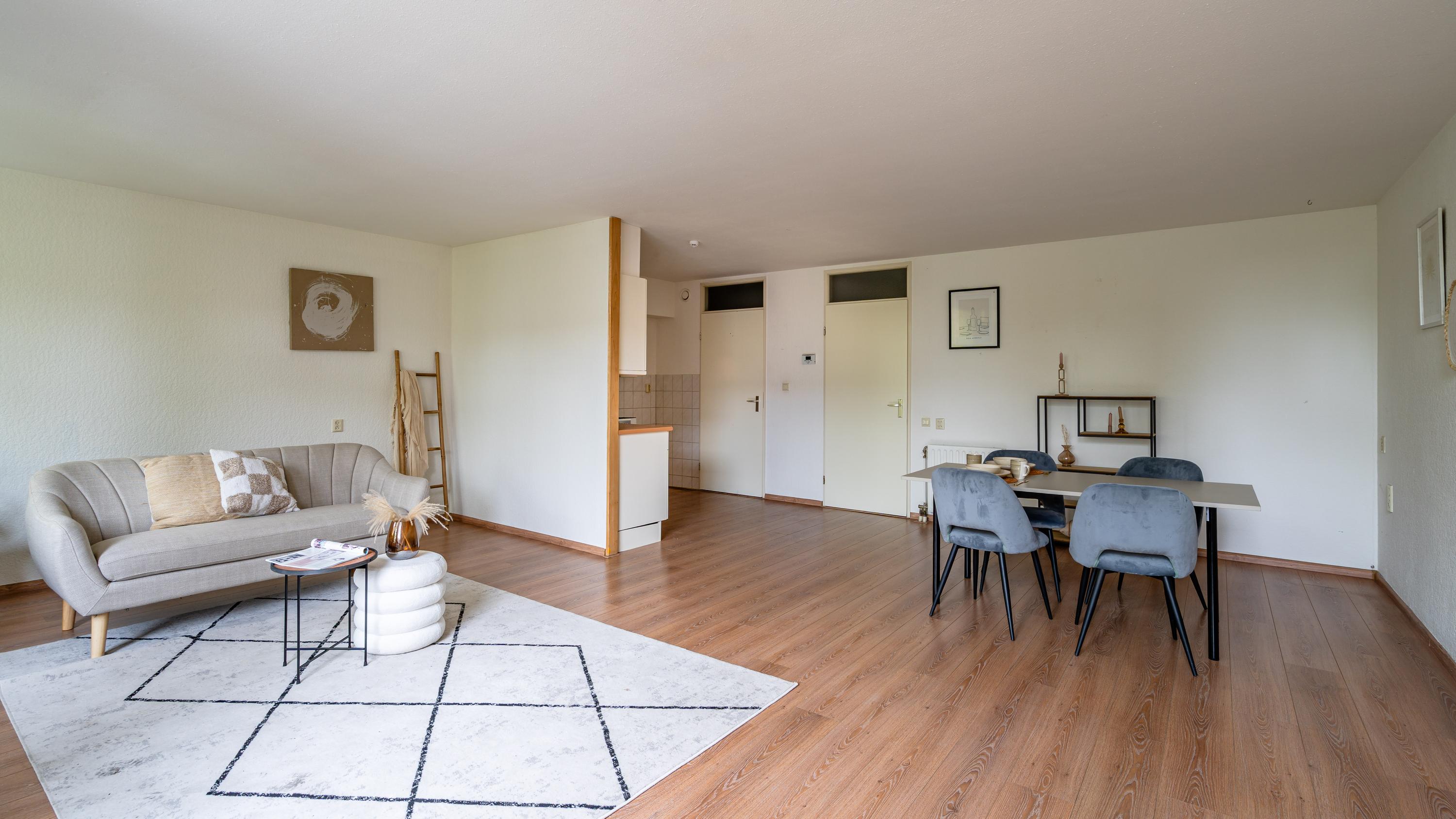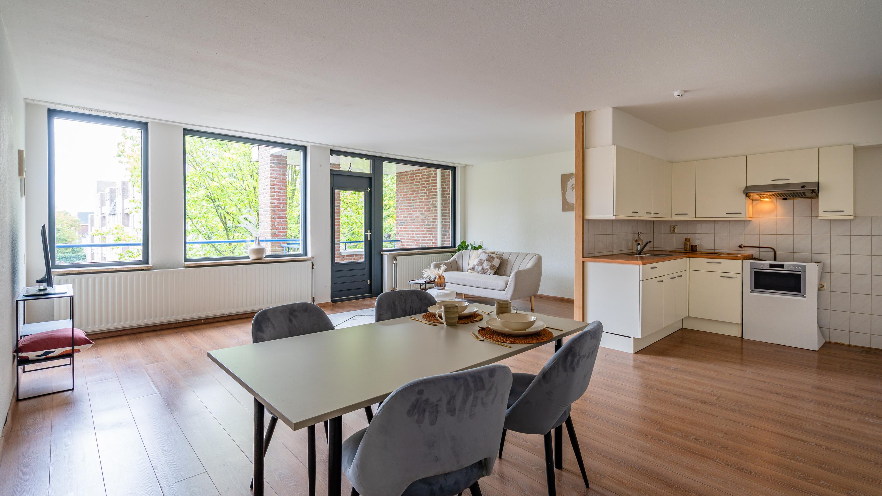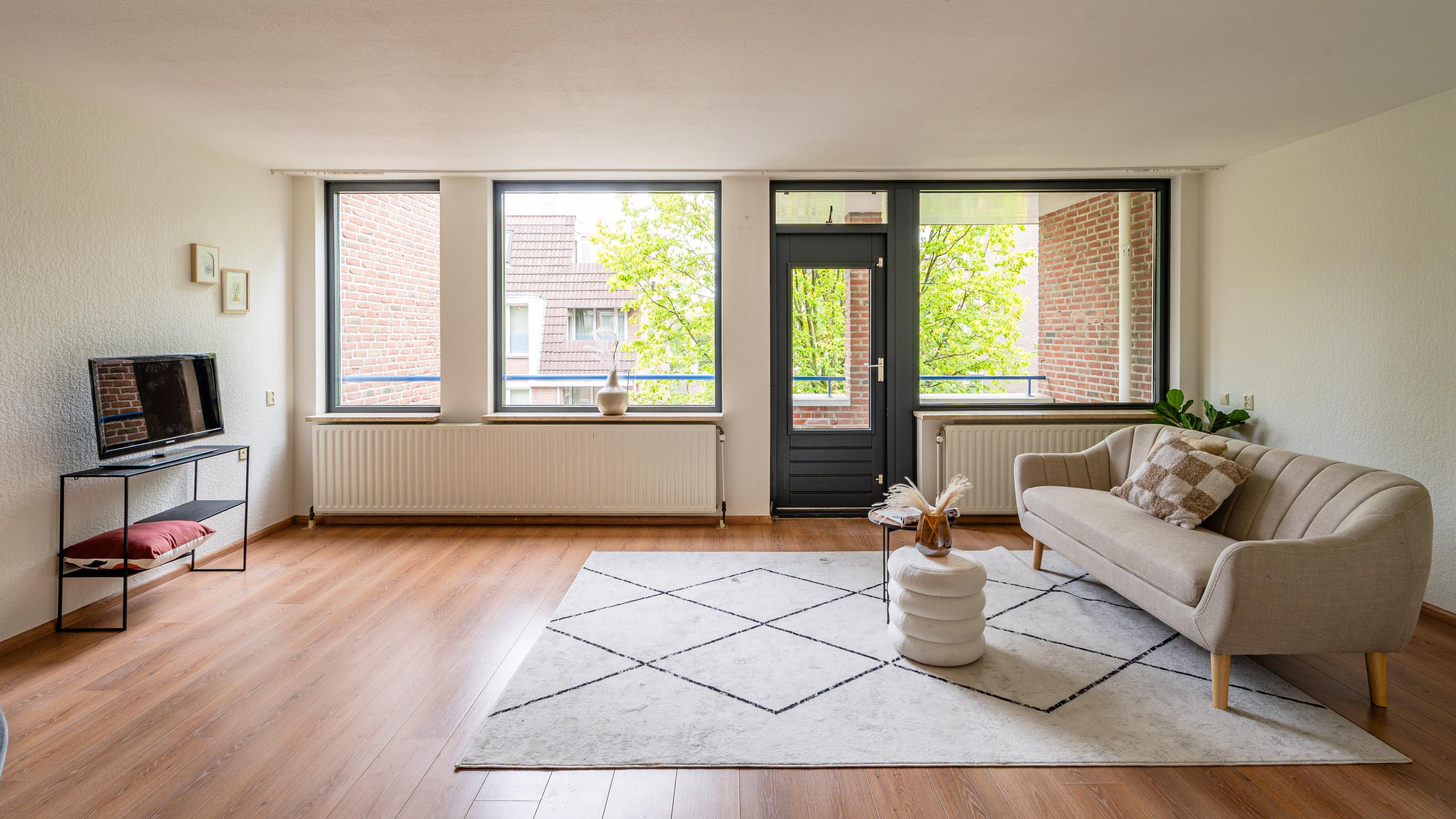 Het appartement is gelegen op de 3e verdieping. Naast de entree is de meterkast gelegen. De entree/hal geeft toegang tot de badkamer, separate toiletruimte, de woonkamer en de slaapkamer. De geheel betegelde badkamer is ingericht met een ligbad, wastafel, witgoedaansluitingen en een raam. De toiletruimte is voorzien van een toilet en fonteintje. De slaapkamer is ca. 16m². De woonkamer krijgt veel natuurlijk lichtinval en heeft toegang tot het aan de voorzijde gelegen balkon. Het balkon is ca. 4,5m². De open keuken is verdekt opgesteld en voorzien van een keukenblok in L-opstelling met een afzuigkap en spoelbak. Via de keuken is er toegang tot de inpandige berging waar de CV-ketel is gepositioneerd.
