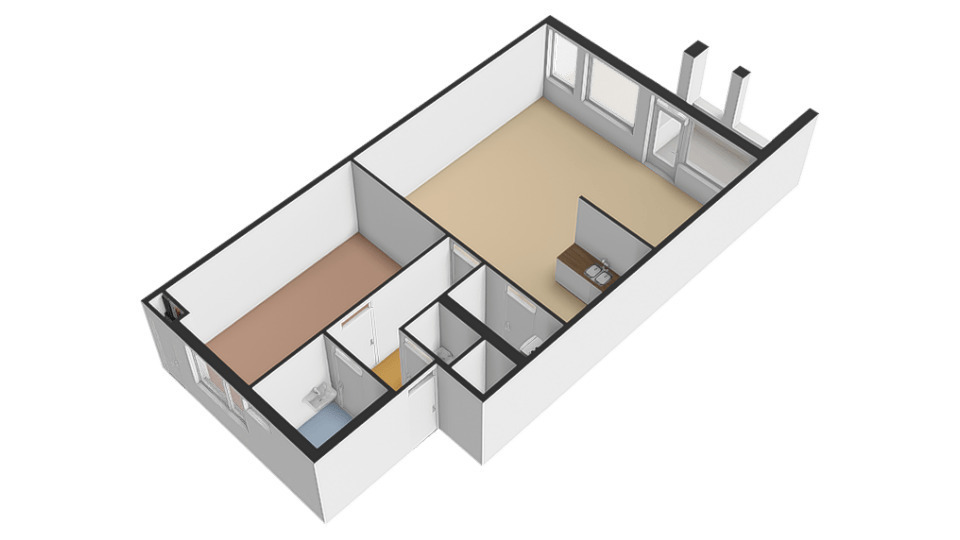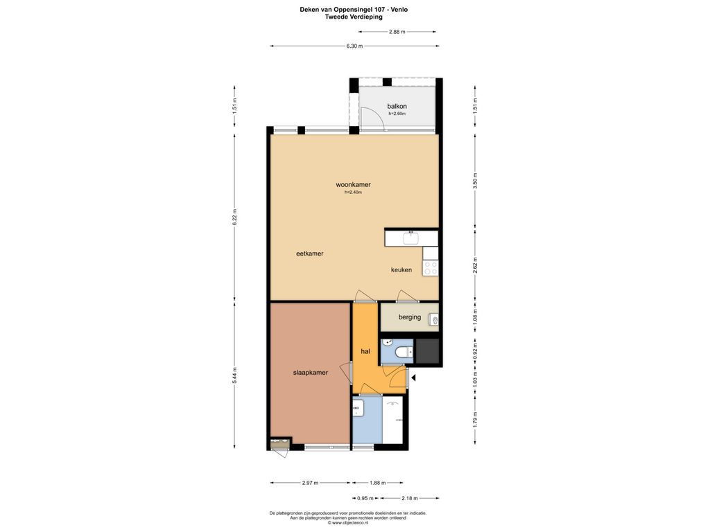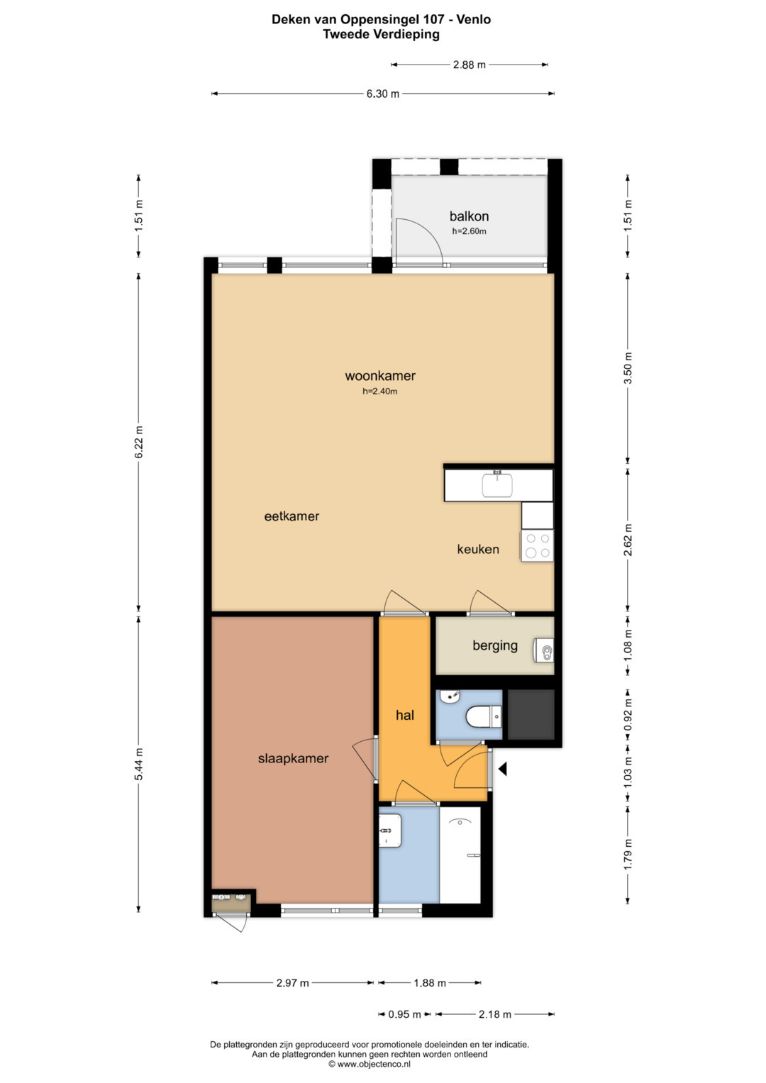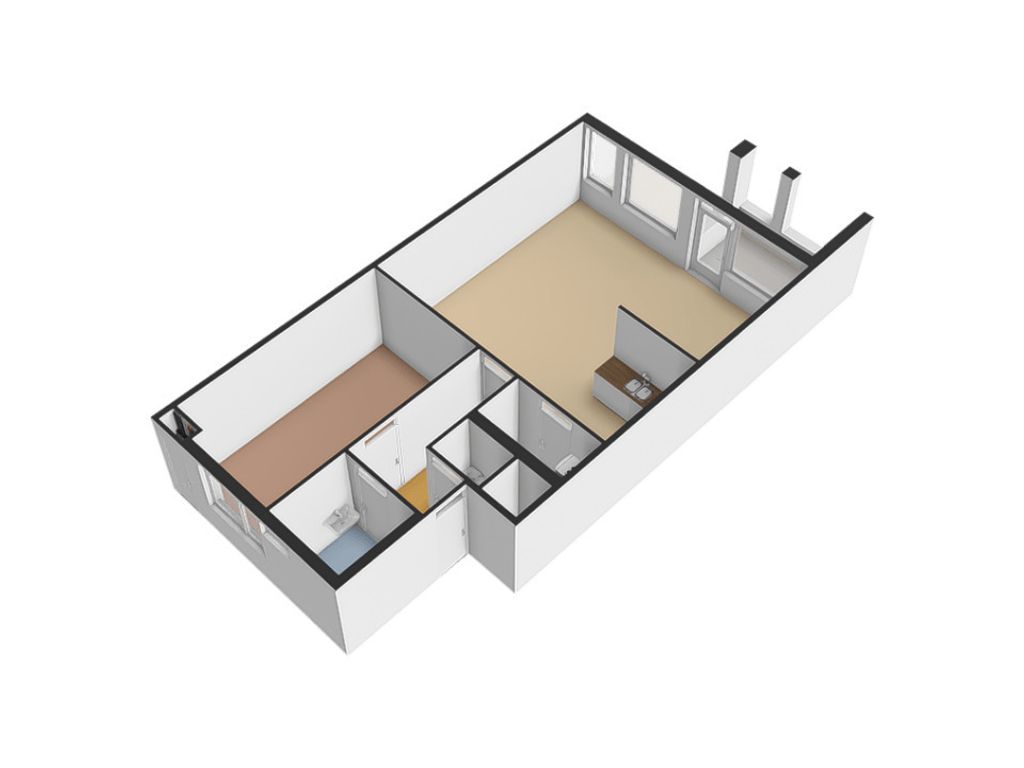 Het appartement is gelegen op de 3e verdieping. Naast de entree is de meterkast gelegen. De entree/hal geeft toegang tot de badkamer, separate toiletruimte, de woonkamer en de slaapkamer. De geheel betegelde badkamer is ingericht met een ligbad, wastafel, witgoedaansluitingen en een raam. De toiletruimte is voorzien van een toilet en fonteintje. De slaapkamer is ca. 16m². De woonkamer krijgt veel natuurlijk lichtinval en heeft toegang tot het aan de voorzijde gelegen balkon. Het balkon is ca. 4,5m². De open keuken is verdekt opgesteld en voorzien van een keukenblok in L-opstelling met een afzuigkap en spoelbak. Via de keuken is er toegang tot de inpandige berging waar de CV-ketel is gepositioneerd.
