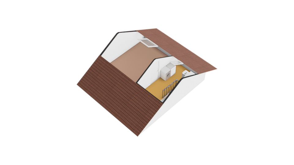 De overloop geeft toegang tot de inpandige berging en 4e slaapkamer. Op de overloop is de CV-ketel (Remeha 2022 eigendom) gepositioneerd en zijn de witgoedaansluitingen voor wasmachine en droger te vinden. De 4e slaapkamer is zeer ruime van opzet en beschikt over opbergruimte en een Velux dakraam.