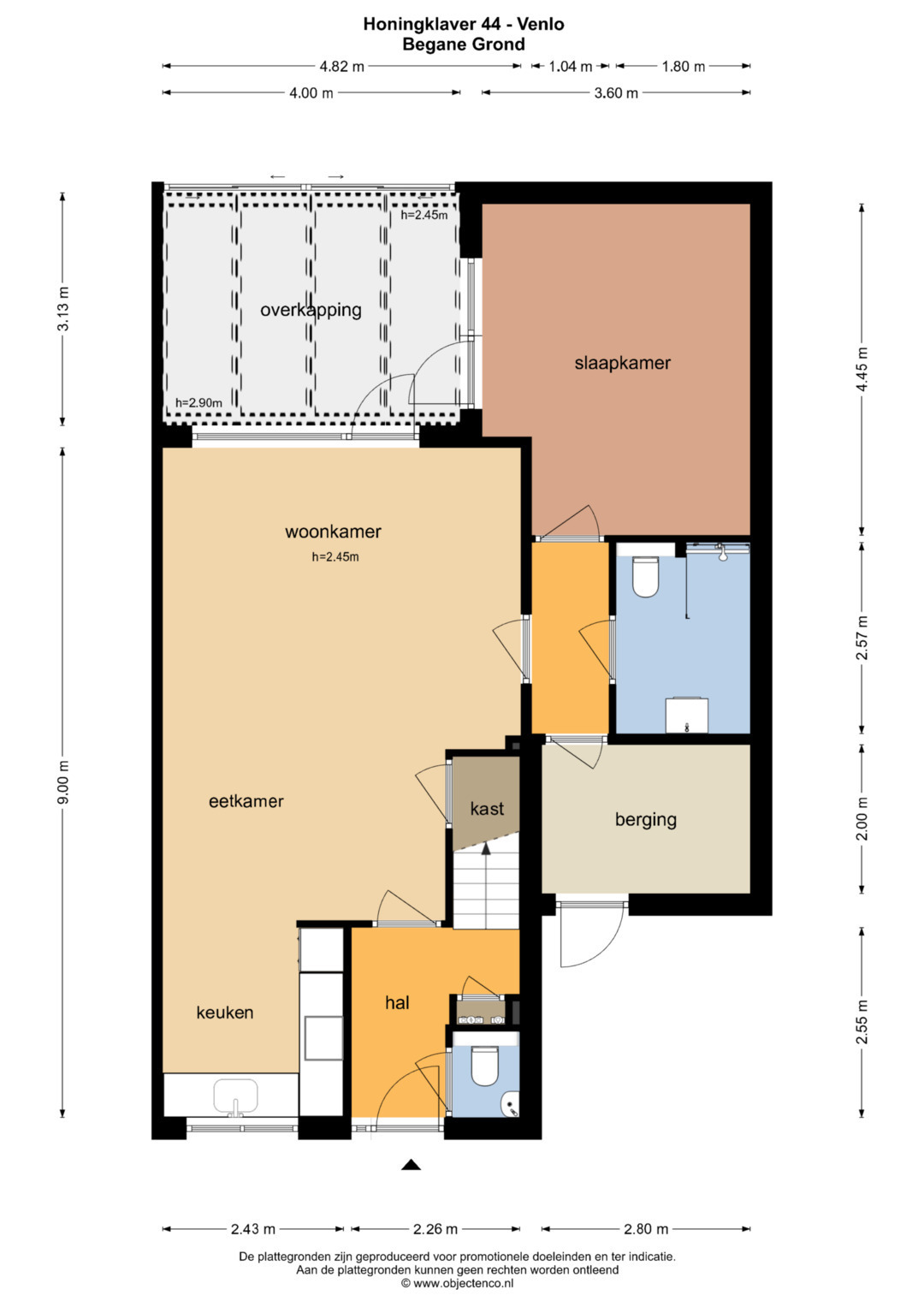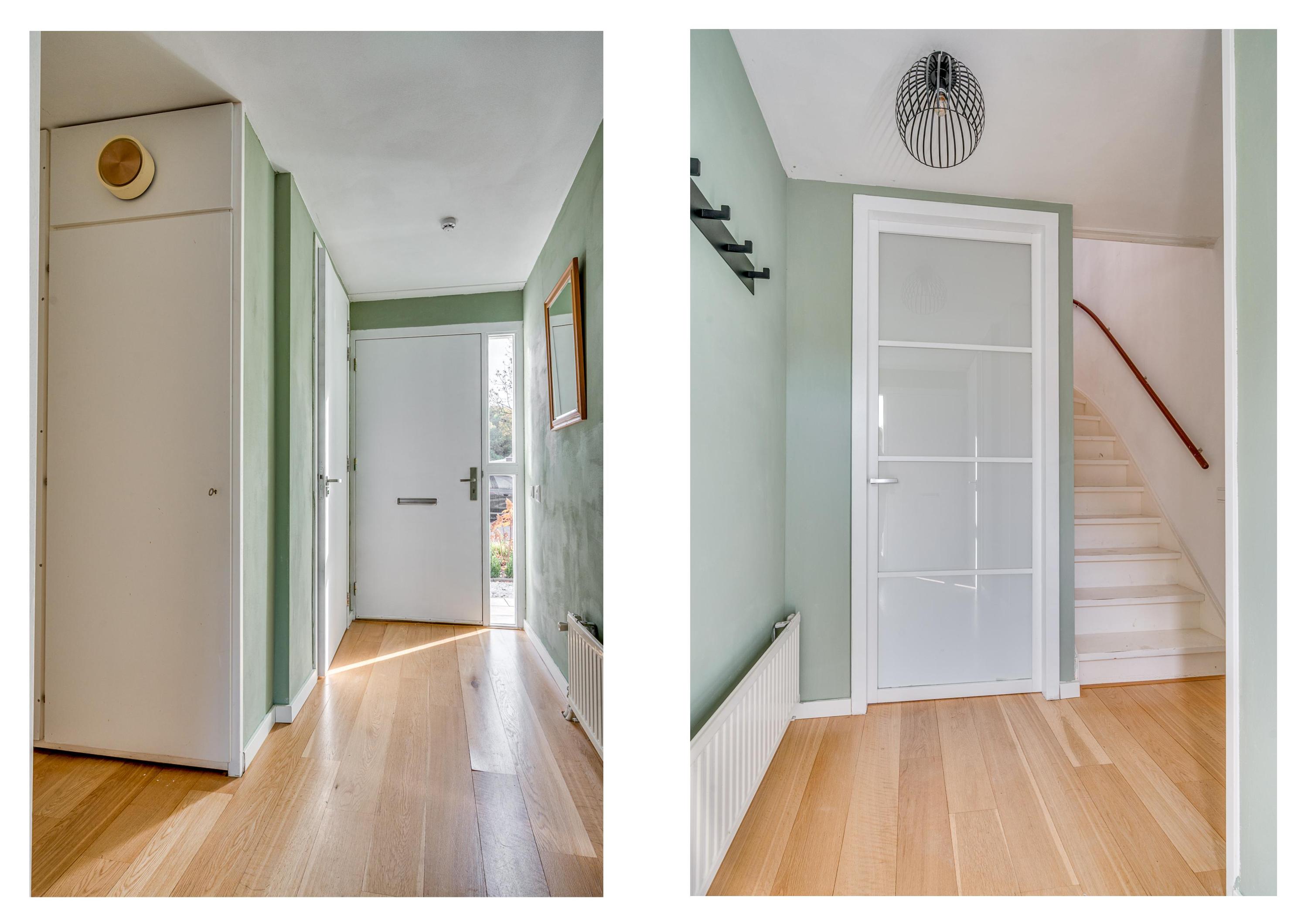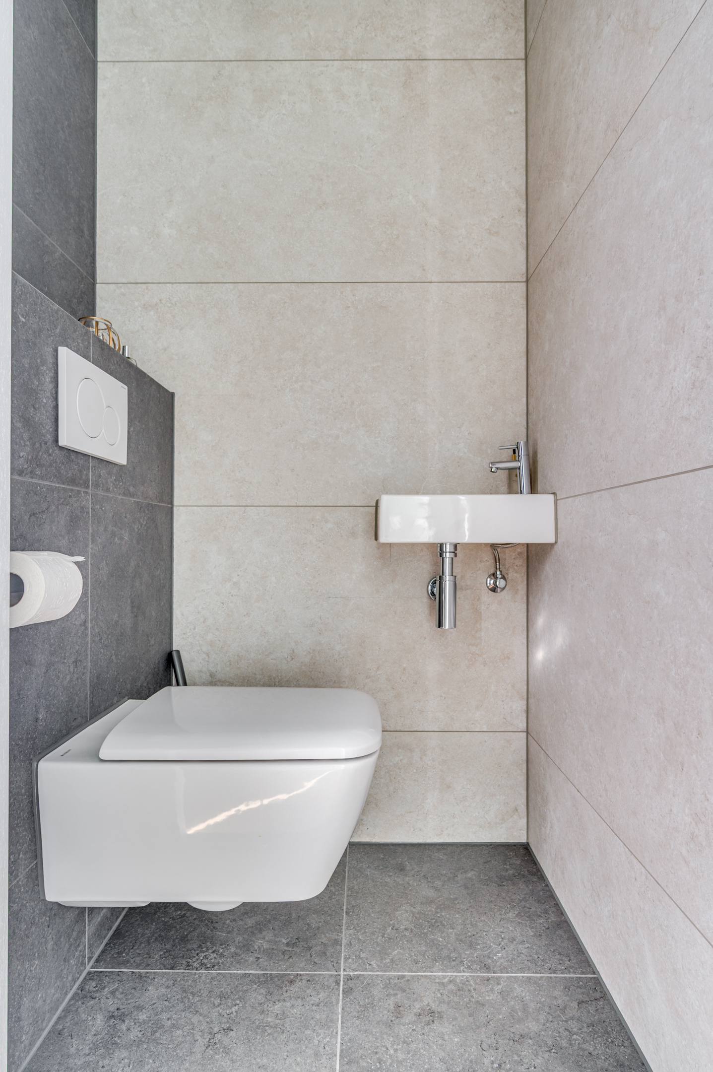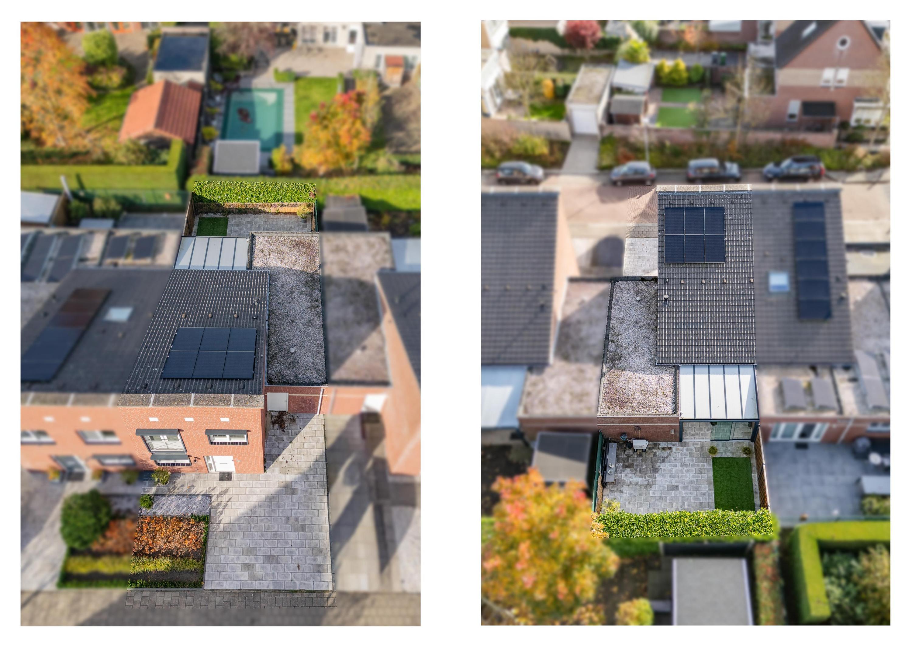 Vanuit de eigen oprit is de entree van de woning en de berging te bereiken. De entree/hal geeft toegang tot de trapopgang naar de 1e verdieping, meterkast, separate toiletruimte en de woonkamer. De geheel betegelde toiletruimte is voorzien van een zwevend toilet, fonteintje en mechanische ventilatie. Middels een loopdeur is er toegang tot de woonkamer met open keuken. De woonkamer is aan de achterzijde ingericht met de zithoek en loopdeur naar de overkapping. De keuken met eethoek is aan de voorzijde gelegen. De keuken is voorzien van een inductiekookplaat met interne afzuiging, vaatwasmachine, koelkast, combioven/ magnetron en spoelbak. De woonkamer beschikt verder over veel lichtinval en een airco. Verder is er een trapkast aanwezig en is er middels een loopdeur toegang tot de hal. De hal geeft de mogelijkheid om de riante slaapkamer, badkamer en inpandige berging te betreden. De slaapkamer is ca. 16m² groot en geeft middels een loopdeur wederom toegang tot de tuin met overkapping welke middels glazen schuifwanden afsluitbaar is. De mooie riante badkamer is modern, volledig betegeld en voorzien van een inloopdouche, wastafel met meubel, zwevend toilet, mechanische ventilatie en een designradiator. De inpandige berging geeft de mogelijkheid om de fietsen etc. in te plaatsen.