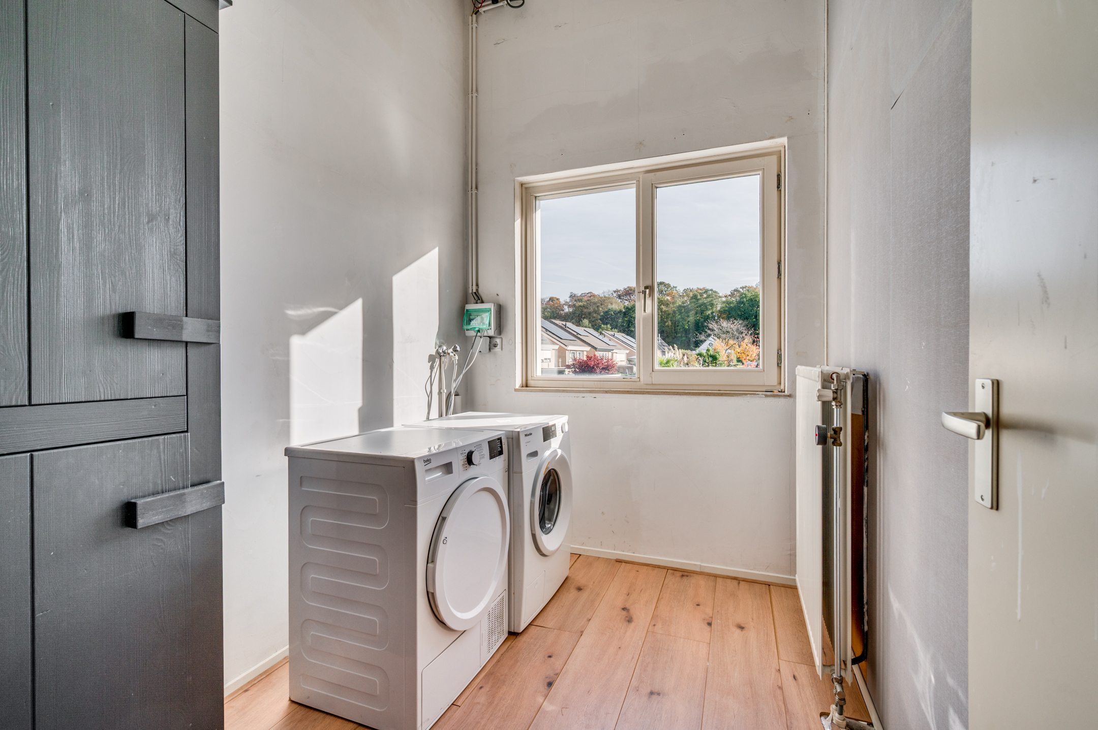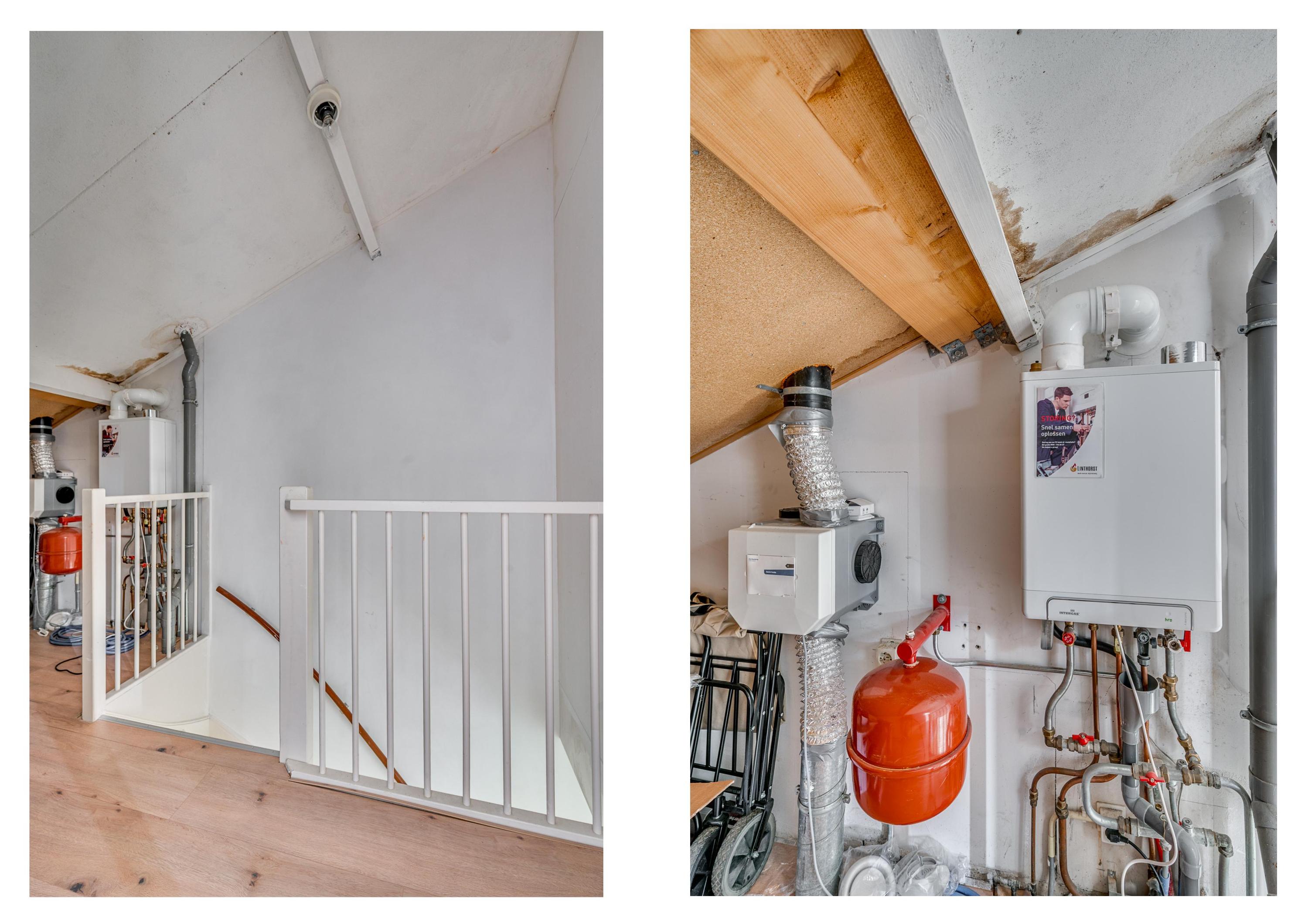 De riante overloop welke voorzien is van de CV-ketel en de mechanische ventilatie geeft toegang tot de 2e slaapkamer en wasruimte. De ruime slaapkamer is ca. 15m² groot en heeft de beschikking over een berging. Op de kleine kamer zijn de witgoedaansluitingen te vinden. Dit maakt het geschikt om als wasruimte te gebruiken.