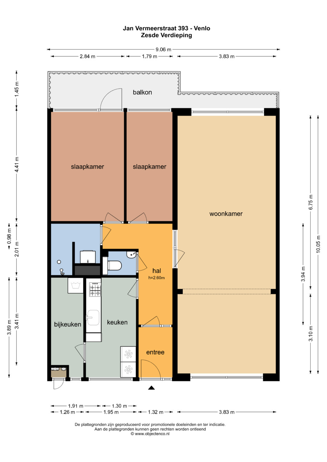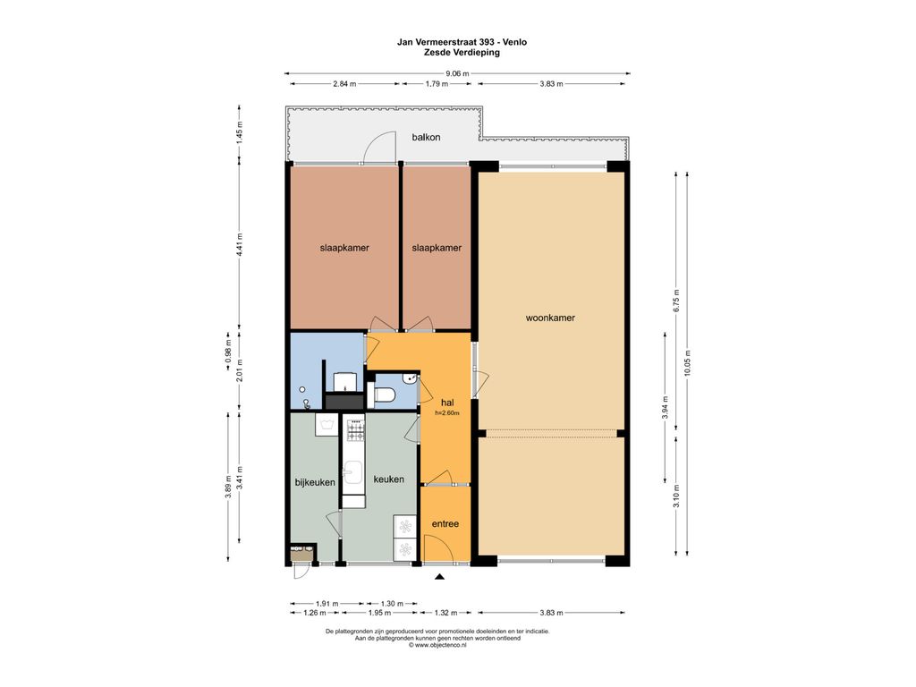 Via de entree komt u in het voorportaal welke toegang geeft tot de hal. De hal geeft toegang tot de keuken, separate toiletruimte, woonkamer, 2 slaapkamers en de badkamer.