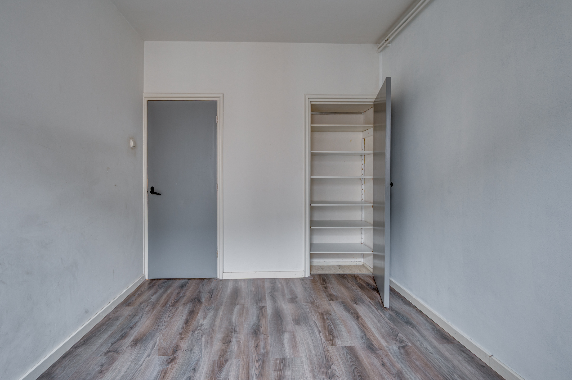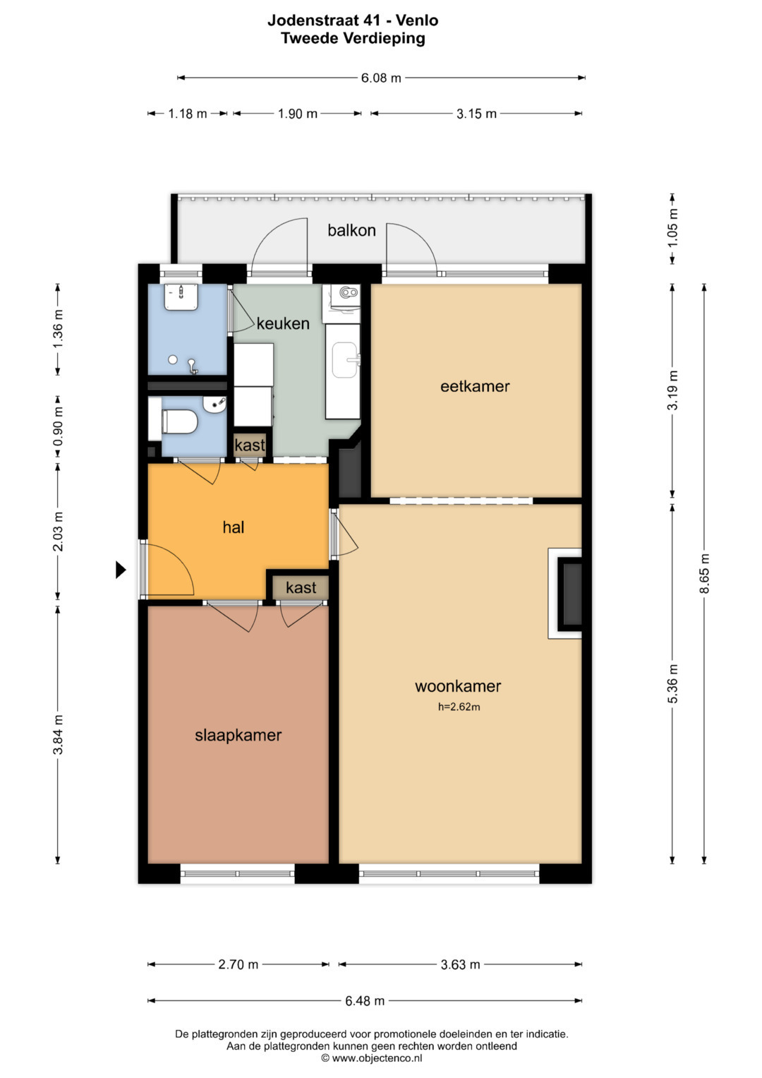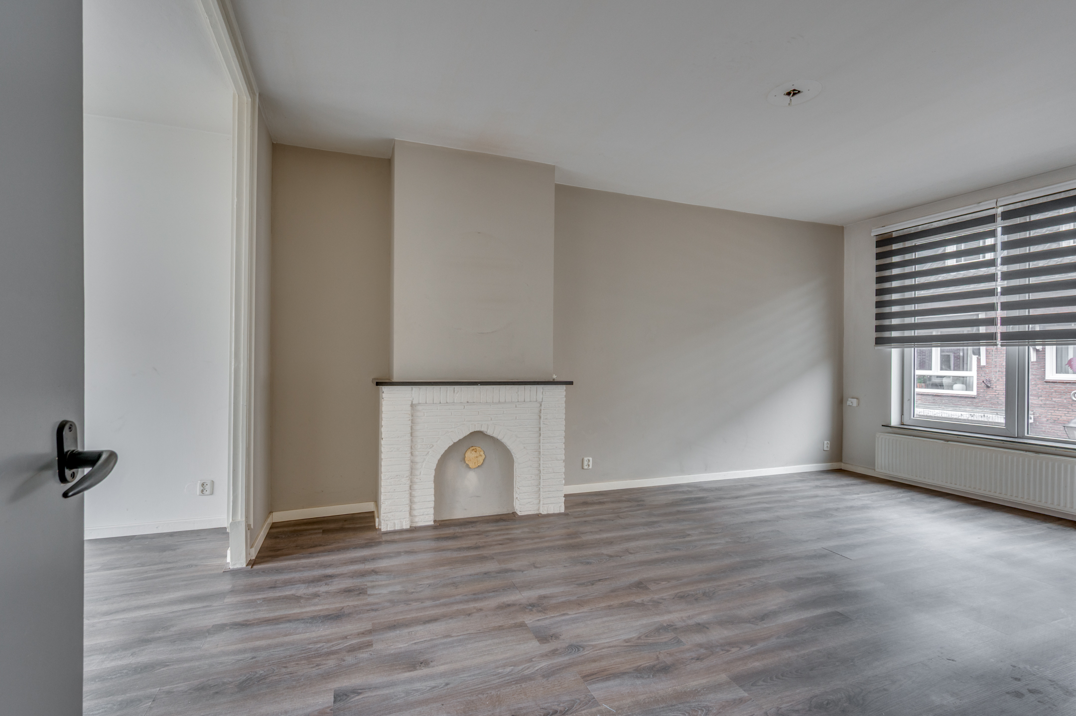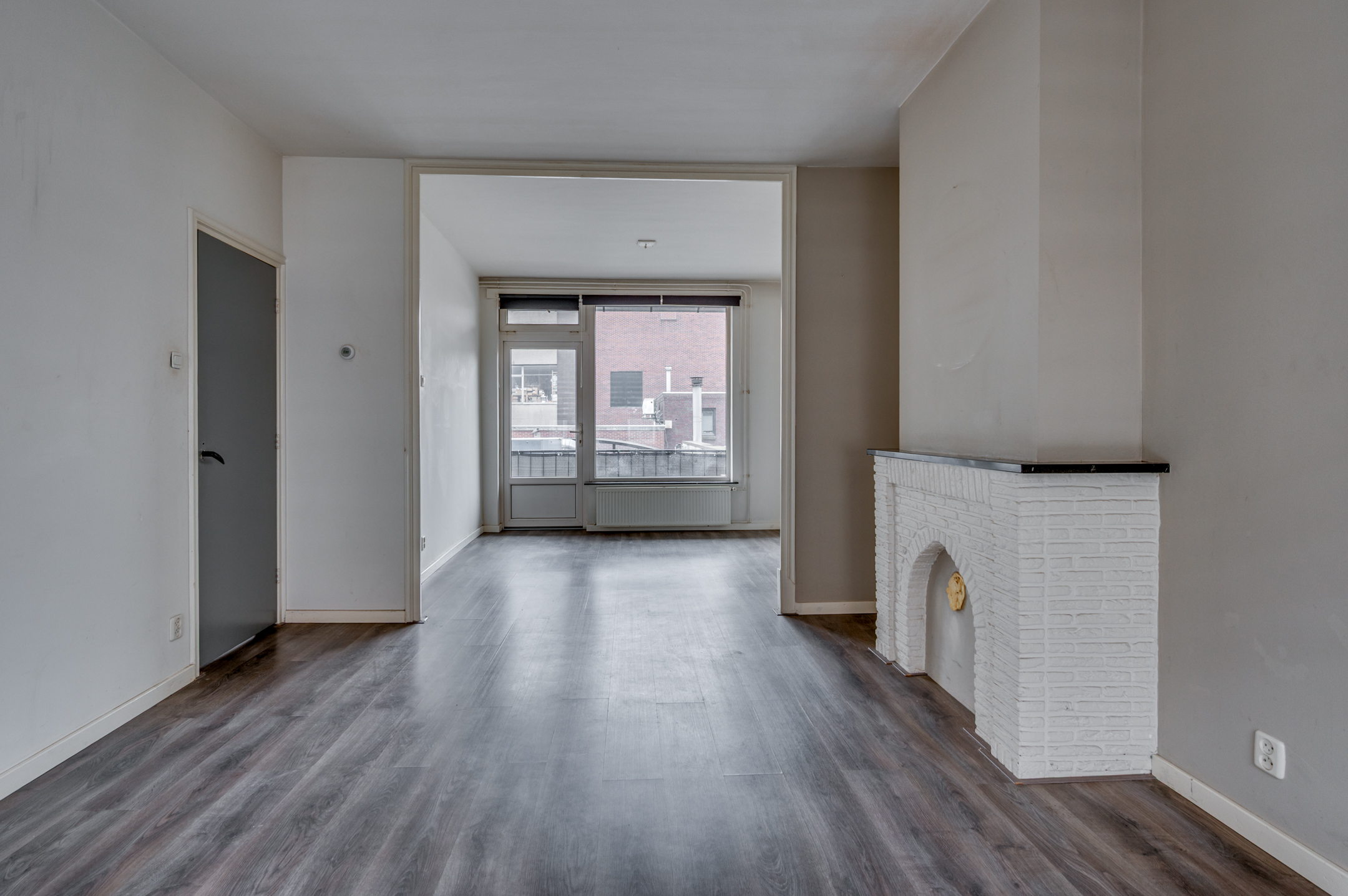 De ruime hal geeft toegang tot de slaapkamer, separate toiletruimte, keuken en de woonkamer. De slaapkamer welke aan de voorzijde is gelegen is ca. 10,5m² groot en voorzien van een muurkast. De separate toiletruimte is deels betegeld en voorzien van een toilet met fonteintje. De keuken is ruim van opzet en beschikt over een loopdeur naar het balkon, loopdeur naar de badkamer en verder is hier de CV-ketel (Nefit 2025 eigendom) gepositioneerd. De badkamer beschikt over een inloopdouche, wastafel, verwarming en buitenraam. De eigenaar heeft het plafond in de badkamer en de keuken afgestoken zoals op de foto's is te zien. De ruime doorzonwoonkamer geniet veel lichtinval door de grote raampartijen. Aan de achterzijde is het mogelijk het balkon te betreden. Het gehele appartement is voorzien van kunststof kozijnen en een laminaatvloer.