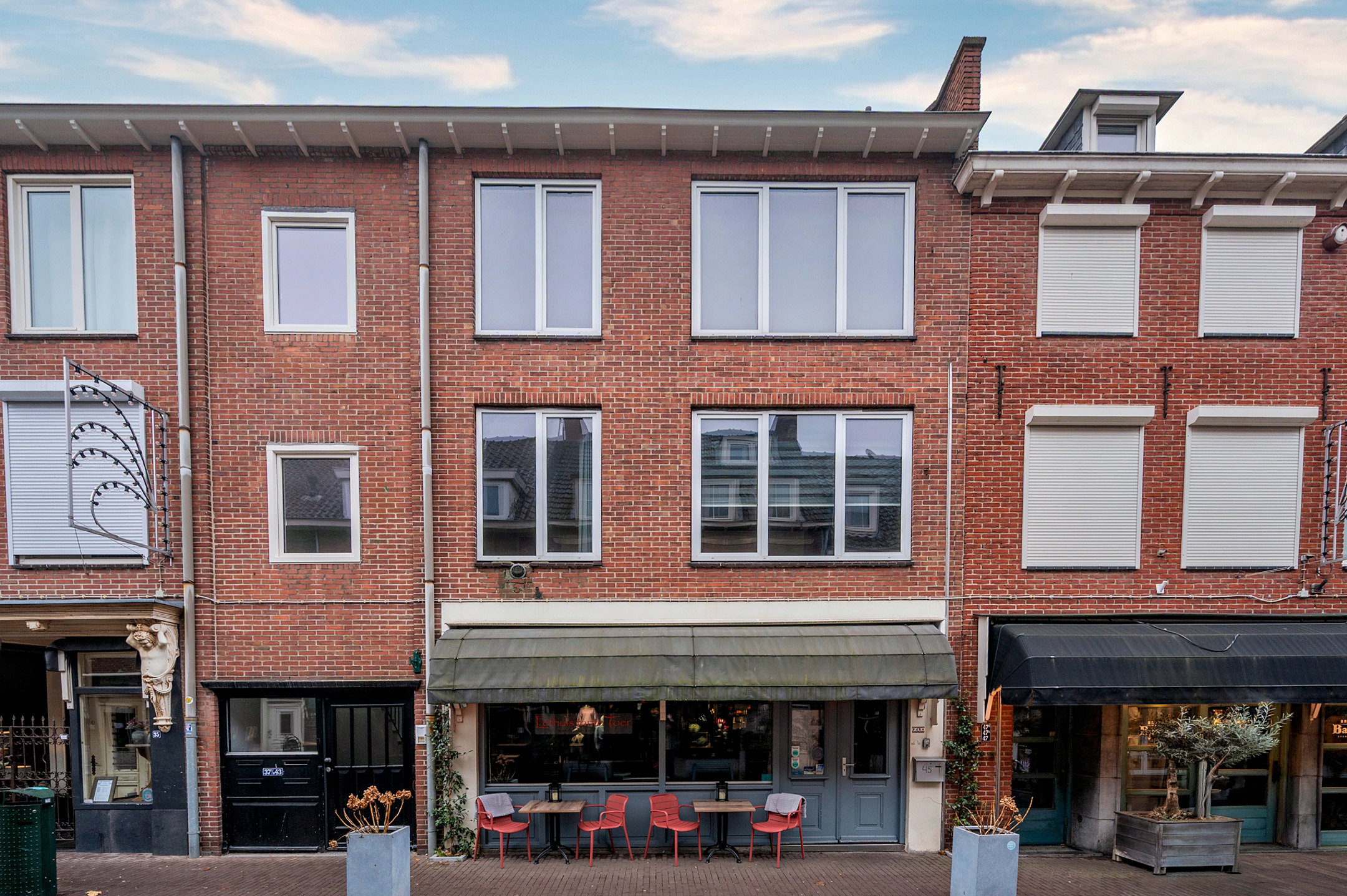 Vanuit de Jodenstraat is de centrale entree met brievenbussen te bereiken. De hal geeft toegang tot het trappenhuis. Het is mogelijk om met de fiets naar de kelder te gaan.