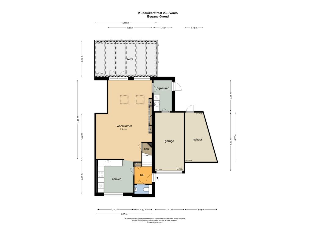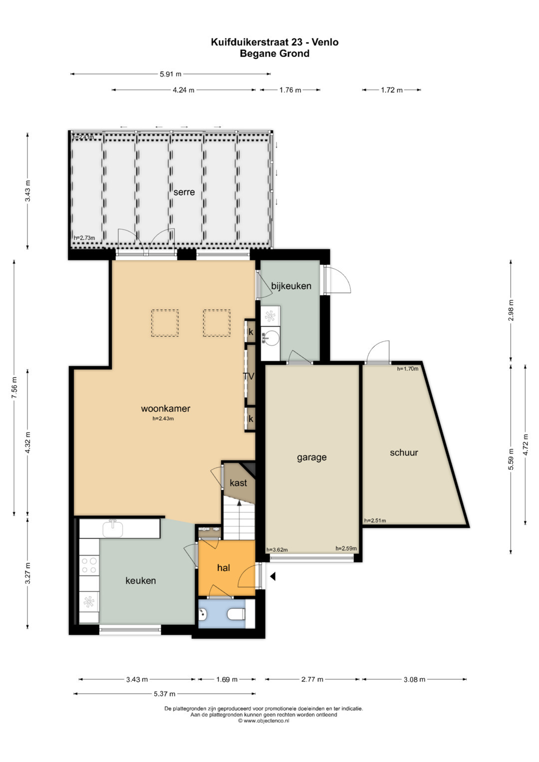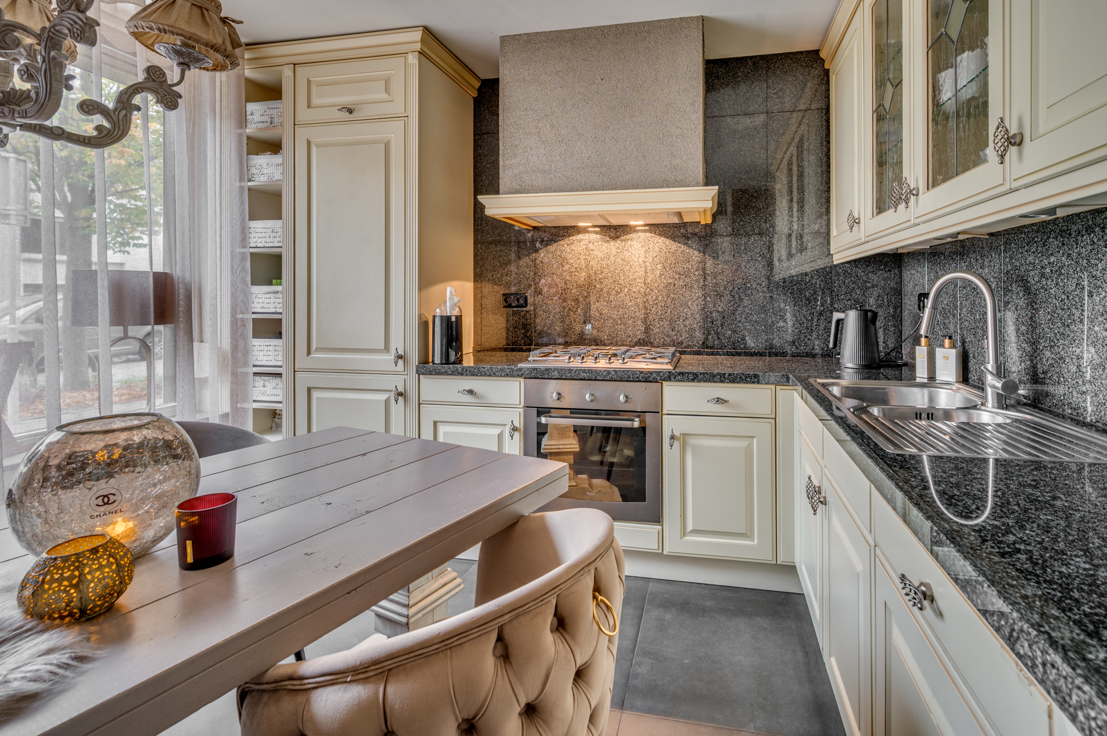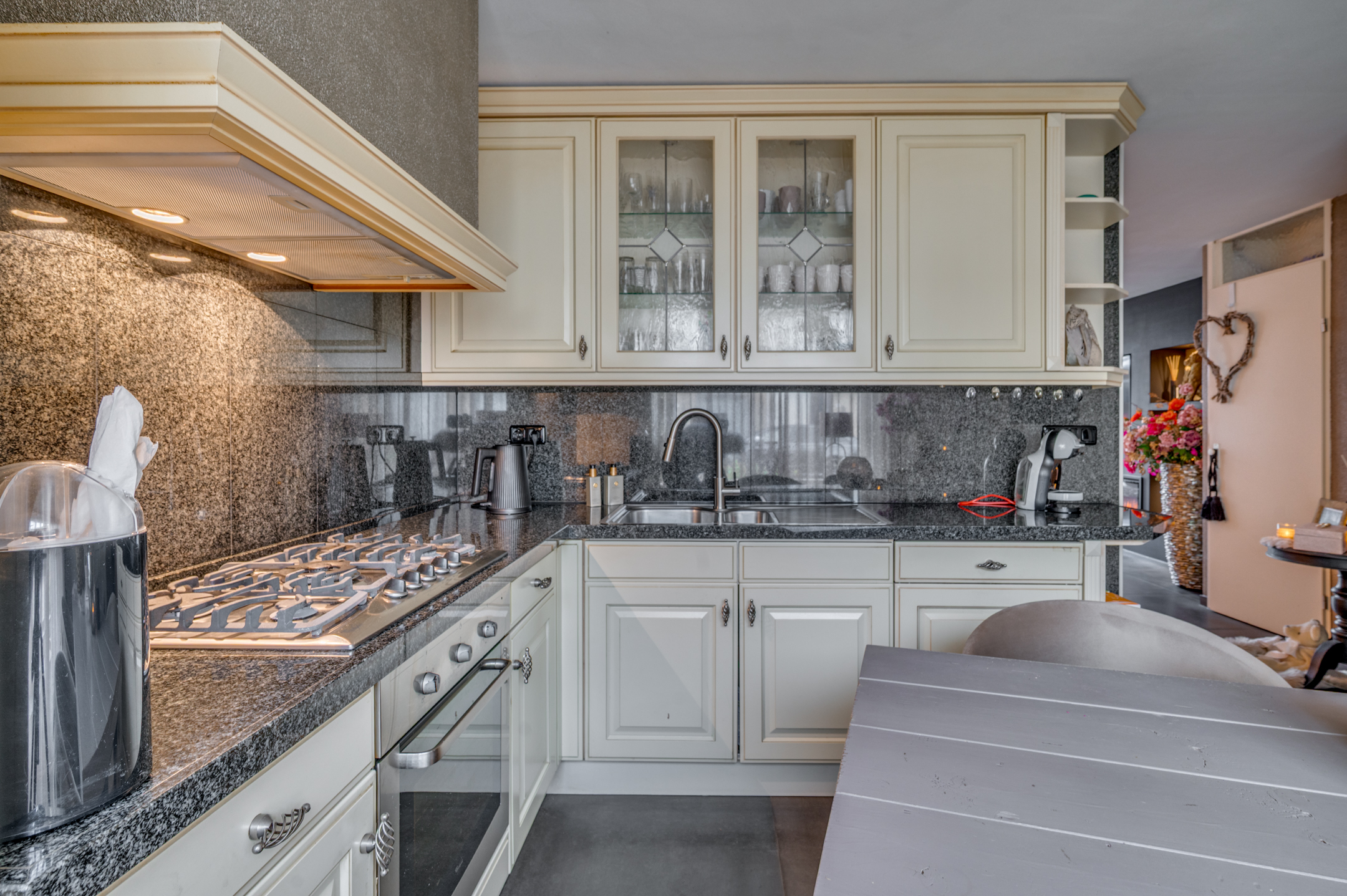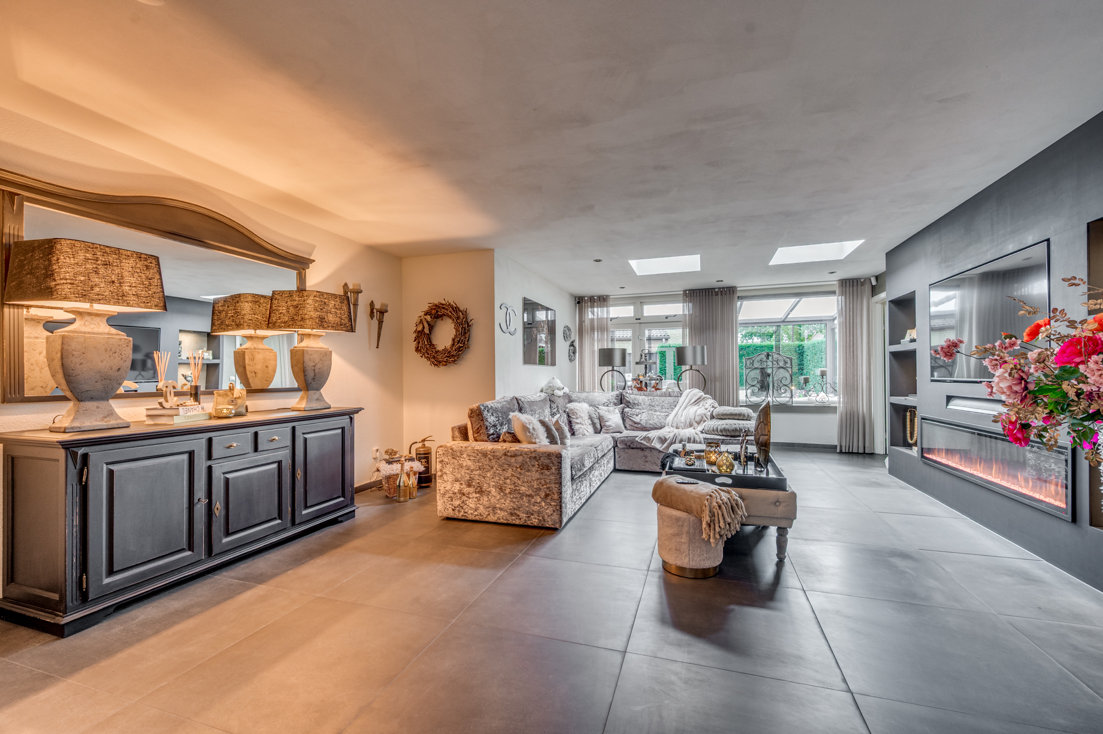 Vanuit de beklinkerde oprit is de entree van de woning te bereiken. De hal geeft toegang tot de meterkast, separate toiletruimte, trapopgang naar de 1e verdieping en de keuken. De toiletruimte is voorzien van een zwevend toilet, fonteintje, mechanische ventilatie en verwarming. De ruime keuken is aan de voorzijde van de woning gelegen en voorzien van een gasfornuis, afzuigkap, oven, koelkast, diepvries, dubbele spoelbal, vaatwasmachine en veel opbergruimte. Via de keuken is de zeer ruime woonkamer gelegen. Hier zijn 2 lichtkoepels geplaats wat voor extra natuurlijk lichtinval zorgt. Middels 2 openslaande tuindeuren is de serre te bereiken en middels een loopdeur de bijkeuken. Hier is een extra klein keukenblok geplaatst en is er toegang tot de inpandige garage waar ruimte is om een auto in te plaatsen en is er een loopdeur naar de tuin. De begane grond is voorzien van vloerverwarming met uitzondering van de hal.