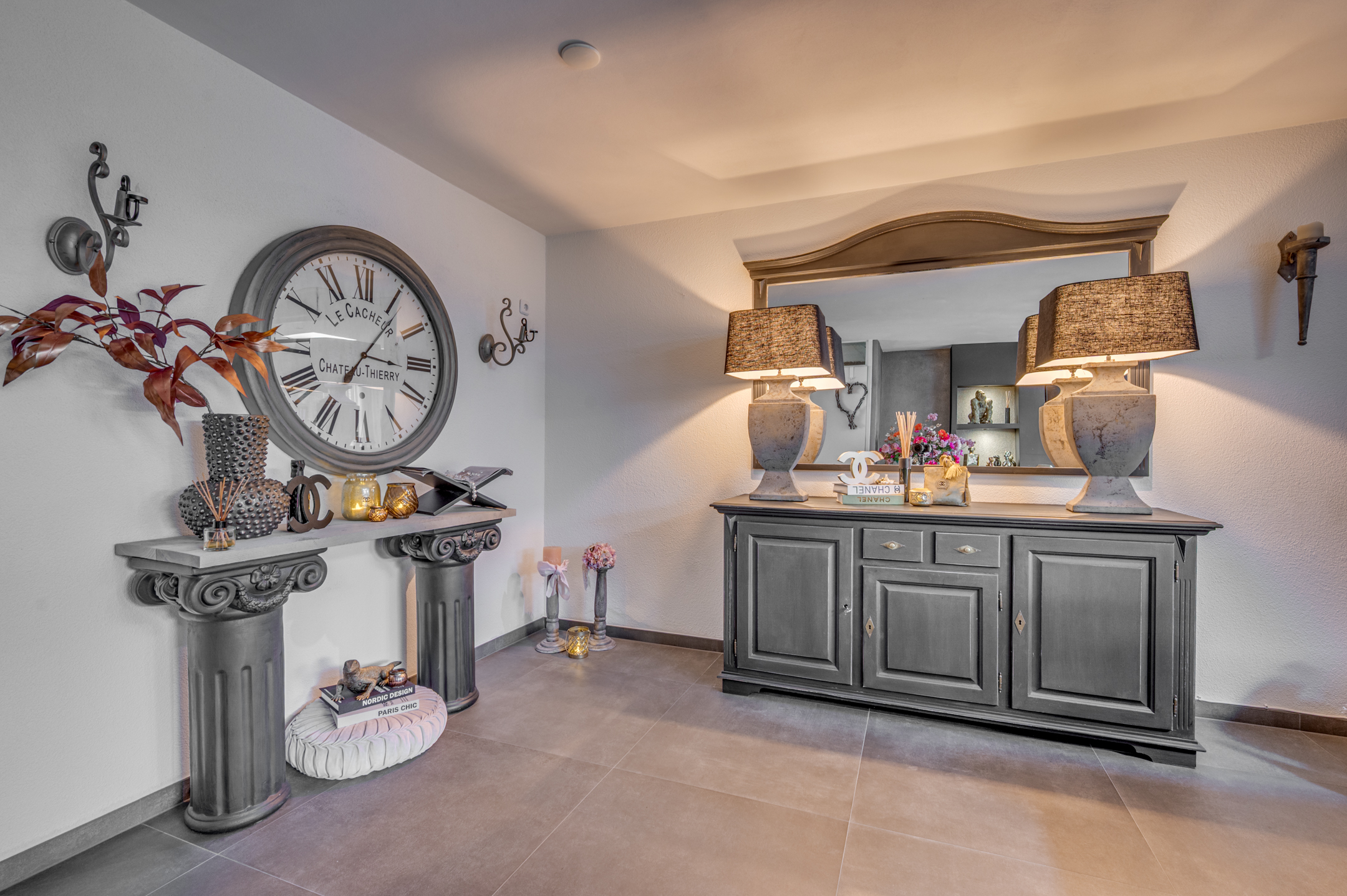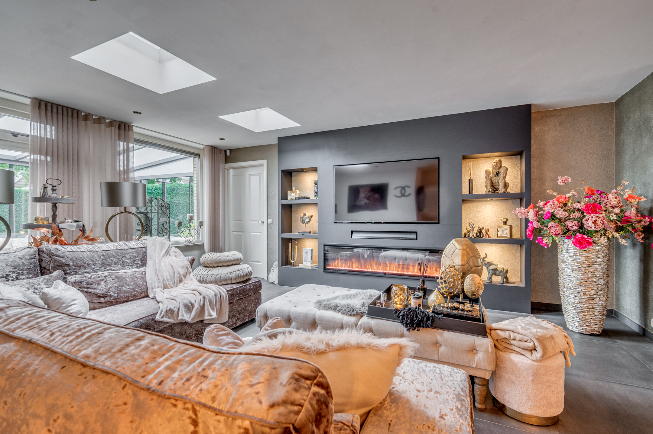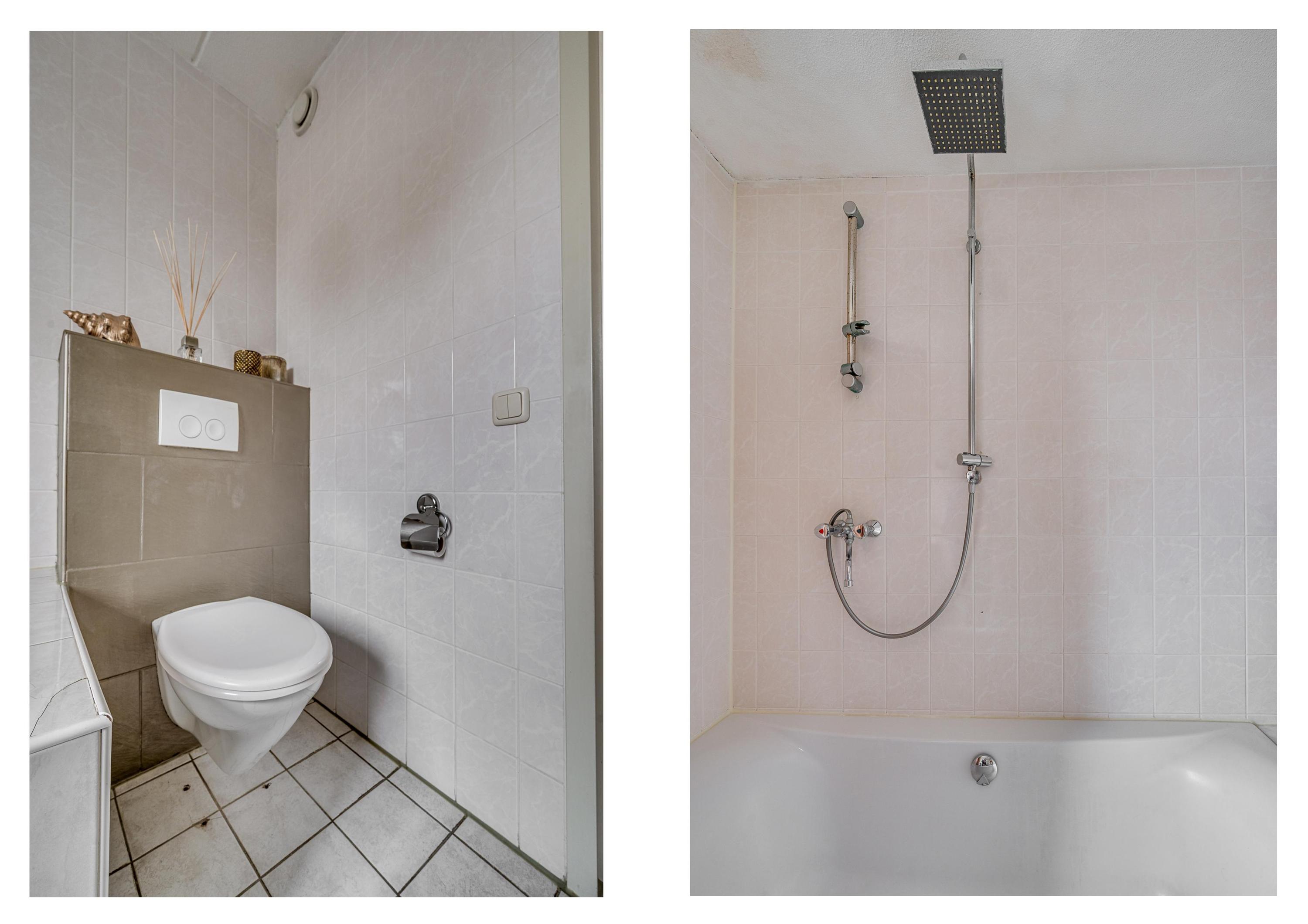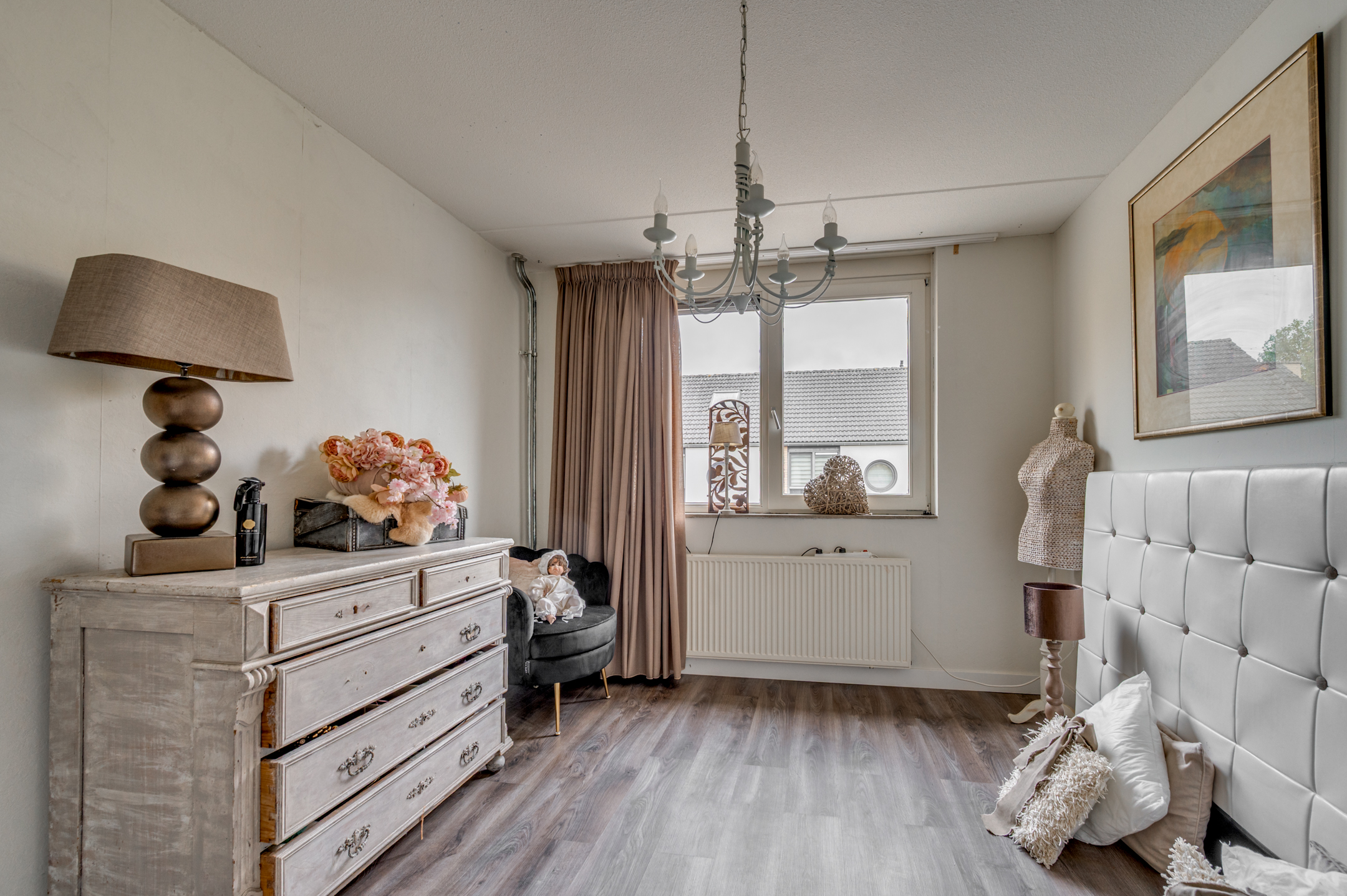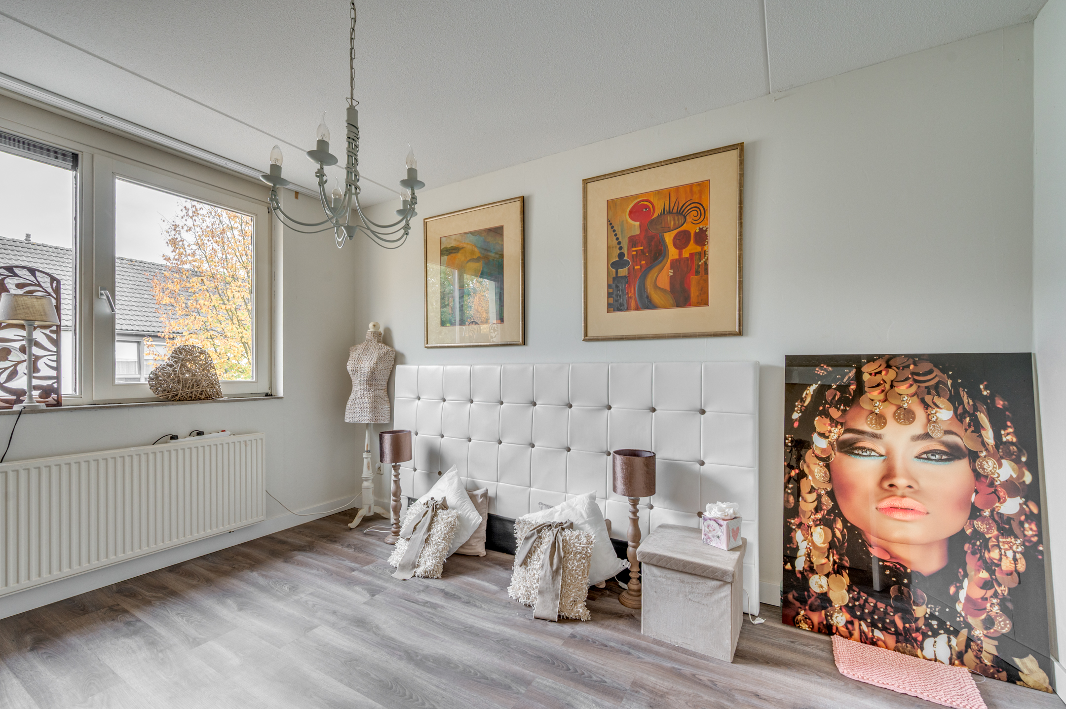 De overloop geeft toegang tot de 3 slaapkamers en badkamer. De slaapkamers zijn ca. 6,5m², 11,5m² en 12,5m² groot en allen voorzien van eenzelfde laminaatlover en rolluiken. De masterbedroom heeft verder de beschikking over een airco. De badkamer is volledig betegeld en voorzien van een ligbad met douchefaciliteit, wastafel met meubel, zwevend toilet, verwarming, mechanische ventilatie, buitenraam en een rolluik.