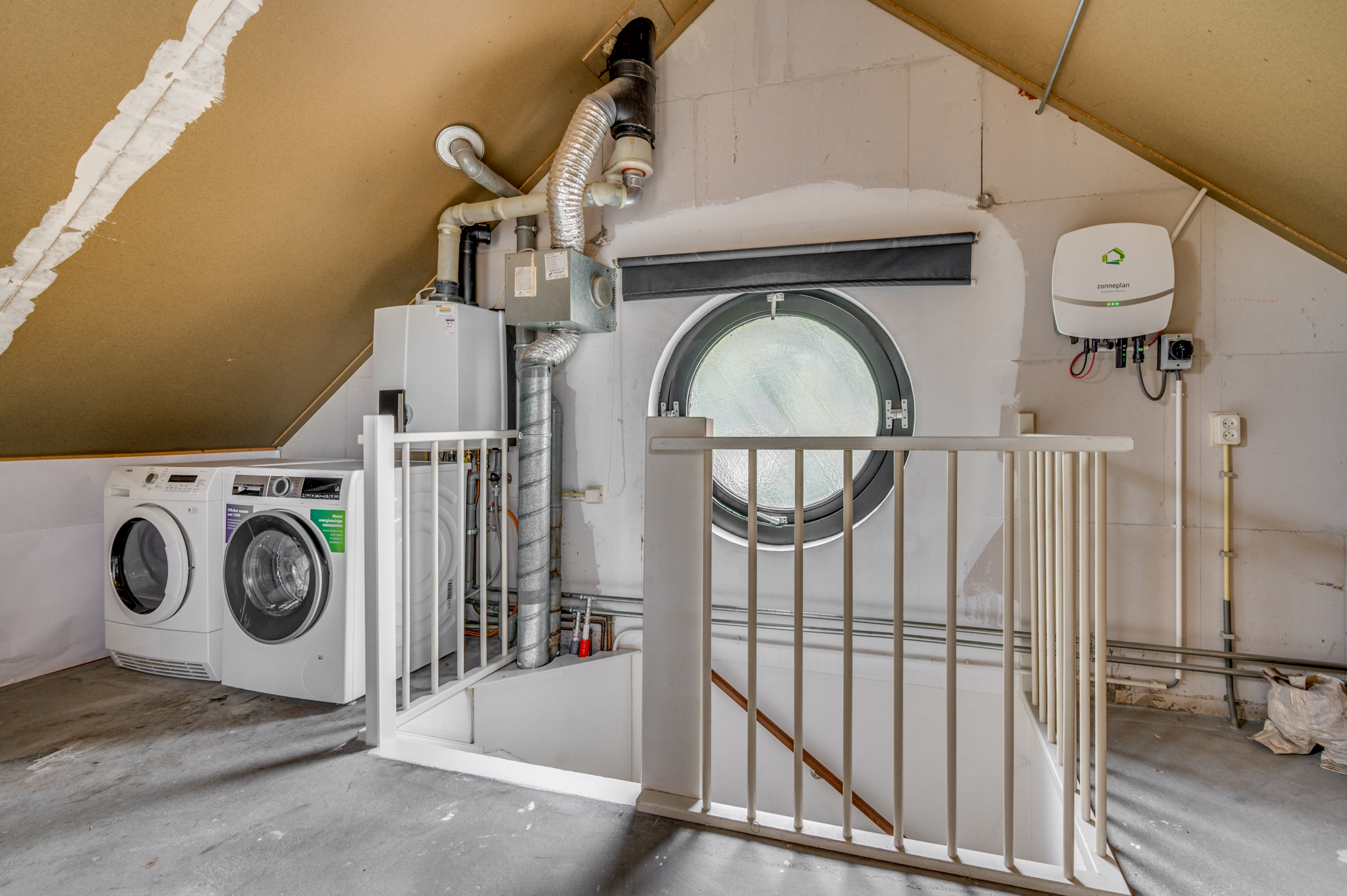 Middels een vaste trap is de zeer ruime overloop te bereiken. De overloop geeft toegang tot 2 slaapkamers. Op de overloop zijn de witgoedaansluitingen, CV-ketel, mechanische ventilatie en omvormer van de zonnepanelen. De slaapkamers zijn beide voorzien van een dakraam.