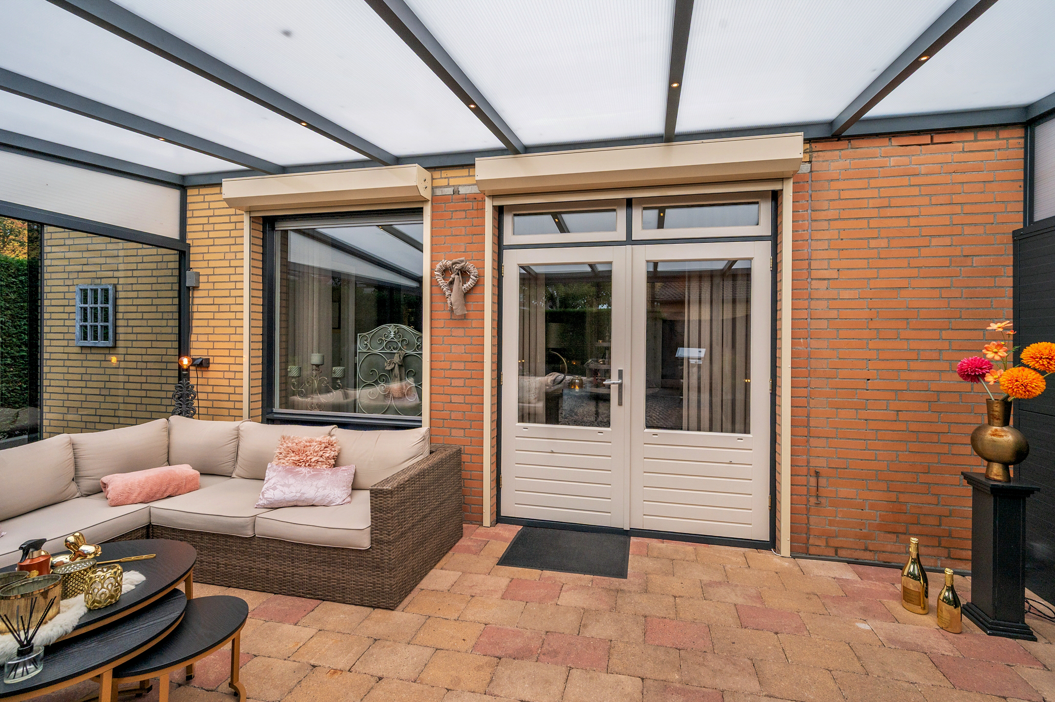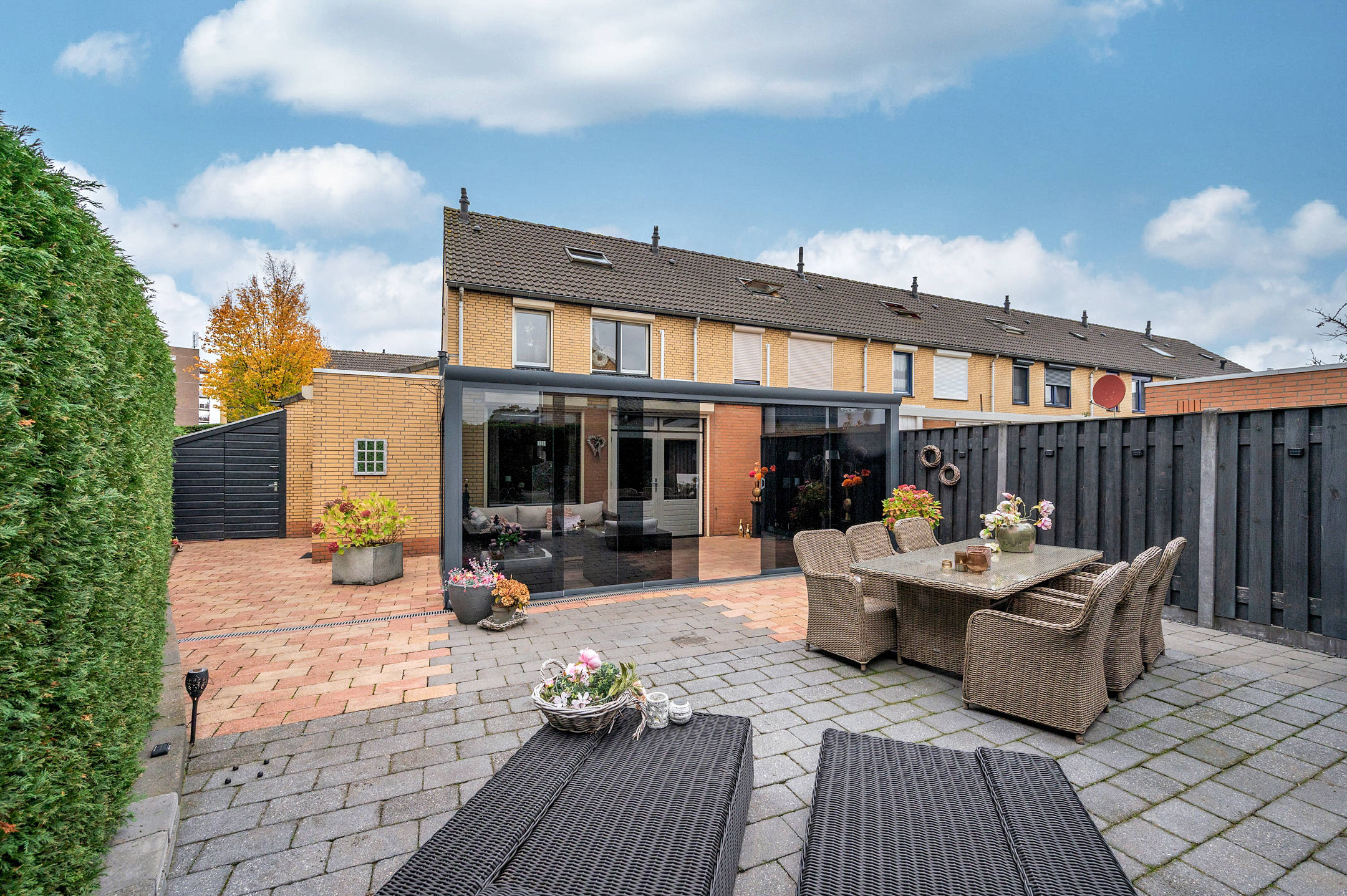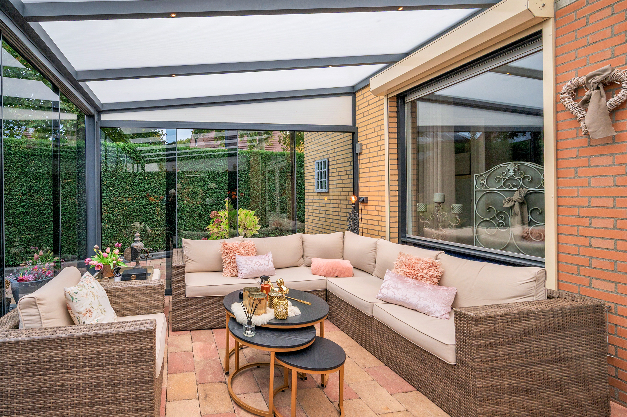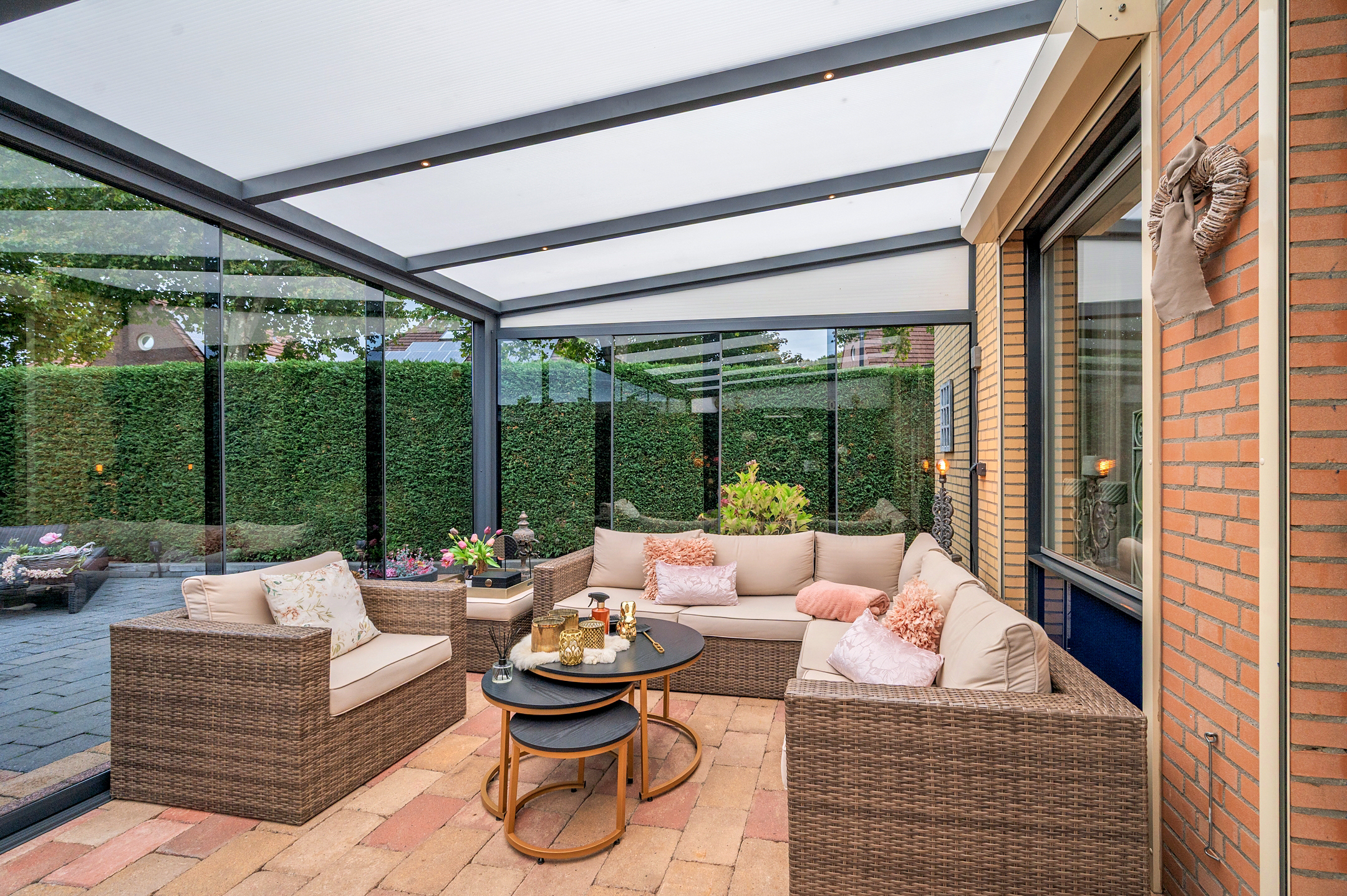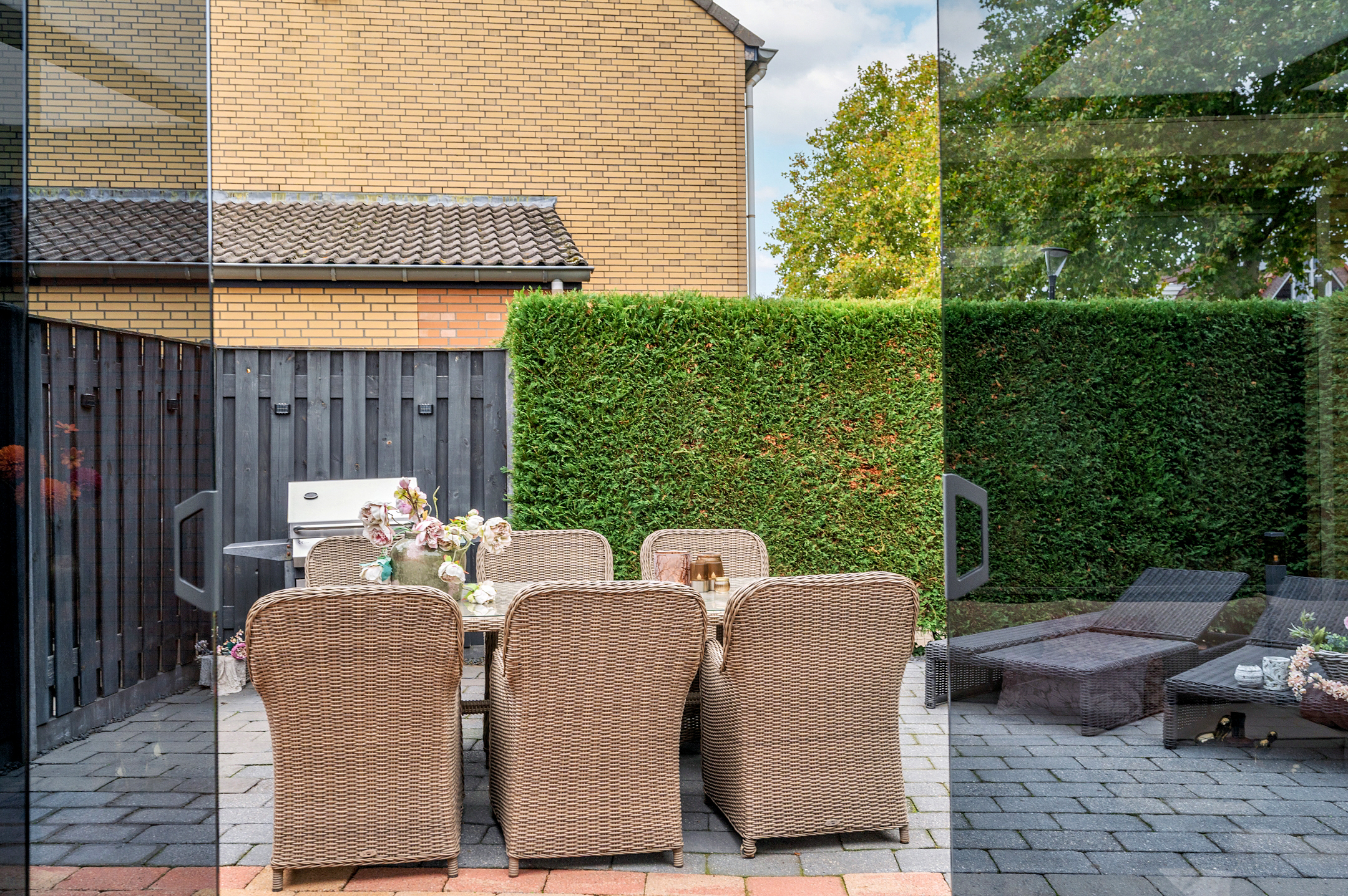 De achtertuin is zeer ruim van opzet en beschikt over een serre en vrije achterom. De serre 21m² groot en kan geheel open door de glazen schuifdeuren. Tevens is hier verwarming aanwezig. Verder beschikt de onderhoudsvrije achtertuin over zeer veel privacy en is er toegang tot de schuur welke ideaal dient als opslag.