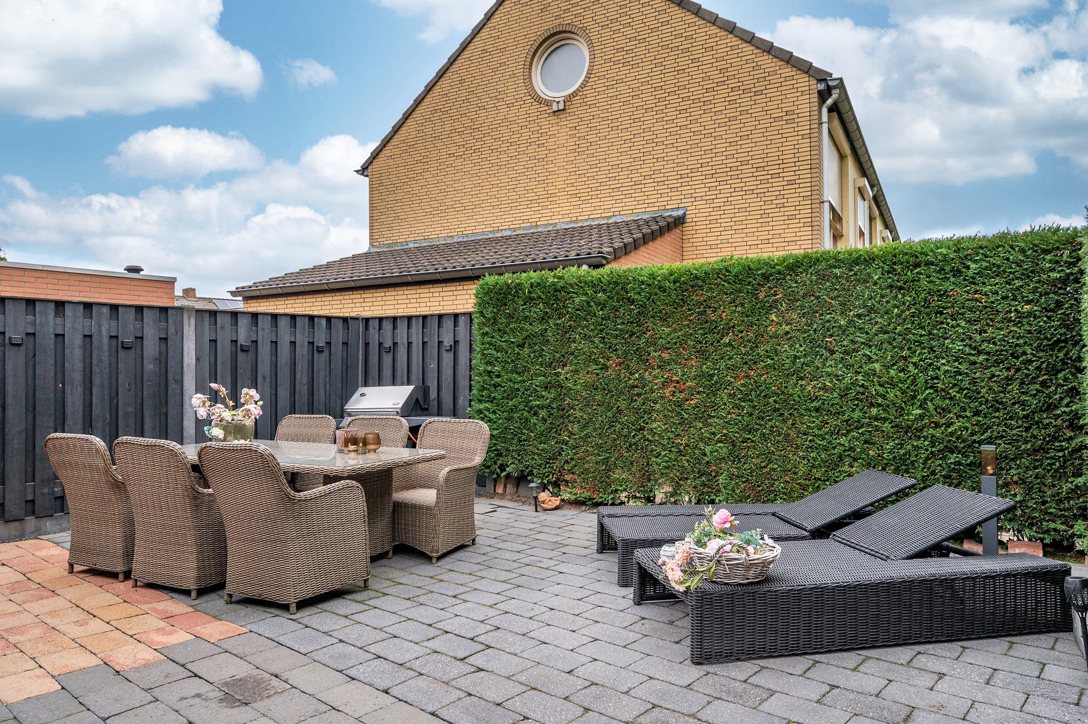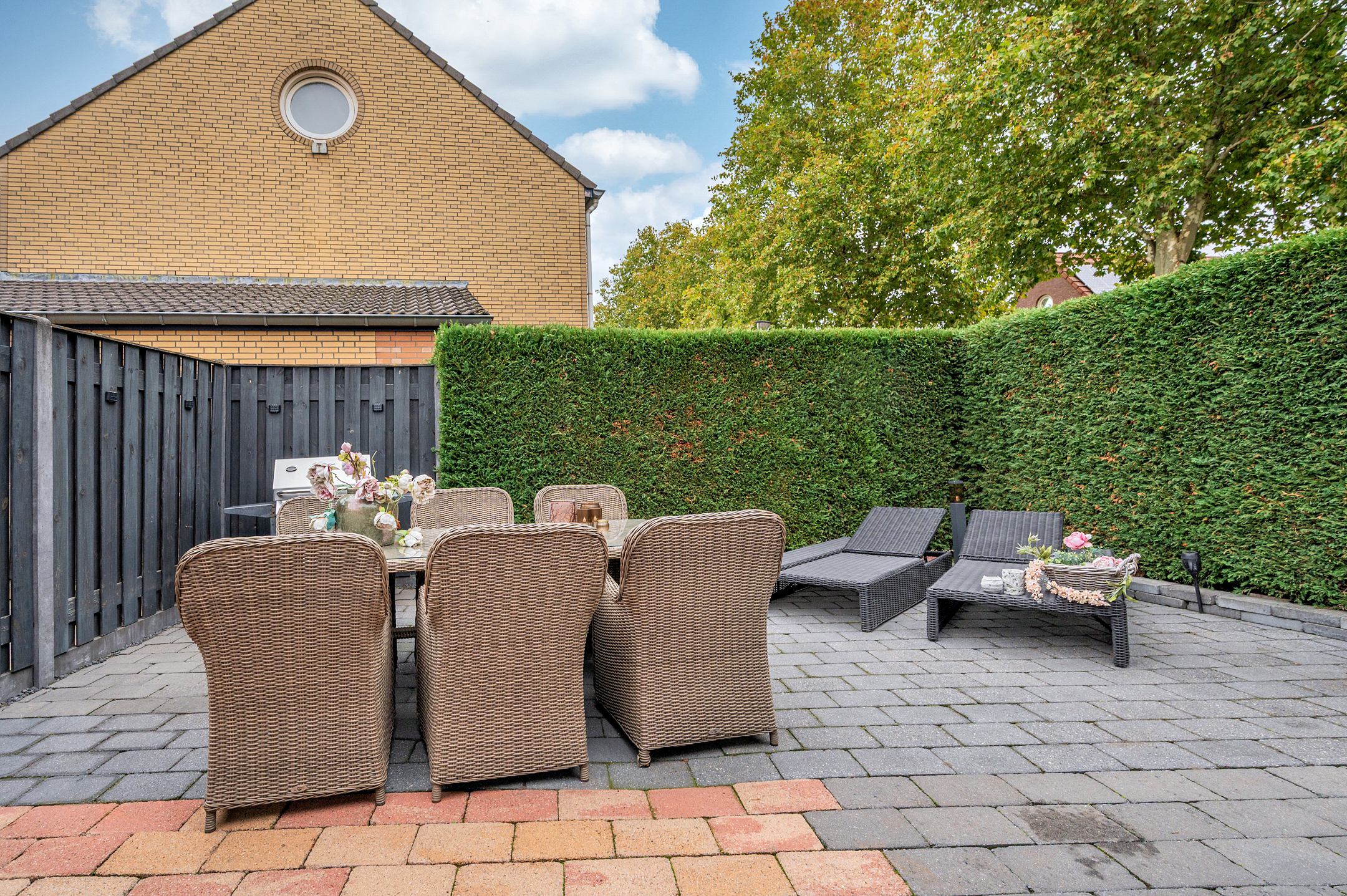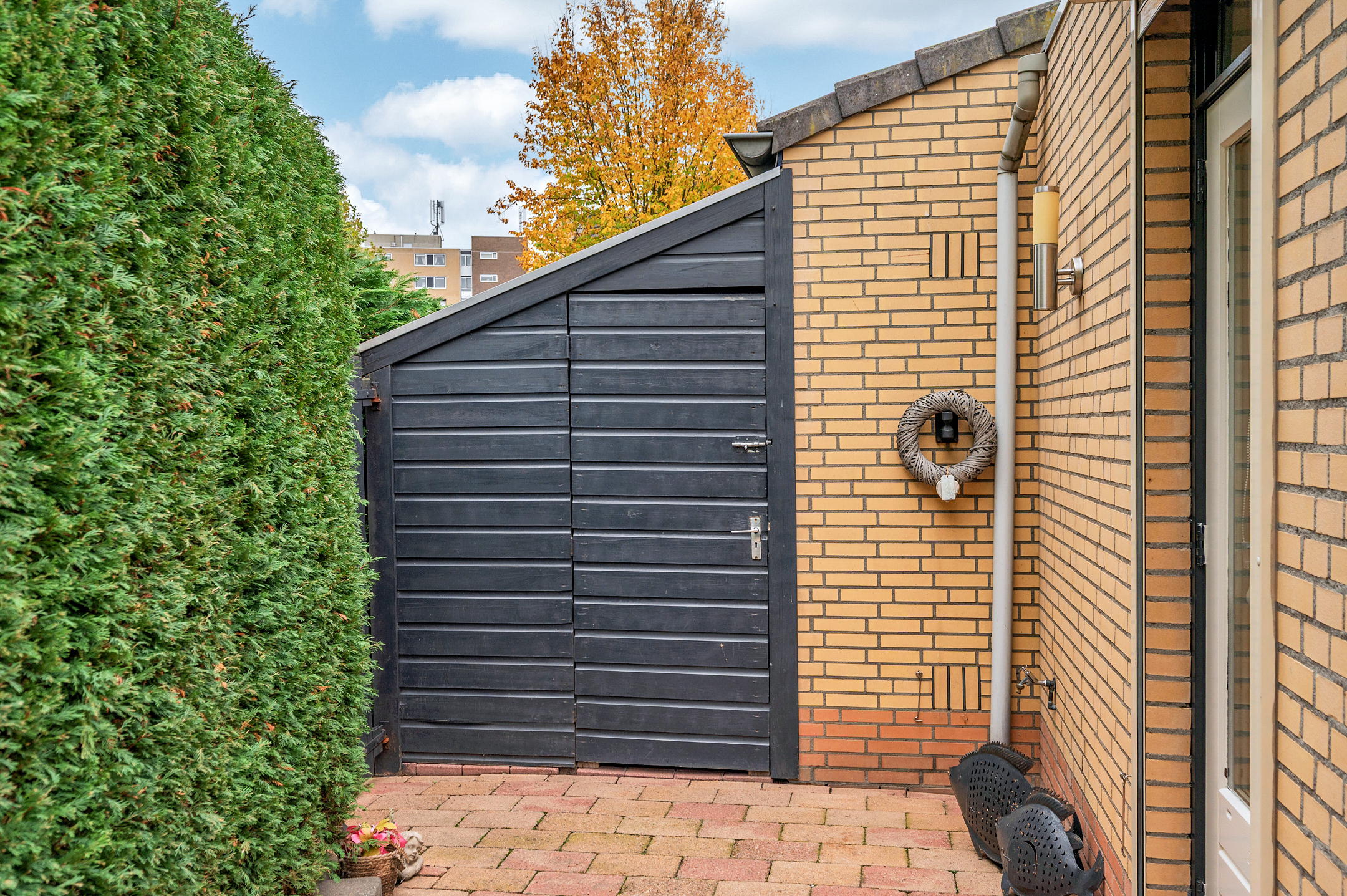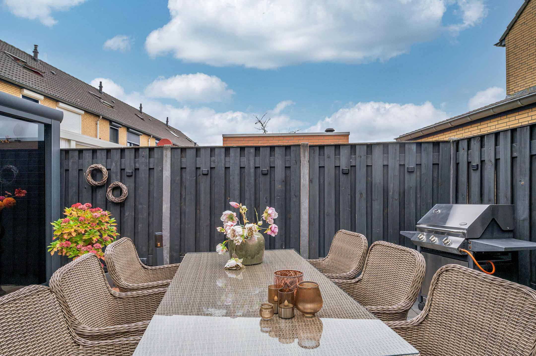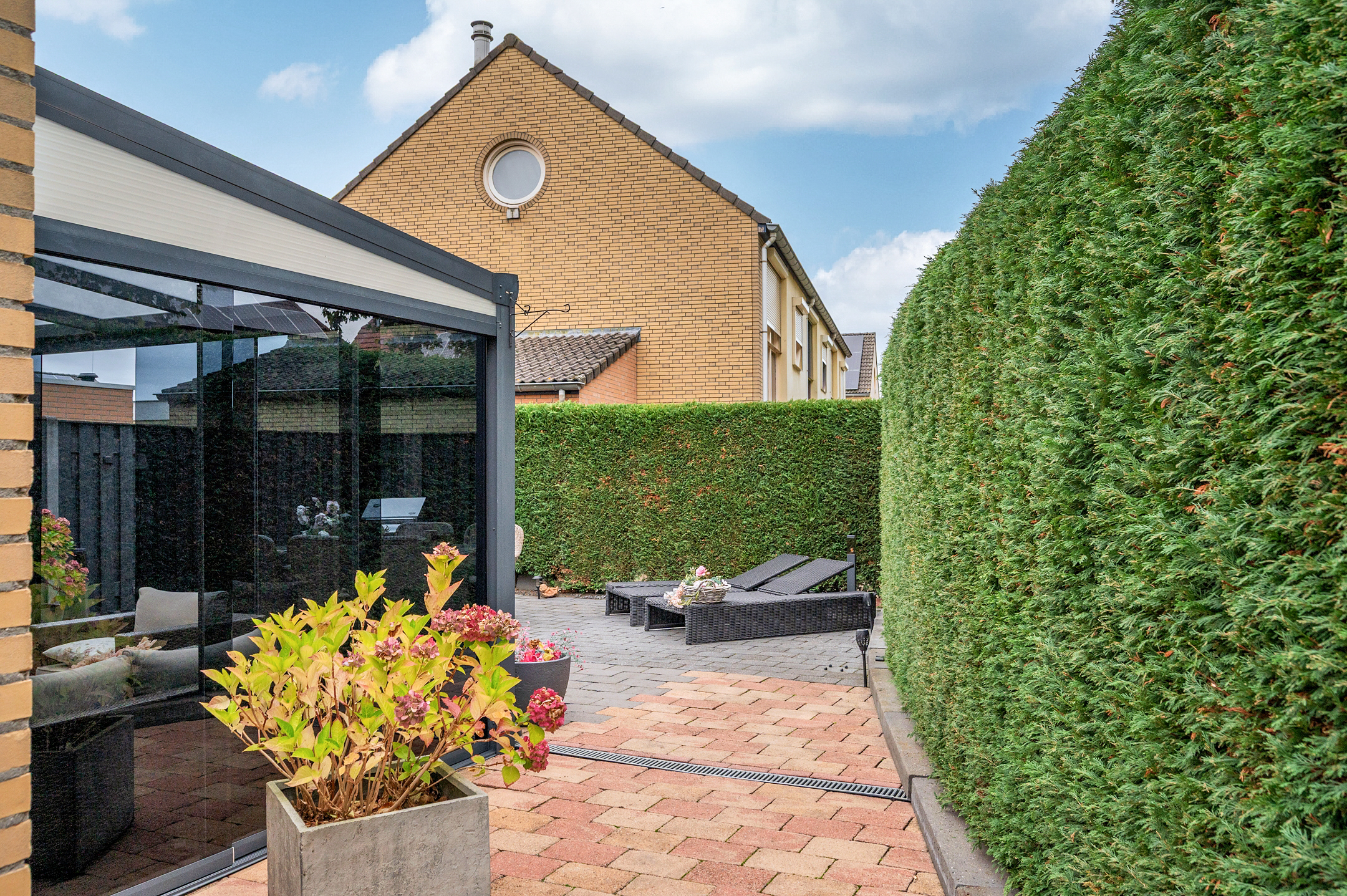 De achtertuin is zeer ruim van opzet en beschikt over een serre en vrije achterom. De serre 21m² groot en kan geheel open door de glazen schuifdeuren. Tevens is hier verwarming aanwezig. Verder beschikt de onderhoudsvrije achtertuin over zeer veel privacy en is er toegang tot de schuur welke ideaal dient als opslag.