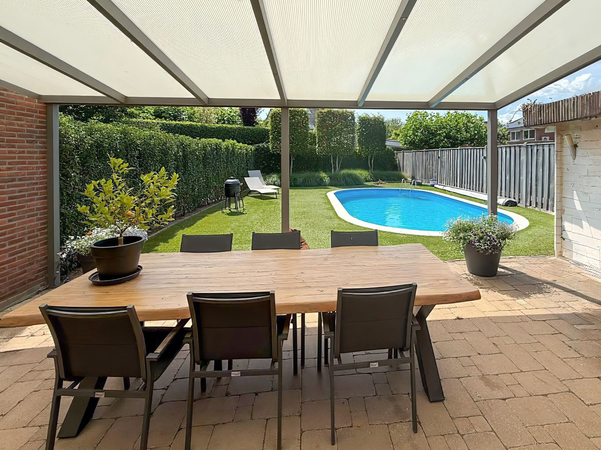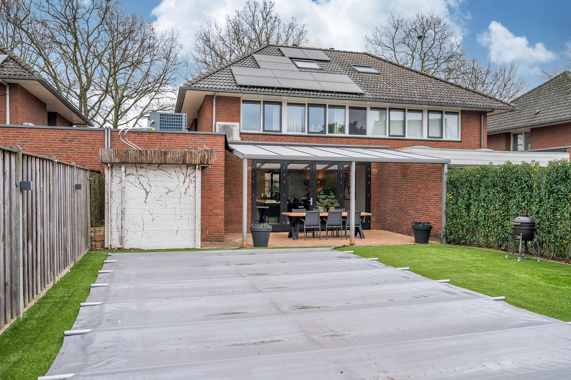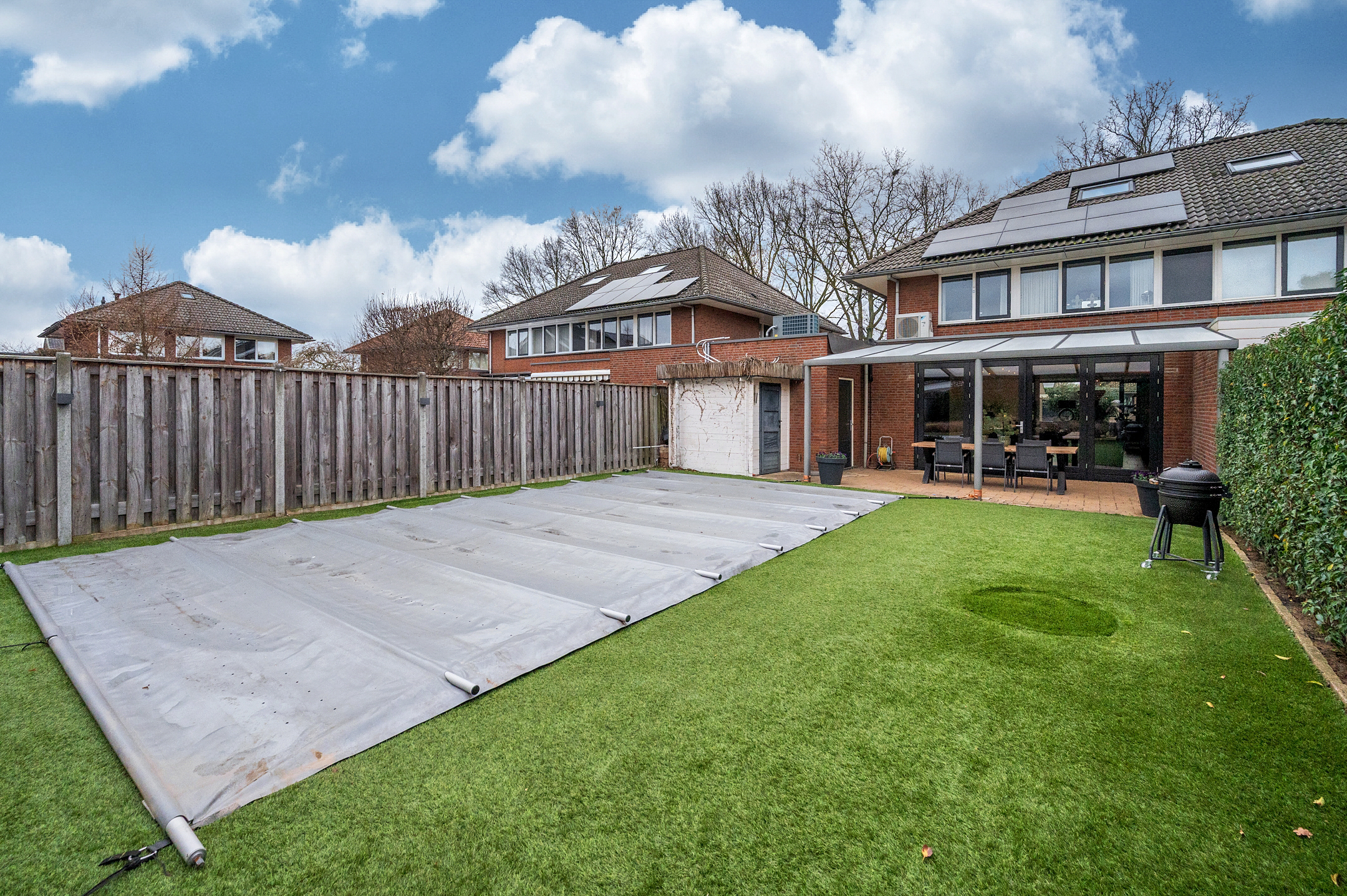 De voortuin is in 2020 volledig gerenoveerd. De achtertuin is voorzien van veel privacy, geheel omheind en beschikt over een prachtig zwembad met verwarming. De opwarming van het zwembad wordt gerealiseerd middels een warmtepomp. De stroom voor de warmtepomp wordt opgewekt via de zonnepanelen waardoor de kosten hier volledig door gedekt zijn.