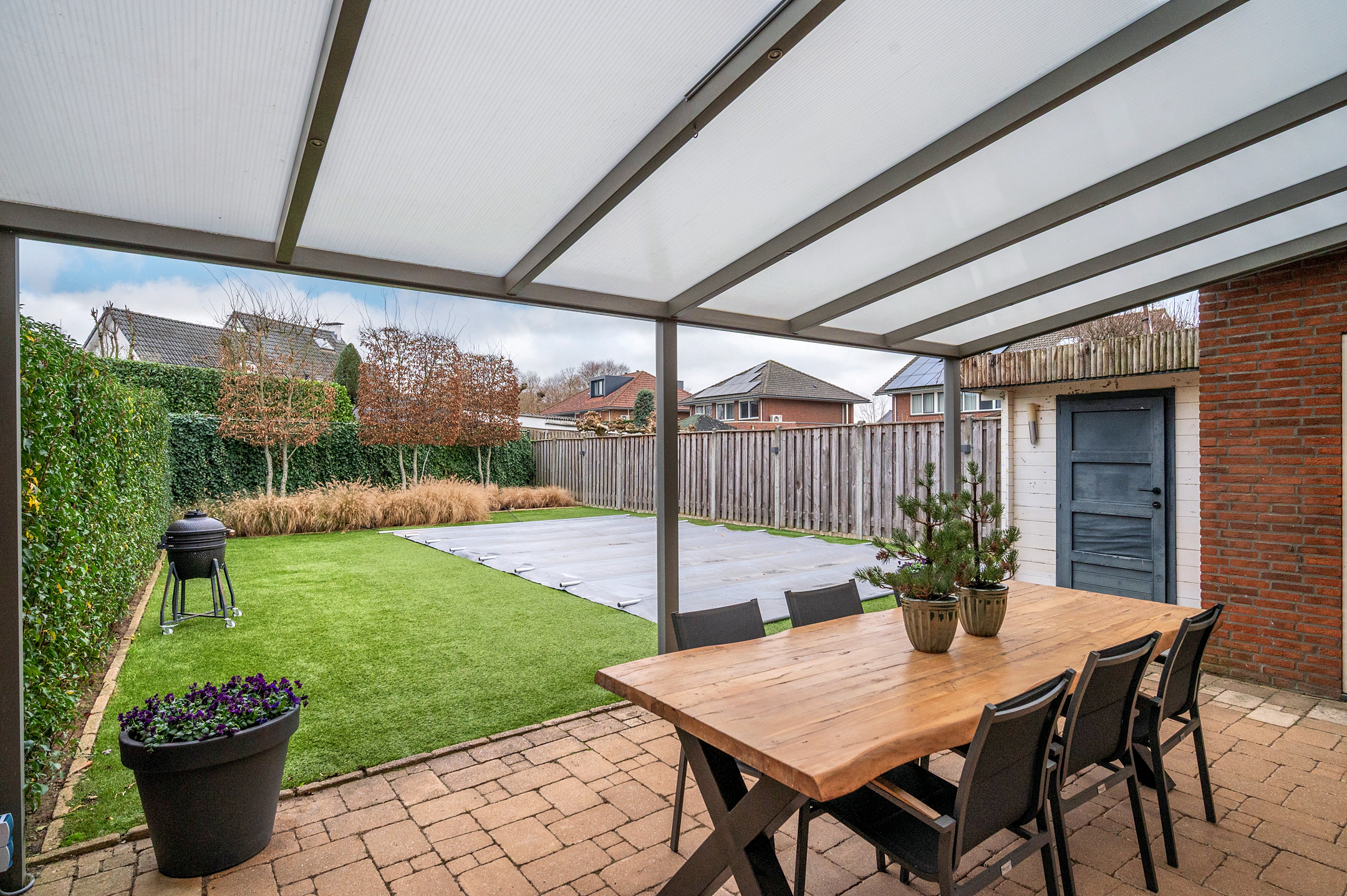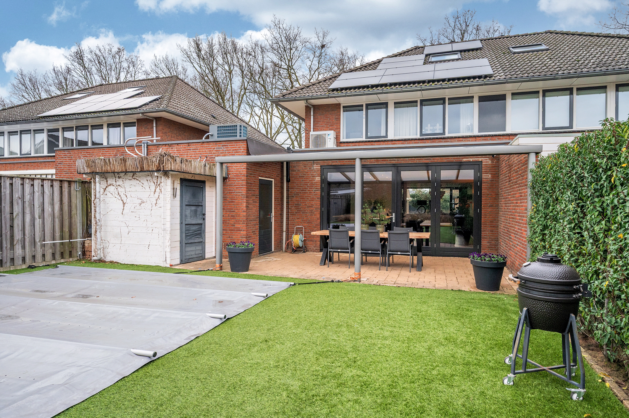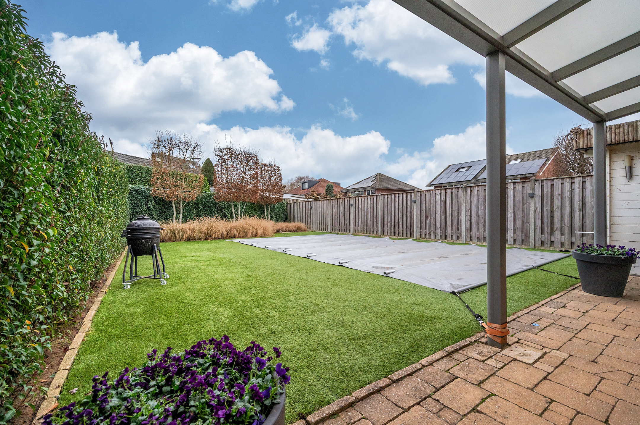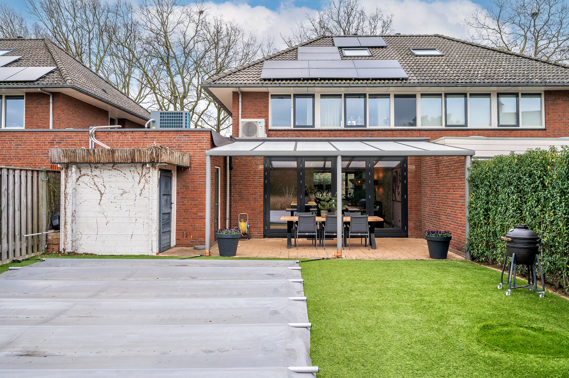 De voortuin is in 2020 volledig gerenoveerd. De achtertuin is voorzien van veel privacy, geheel omheind en beschikt over een prachtig zwembad met verwarming. De opwarming van het zwembad wordt gerealiseerd middels een warmtepomp. De stroom voor de warmtepomp wordt opgewekt via de zonnepanelen waardoor de kosten hier volledig door gedekt zijn.