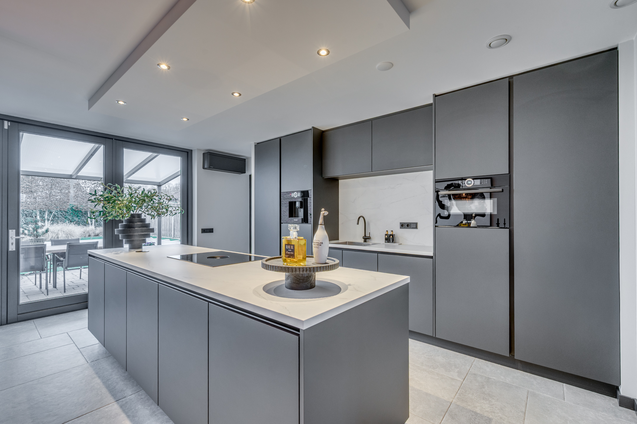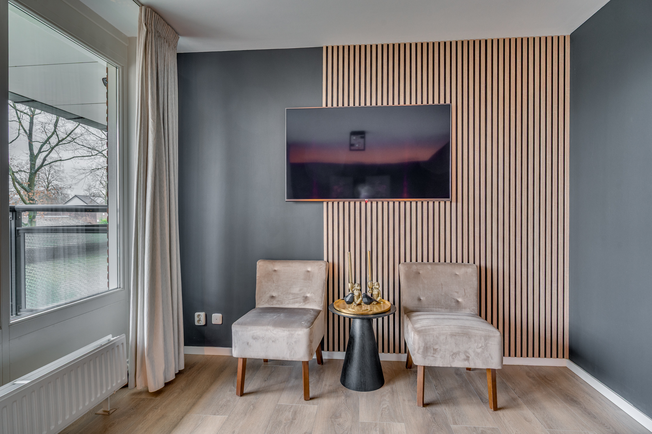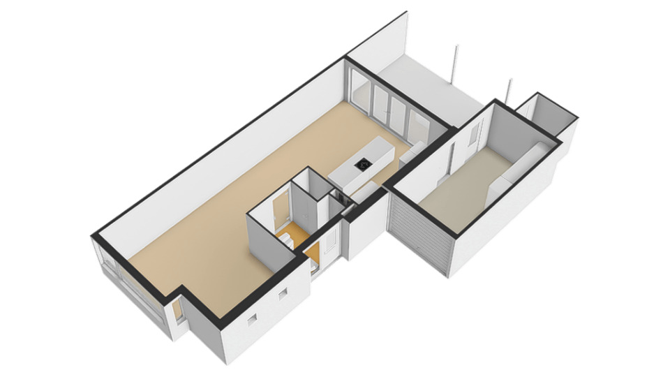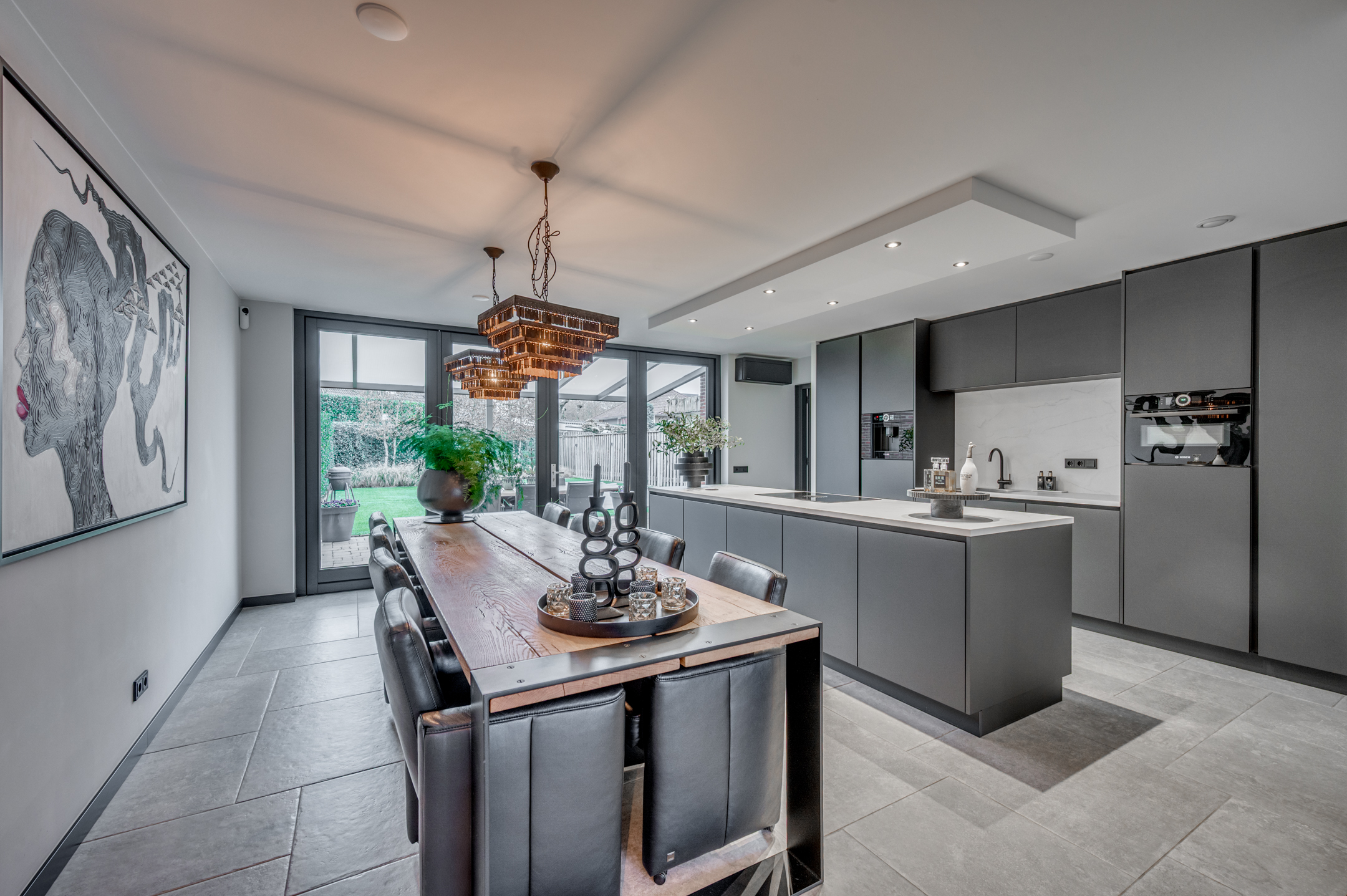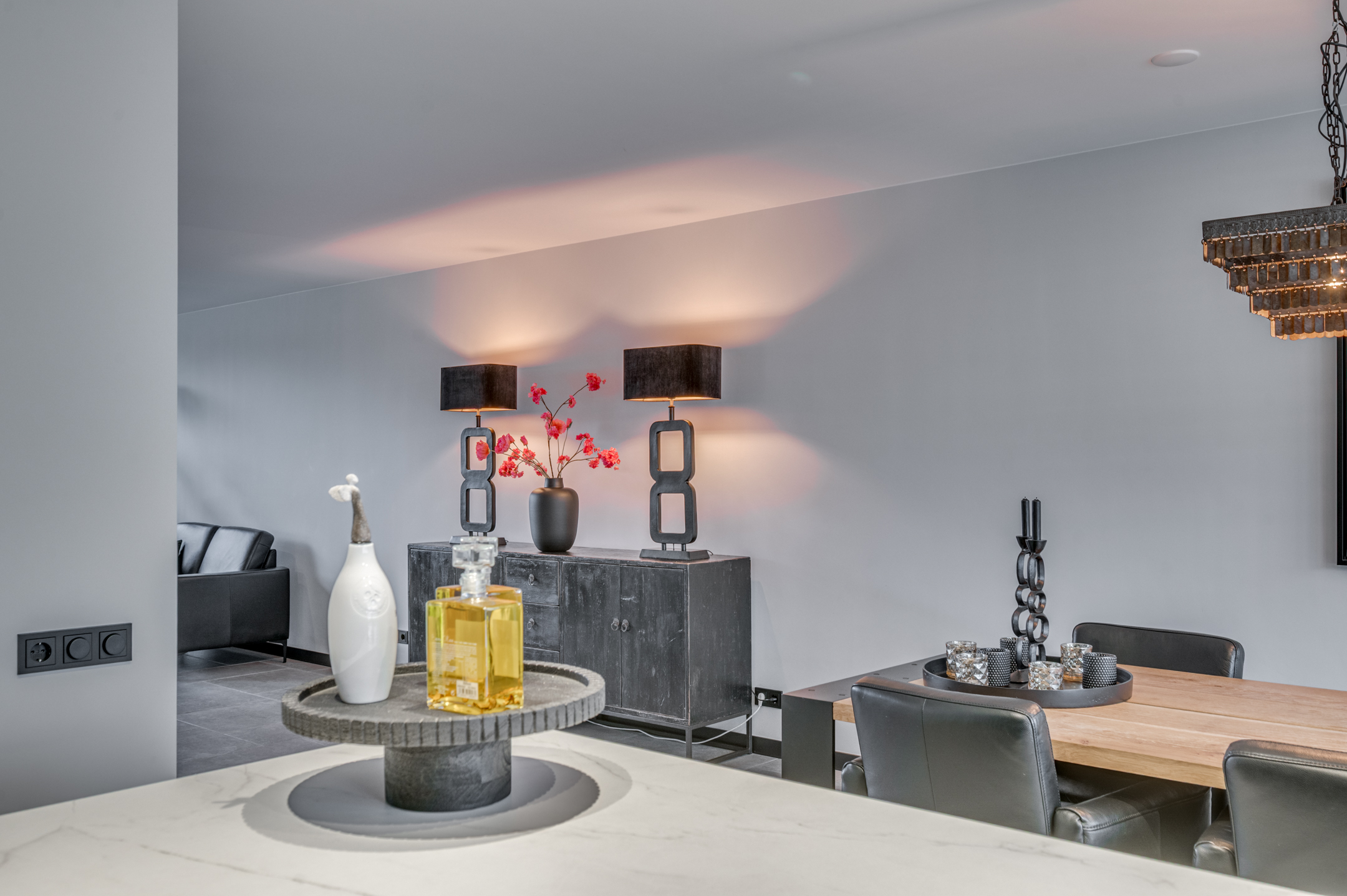 Vanuit de eigen oprit welke plek biedt aan 3 auto's is de garage en de entree tot de woning te bereiken. De overdekte entree geeft toegang tot de ontvangsthal. De hal geeft toegang tot de meterkast, toiletruimte, trapopgang naar de 1e verdieping en loopdeur naar de woonkamer. De half betegelde toiletruimte is voorzien van een zwevend toilet, fonteintje en mechanische ventilatie. De sfeervolle stalen deur geeft toegang tot de zeer ruime woonkamer, Door de grote ramen in de woning is er veel natuurlijk lichtinval. Aan de voorzijde is de zithoek gepositioneerd en aan de achterzijde de riante open keuken. De keuken beschikt over een kookeiland welke is voorzien van een BORA inductiekookplaat. Verder is de woning van alles voorzien zoals inbouw koffieapparaat, combioven/ magnetron, spoelbak, koelkast, vaatwasmachine en zeer veel opbergruimte. Alle apparaten zijn van het merk Bosch. Verder beschikt de keuken over een airco (2023) die de gehele keuken en woonkamer verkoeld en verwarmd, loopdeur naar de garage/wasruimte en 2 openslaande tuindeuren die volledig kunnen worden geopend over de gehele breedte van de woning om binnen met buiten te verbinden. De garage welke beschikt over een een elektrische poort is omgebouwd naar wasruimte en heeft genoeg ruimte voor opslag, fietsen etc. De gehele begane grond is voorzien van een tegelvloer. Tevens is de woonkamer met open keuken voorzien van vloerverwarming.