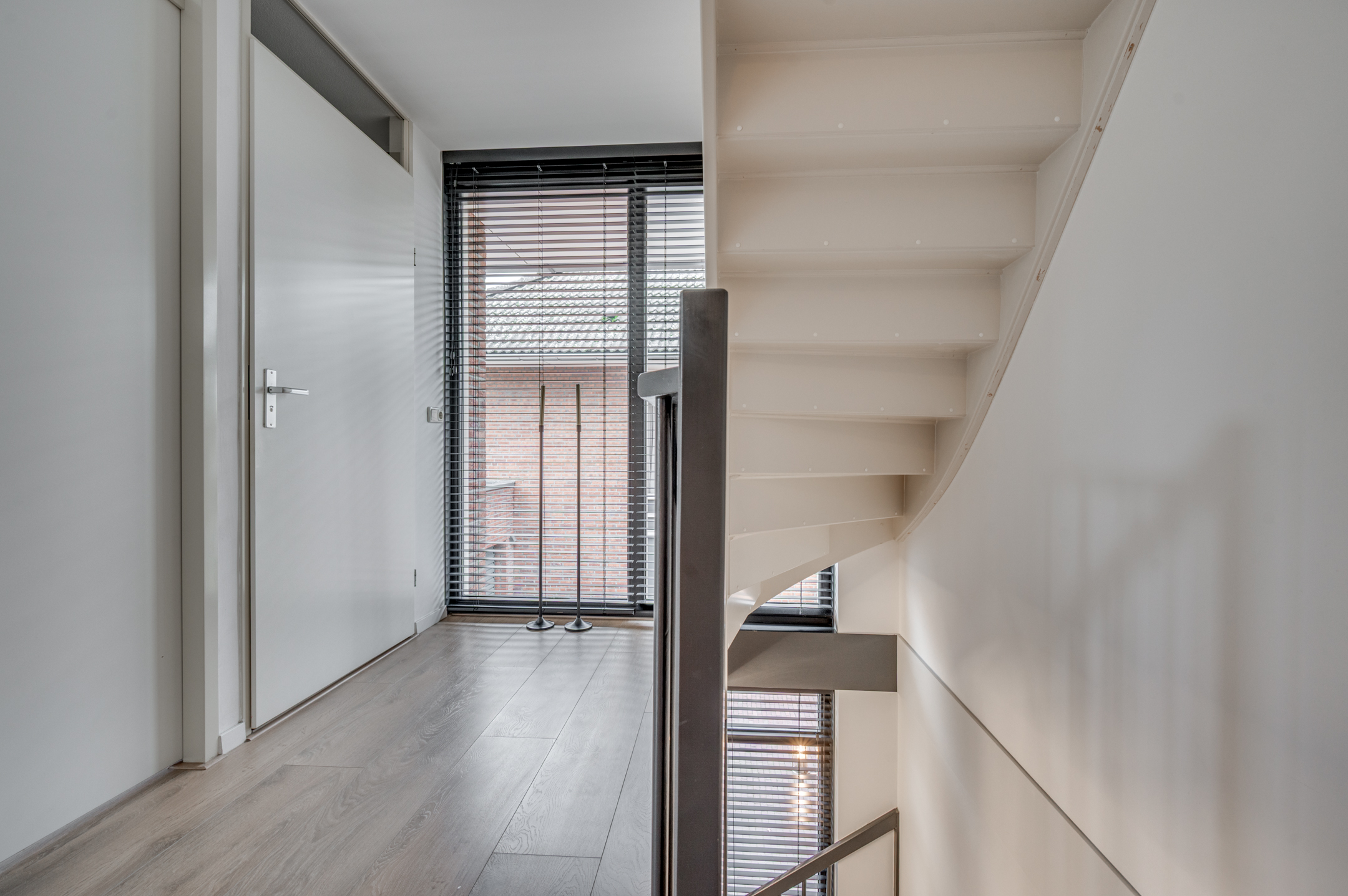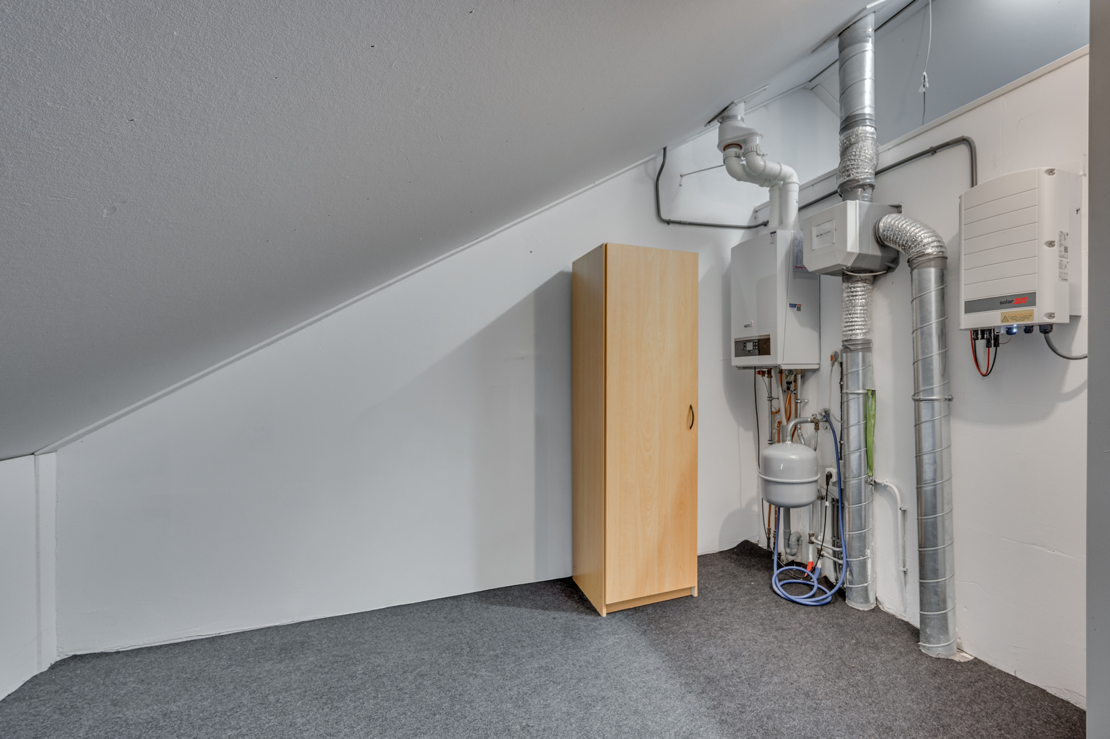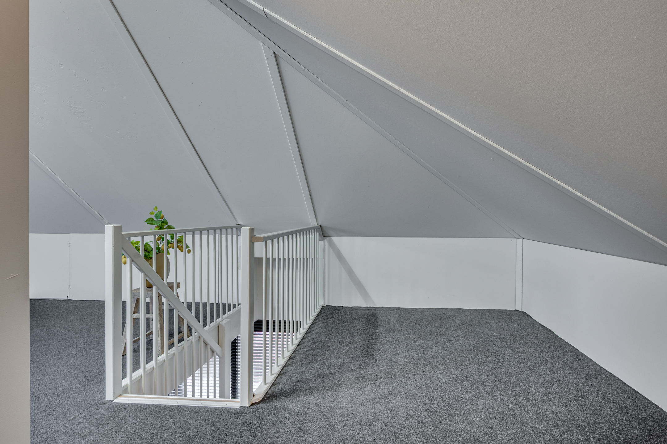 De vaste trap geeft toegang tot de 2e verdieping. Hier is de CV-ketel (Nefit 2019 eigendom), mechanische ventilatie en omvormer van de 21 zonnepanelen geplaatst. Het is gemakkelijk om hier een riante 4e en zelfs 5e slaapkamer te realiseren.