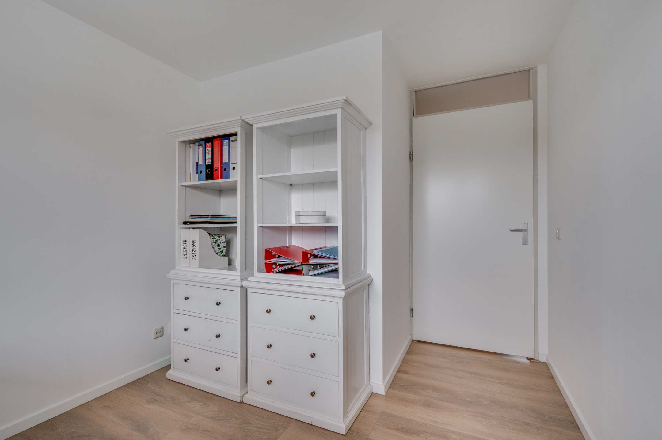 De ruime overloop geeft toegang tot 3 slaapkamers, badkamer, separate toiletruimte en trapopgang naar de 2e verdieping. De masterbedroom is aan de voorzijde gelegen, is ca. 19m² groot en heeft toegang tot het balkon. De andere slaapkamers zijn beide ca. 10m² groot. Verder beschikt de verdieping over een ruime badkamer welke is voorzien van een ligbad, douche, wastafel met meubel, mechanische ventilatie en is er een separate toiletruimte welke is voorzien van een zwevend toilet, fonteintje en mechanische ventilatie. Ieder raam en deur is voorzien van horren.