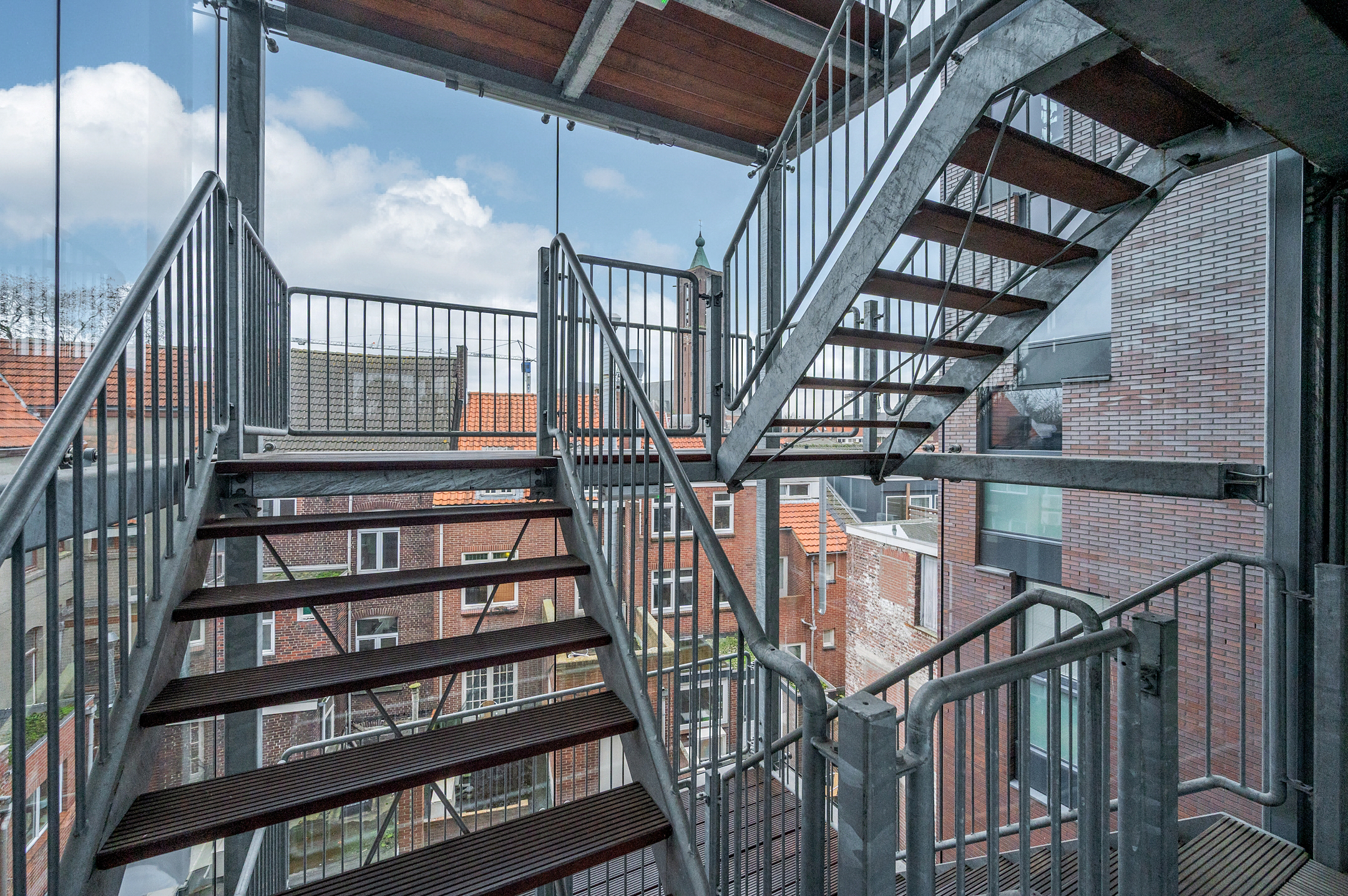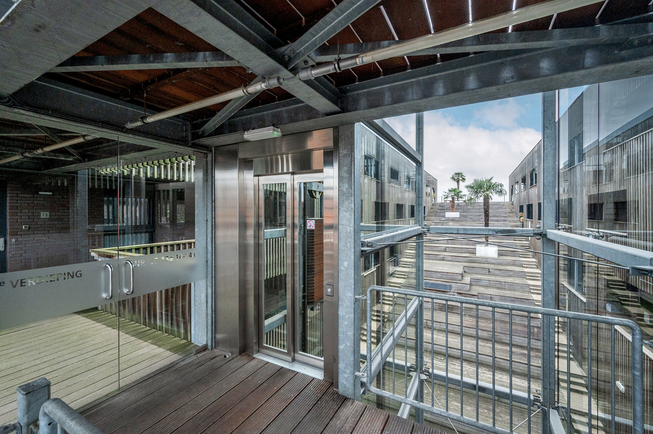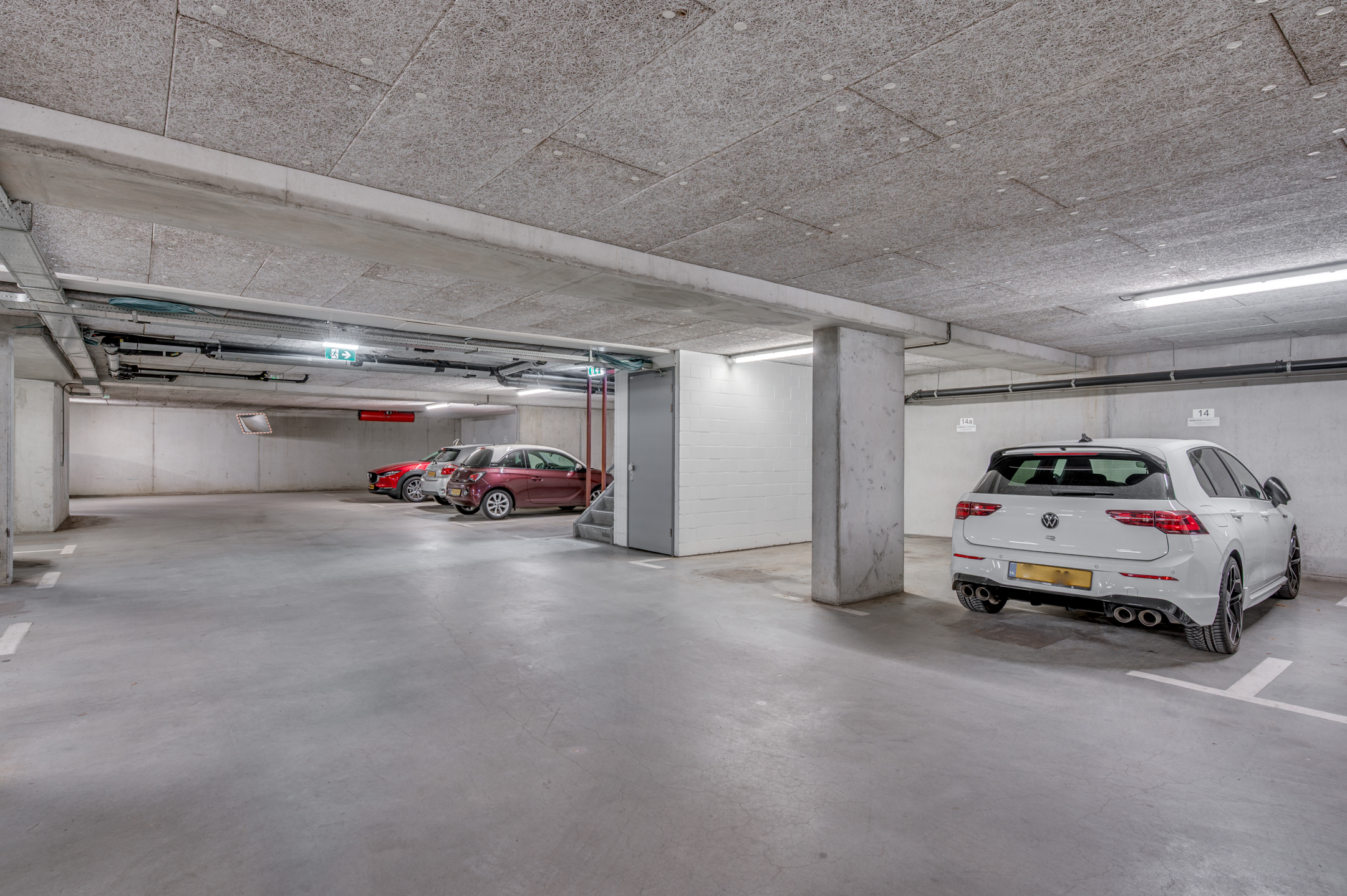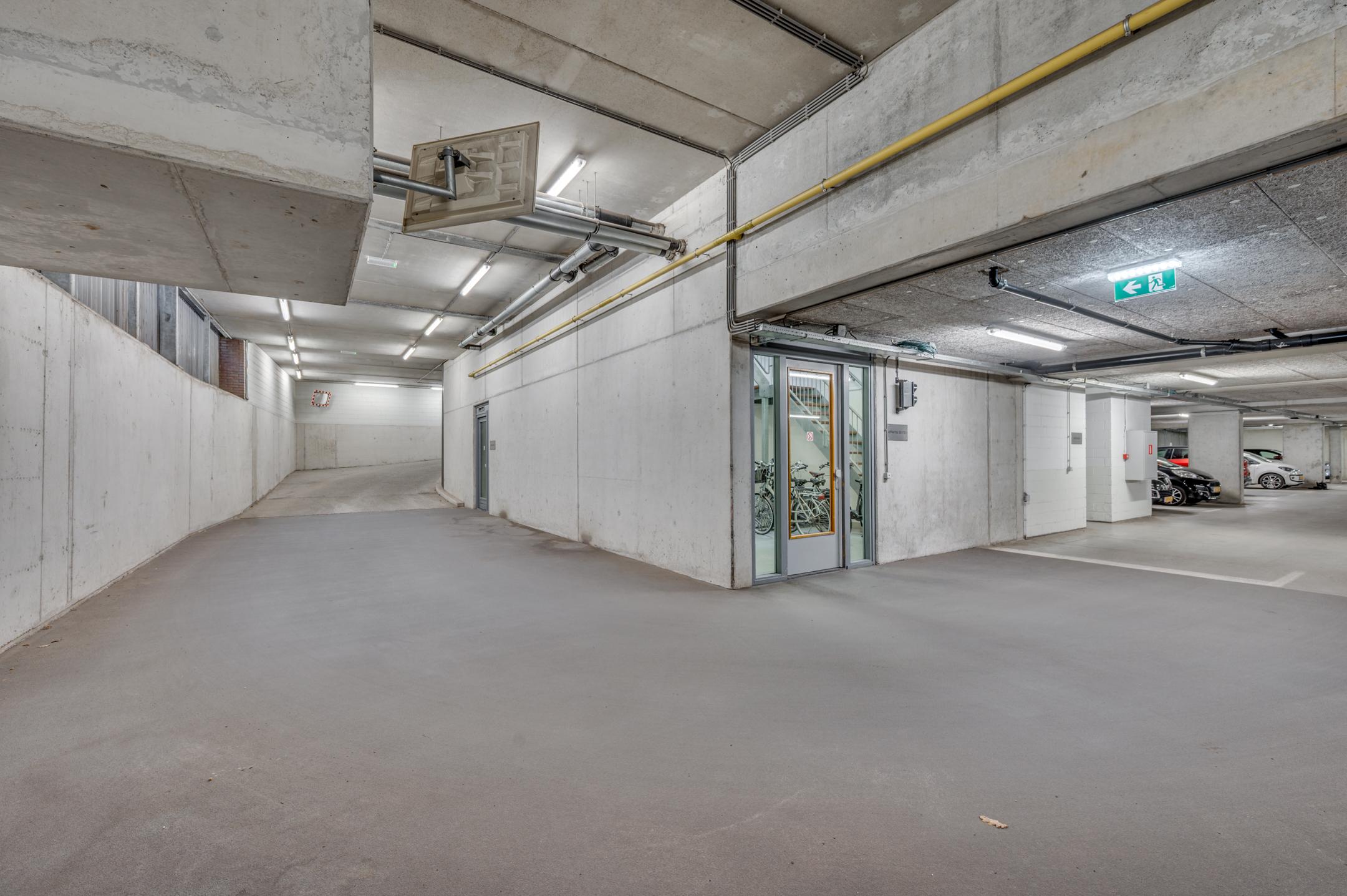 Centrale entree met beltableau en brievenbussen. Middels het trappenhuis en de liftinstallatie is er toegang tot zowel de parkeergarage en gezamenlijke fietsenstalling als het appartement. In de parkeergarage is een eigen parkeerplaats.