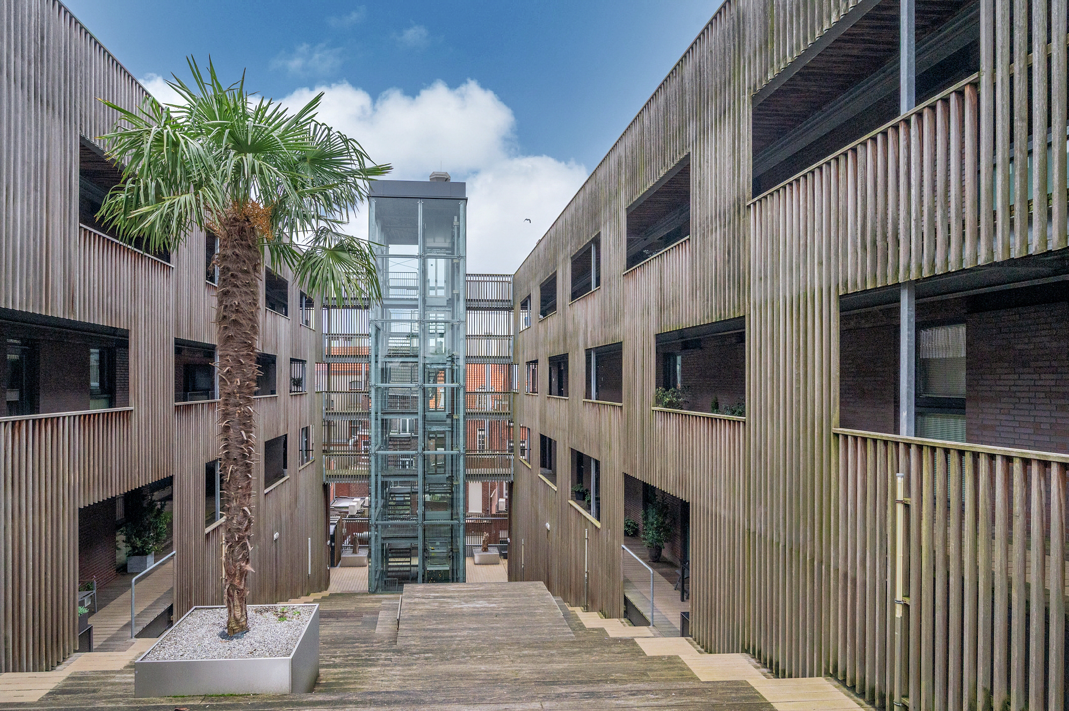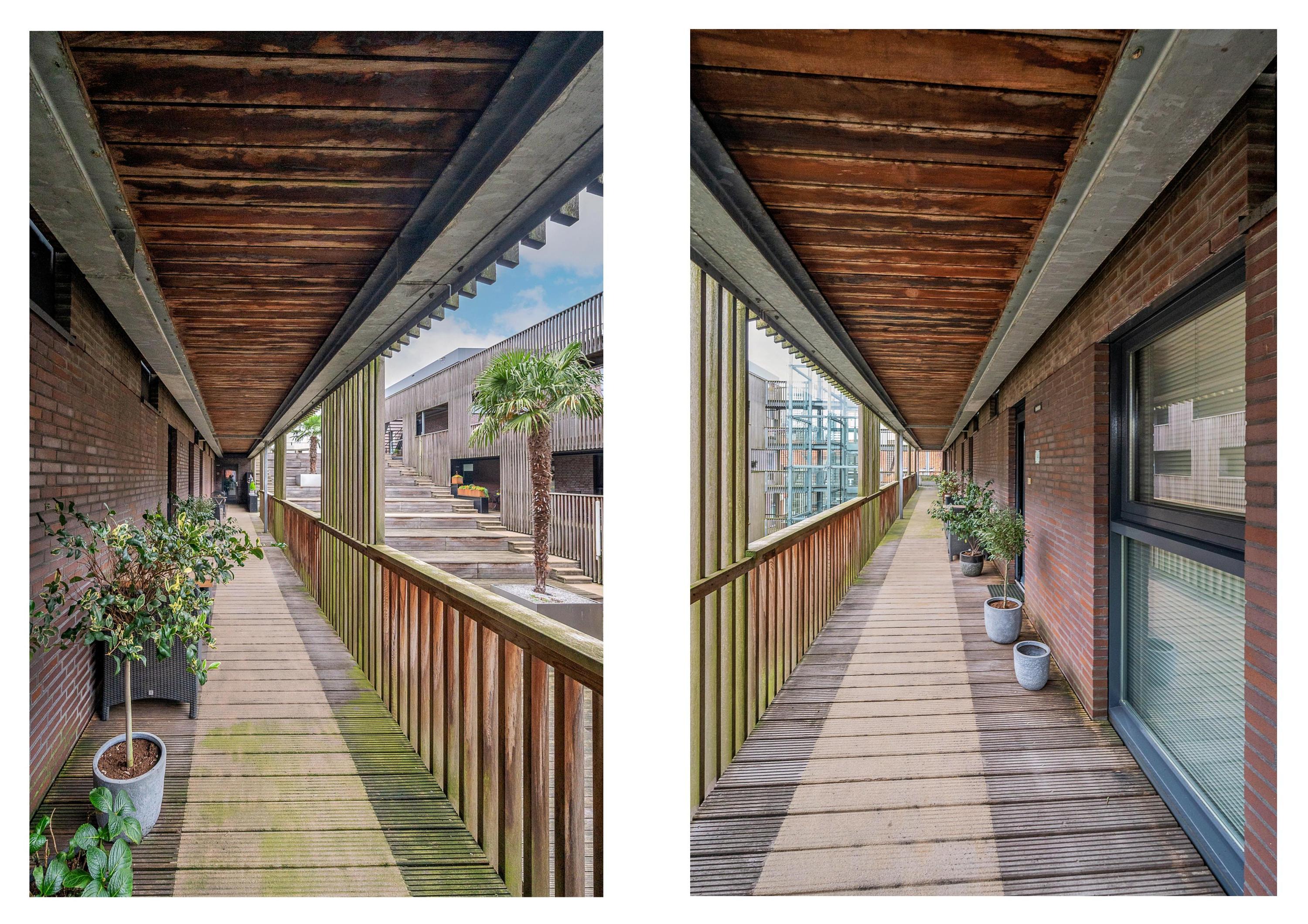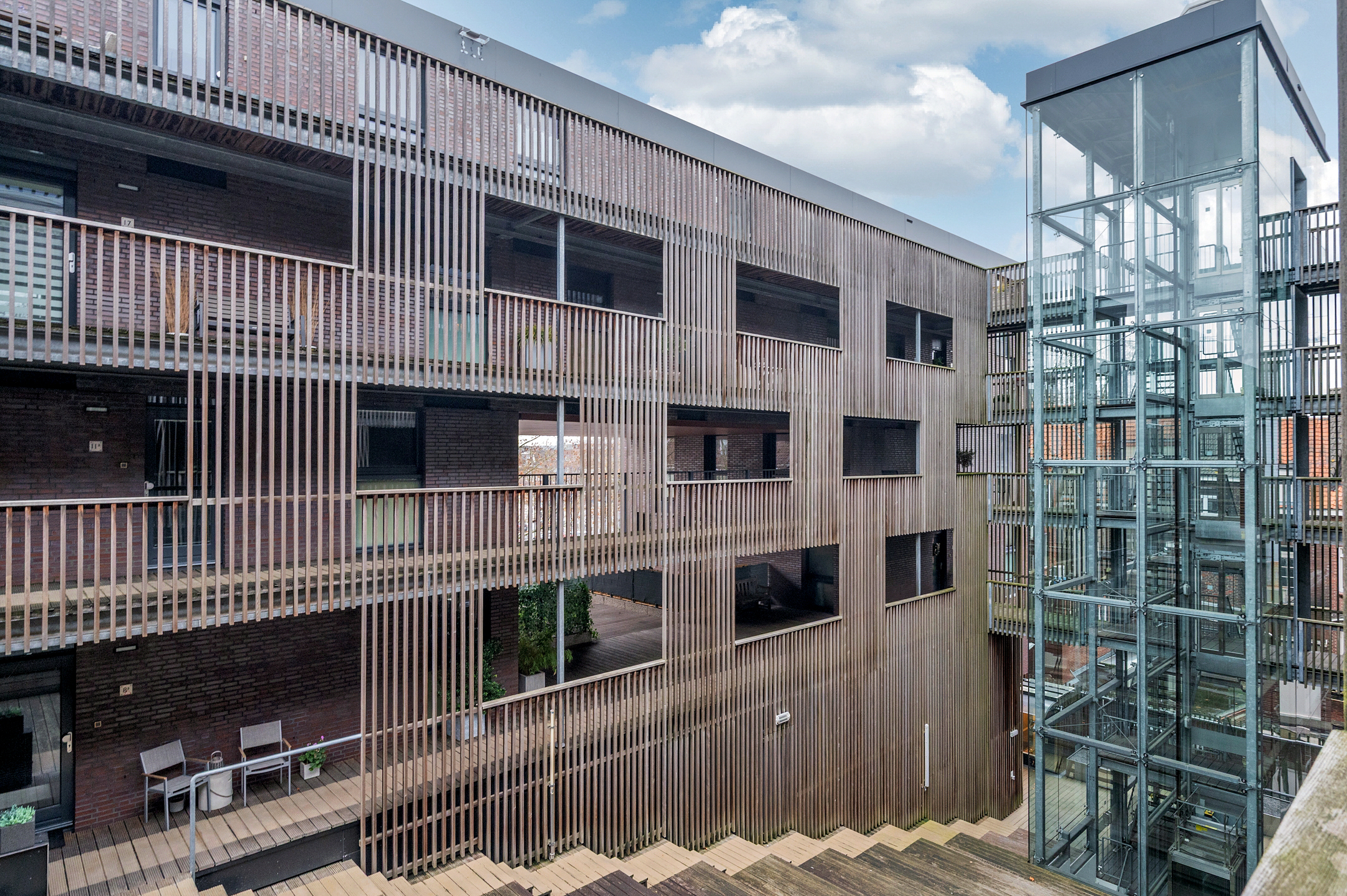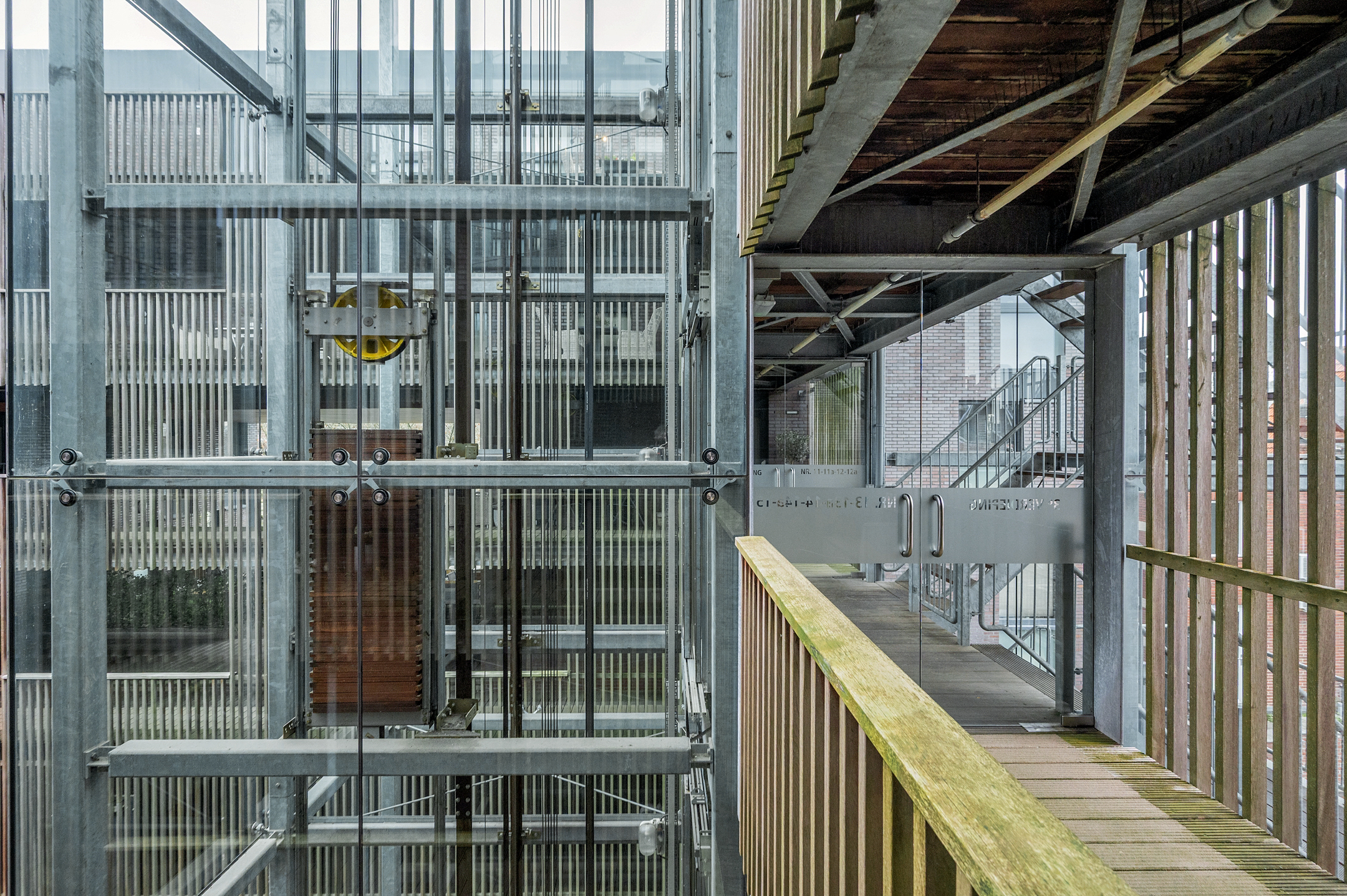 Centrale entree met beltableau en brievenbussen. Middels het trappenhuis en de liftinstallatie is er toegang tot zowel de parkeergarage en gezamenlijke fietsenstalling als het appartement. In de parkeergarage is een eigen parkeerplaats.