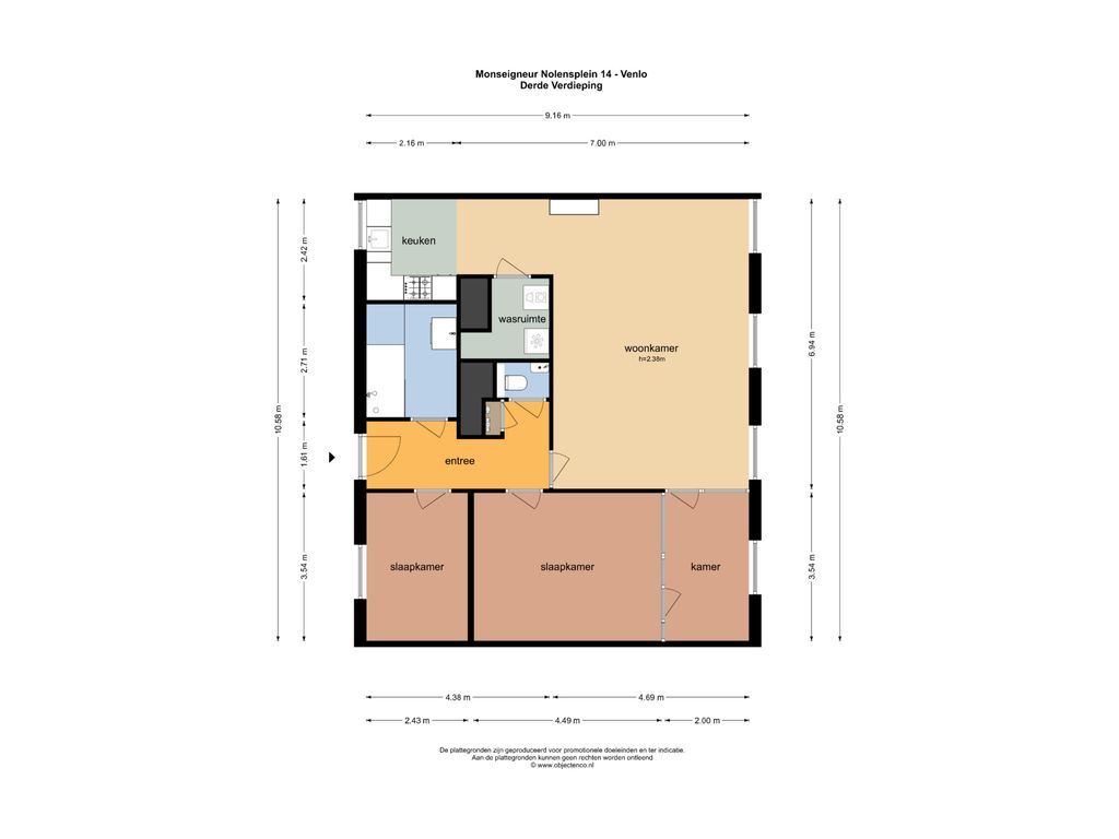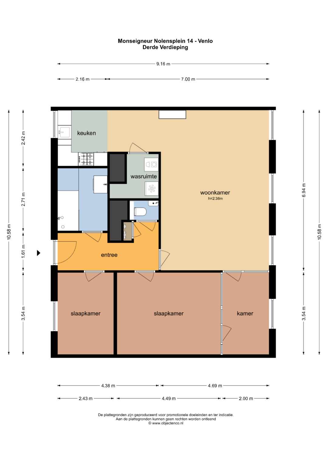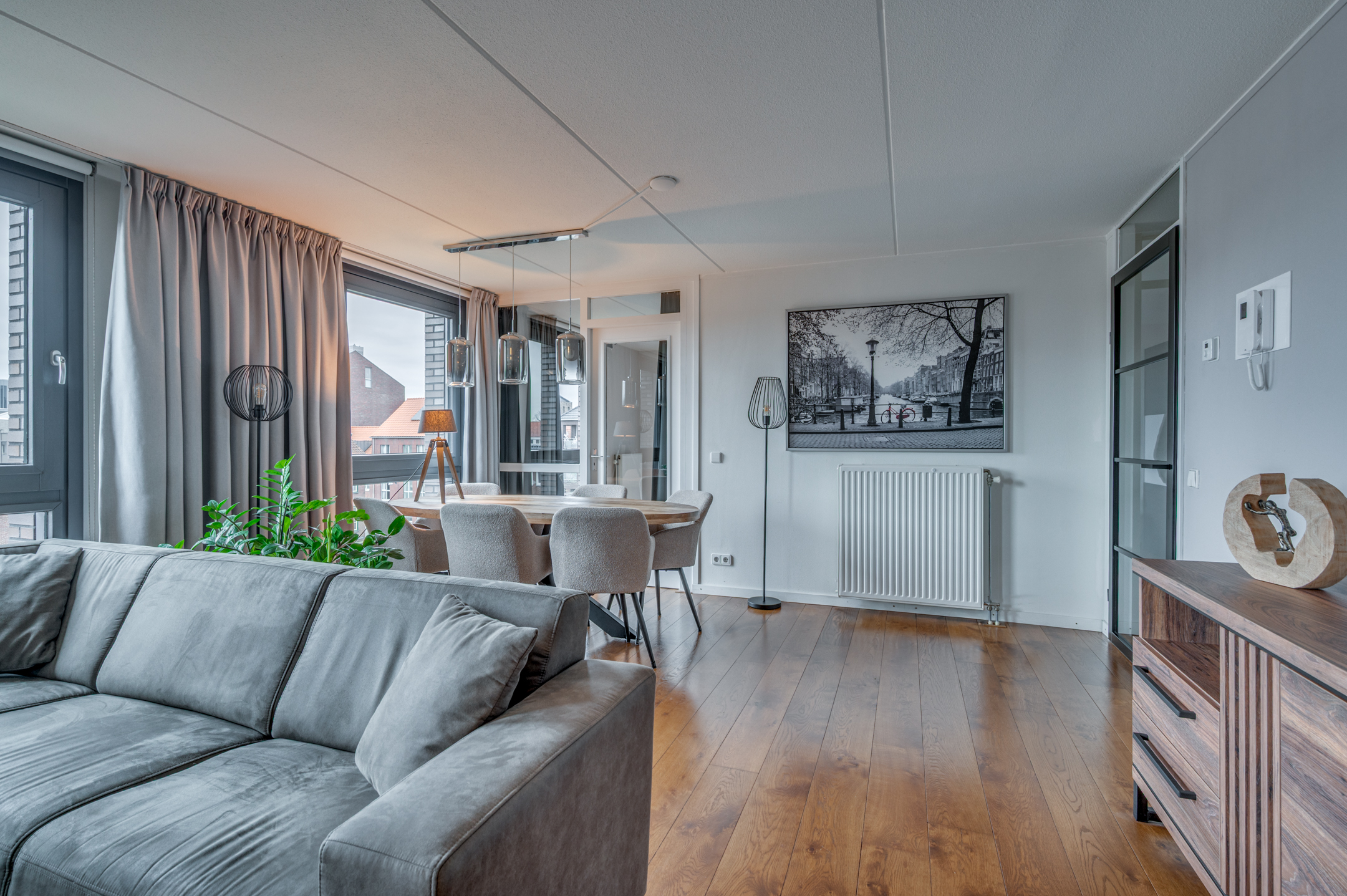 Het appartement is gelegen op de 3e verdieping. De ruime entree/ hal geeft toegang tot de toiletruimte, de badkamer, twee slaapkamers en de woonkamer. De moderne geheel betegelde toiletruimte is voorzien van een zwevend toilet, fonteintje en mechanische ventilatie. De ruime badkamer welke in 2024 is vernieuwd is voorzien van een inloopdouche, wastafel met meubel, designradiator en mechanische ventilatie. De slaapkamers zijn ca. 8,6m² en 16m² groot. De masterbedroom geeft toegang tot een extra kamer van ca. 7m². De mogelijkheid bestaat om hier een 3e slaapkamer te realiseren. De ruime lichte woonkamer van ca. 32,5m² is voorzien van een massief eiken parketvloer. Vanuit de woonkamer is er toegang tot de keuken. De halfopen keuken is ingericht met een 4-pits gasfornuis, afzuigkap, combi-magnetron, koelkast en spoelbak. Vanuit de keuken is er toegang tot de wasruimte/bijkeuken. Hier is tevens de CV-ketel (Nefit 2021 eigendom) gepositioneerd.