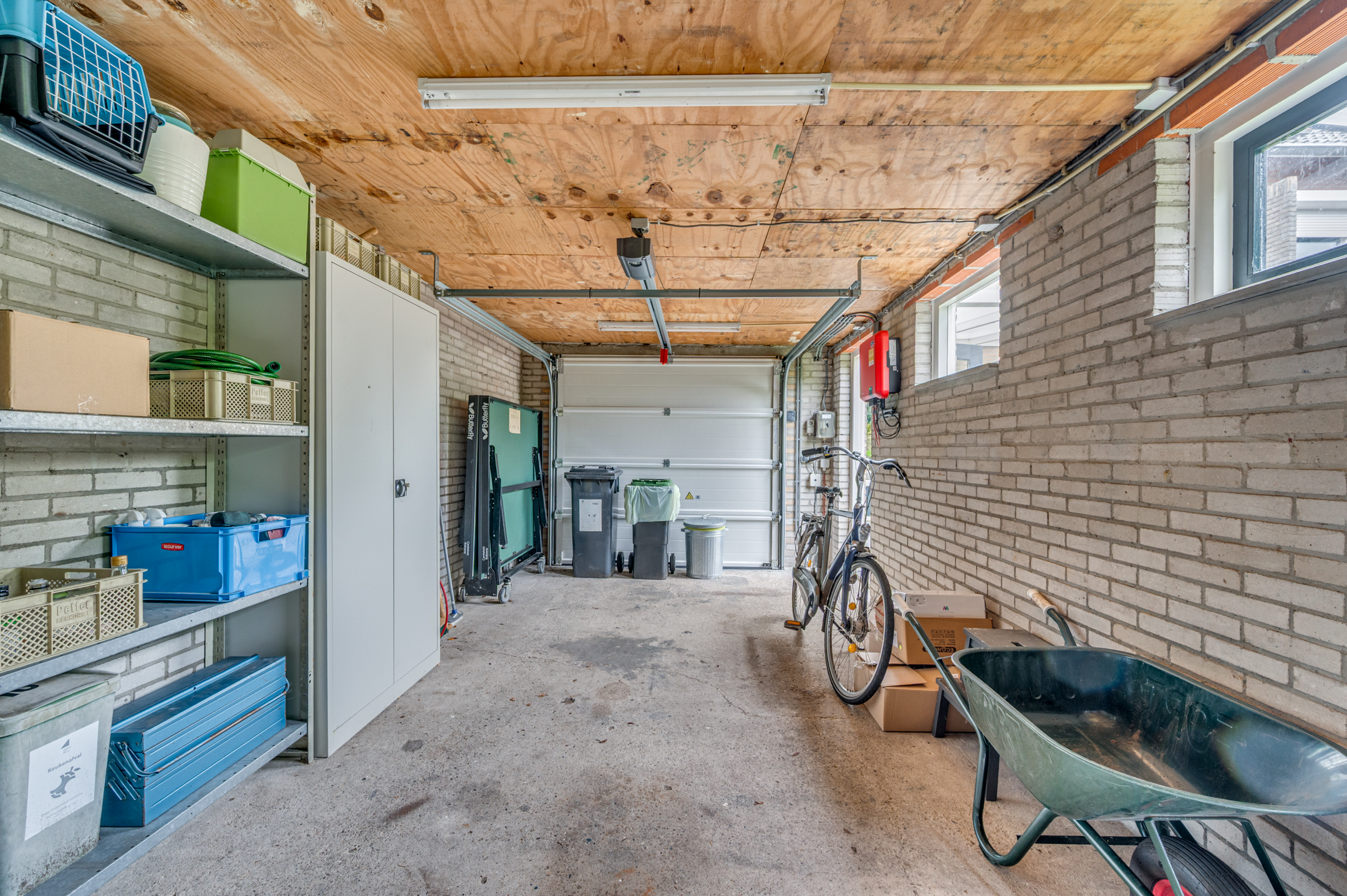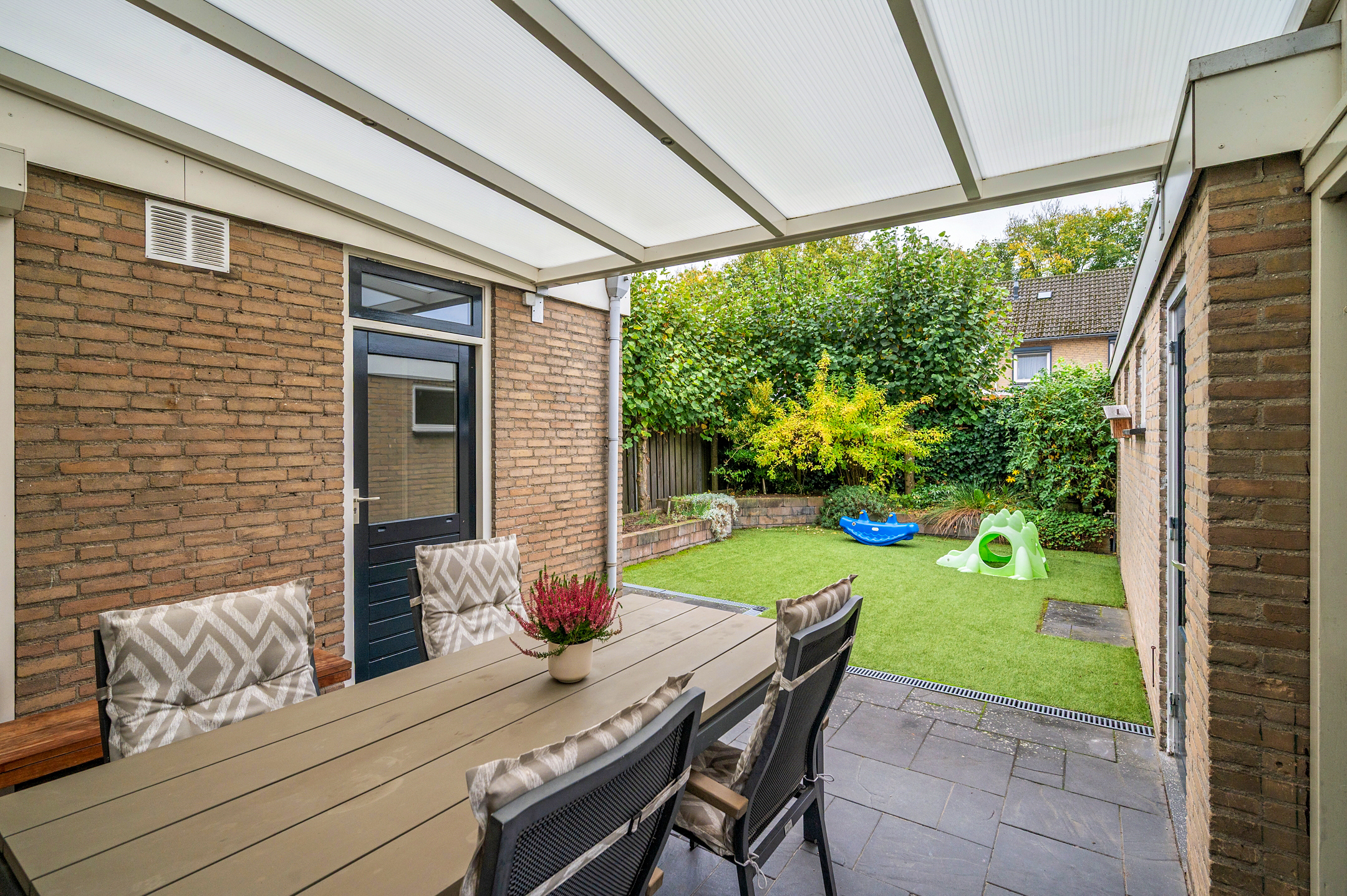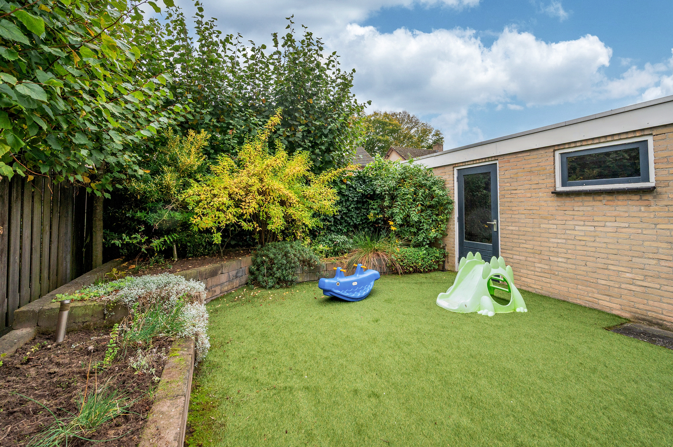 De voortuin bestaat uit een beklinkerde oprit en borders met beplanting. Via de garage is er toegang tot de tuin. De geheel omheinde achtertuin bestaat uit een overkapping, borders met beplanting en kunstgras.