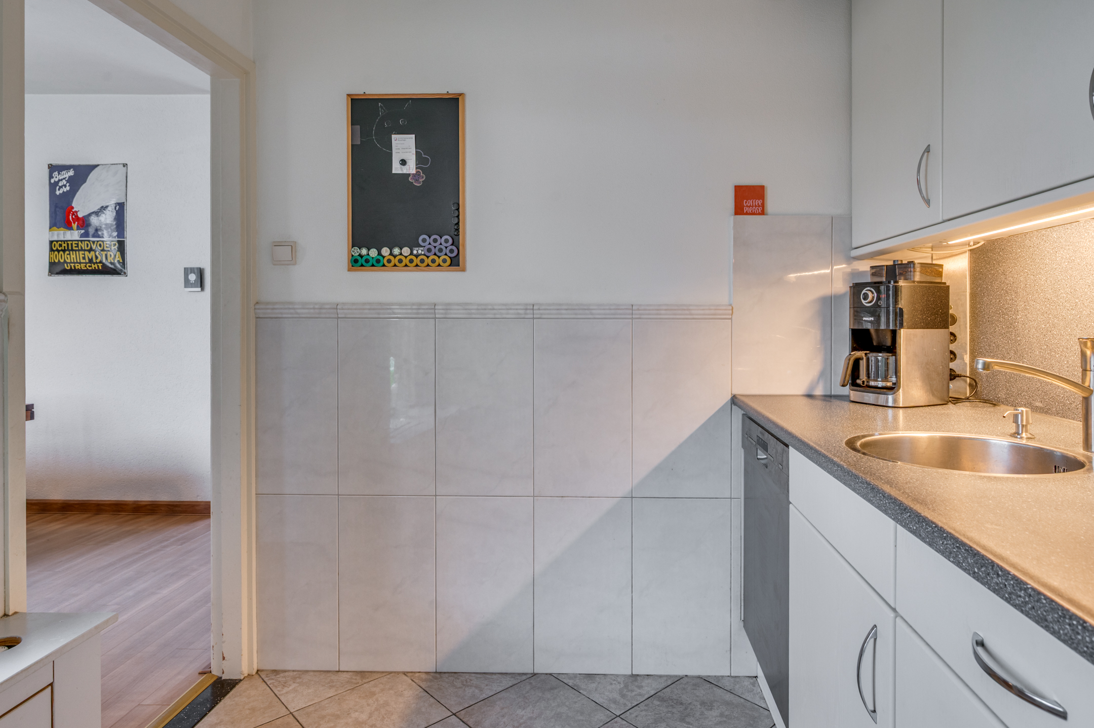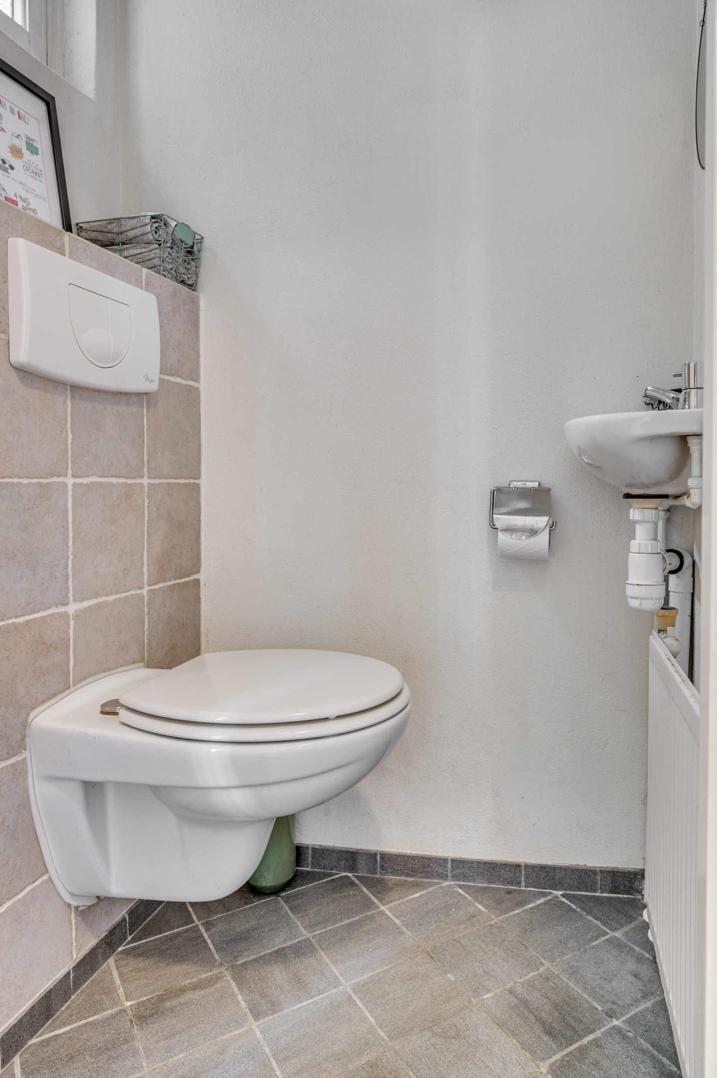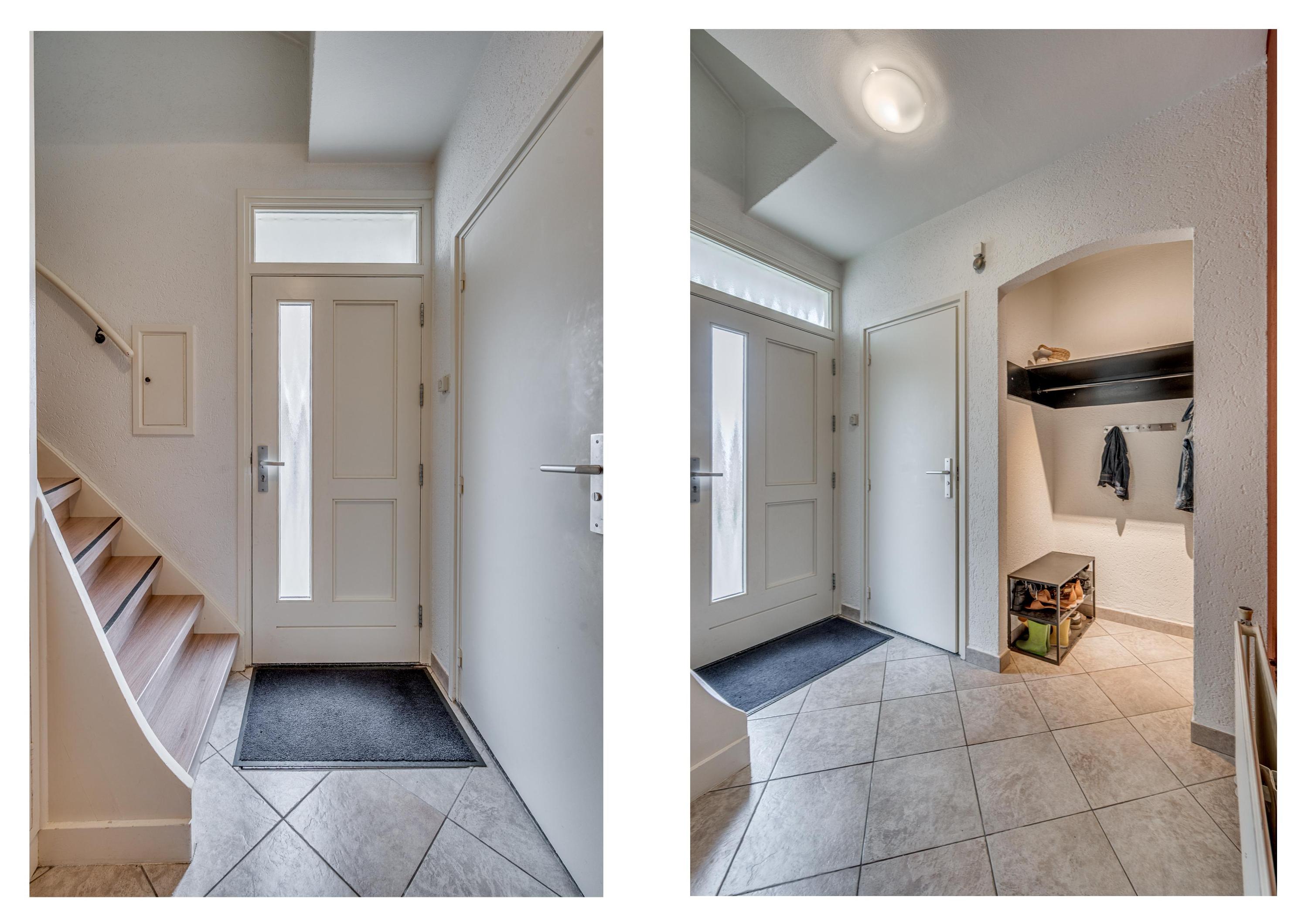 Via de beklinkerde oprit bereikt men de entree van de woning. De ruime hal geeft toegang tot de trapopgang naar de 1e verdieping, meterkast, garderobe, kastruimte, separate toiletruimte en loopdeur naar de woonkamer. De toiletruimte is voorzien van een zwevend toilet, fonteintje, verwarming en buitenraam. De ruime Z-vormige woonkamer is voorzien van een laminaatvloer. Aan de voorzijde is de zithoek gelegen en aan de achterzijde de eetkamer. Vanuit de eetkamer is er toegang tot de keuken. De keuken is voorzien van een 4-pits gasfornuis, afzuigkap, vaatwasmachine, oven en veel opbergruimte. Middels een loopdeur is er toegang tot de berging welke voorzien is van een inbouwkast en een loopdeur naar de overkapping.