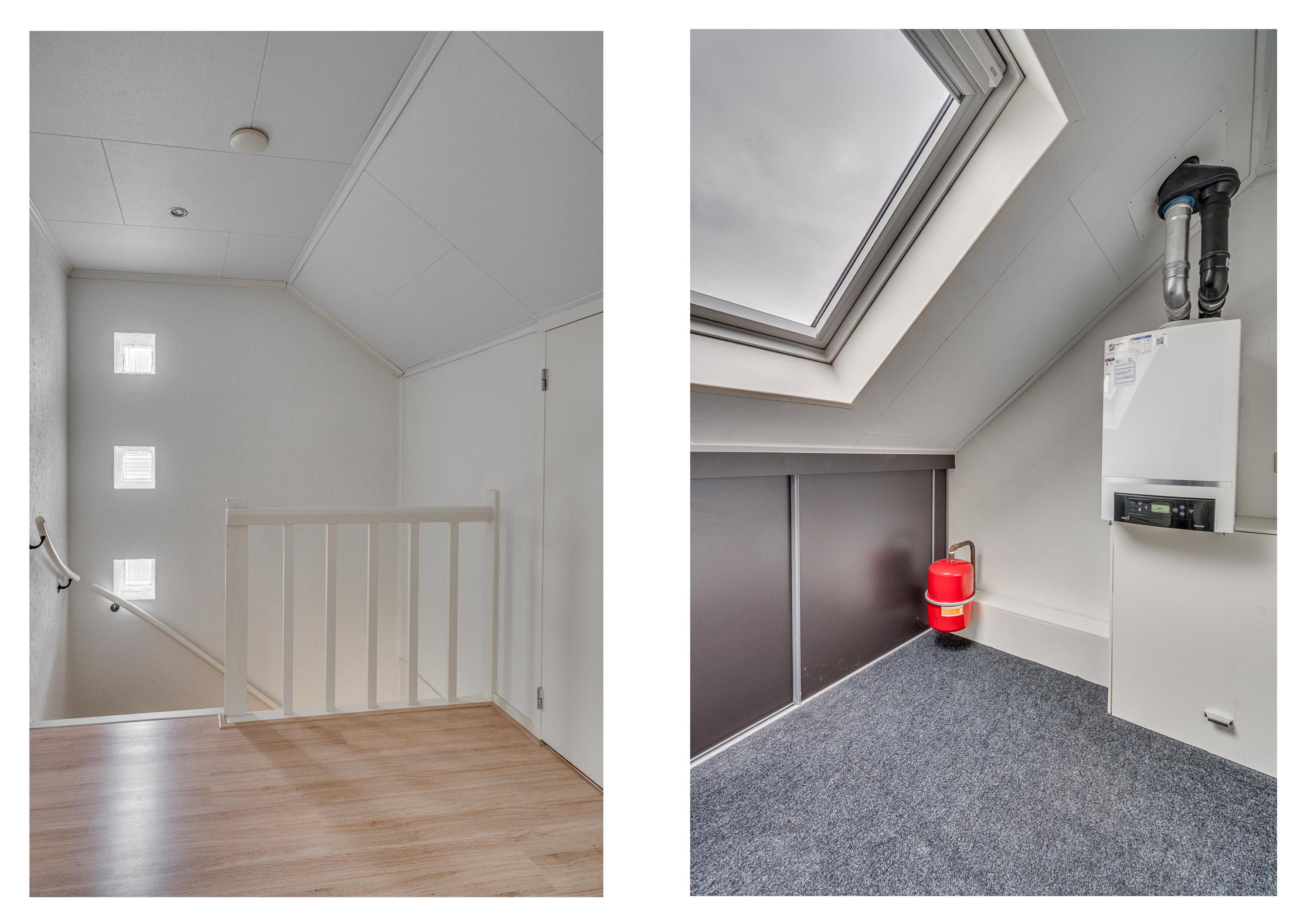 Via de ruime overloop is er toegang tot de slaapkamer, extra kamer en een berging. De ruime slaapkamer beschikt over een dakkapel, muurkast en een laminaatvloer. De kamer welke aan de achterzijde is gelegen beschikt over een dakraam en tevens de CV-ketel (Nefit 2007).