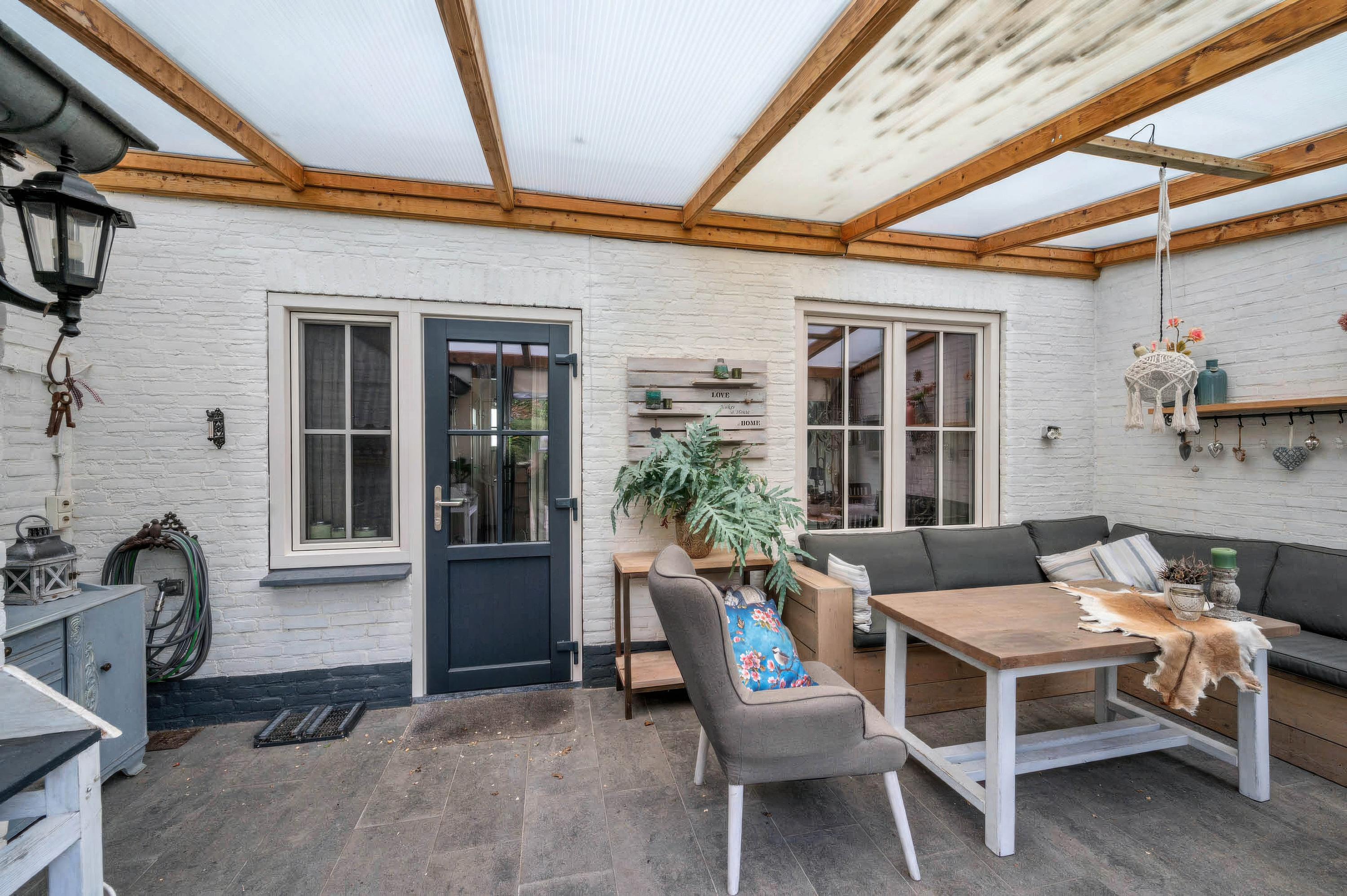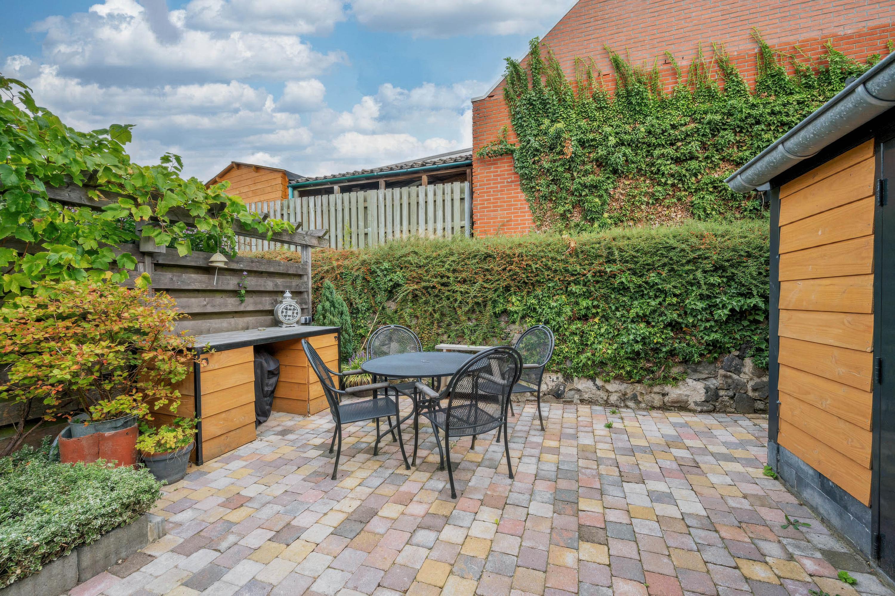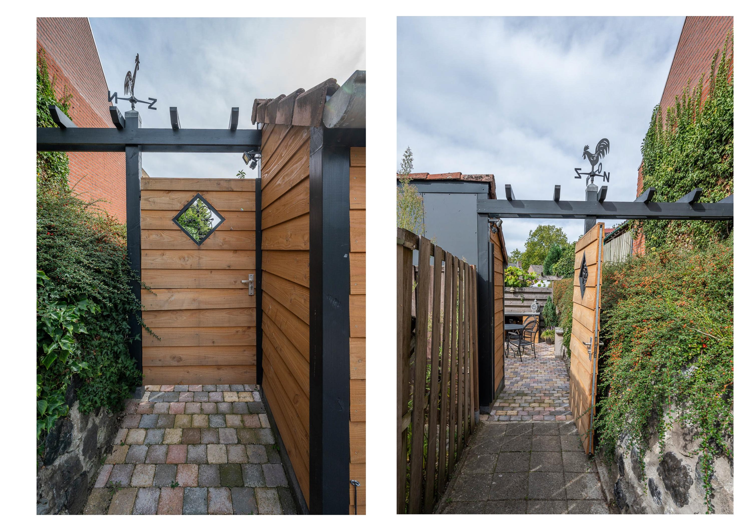 De voortuin is voorzien van groen en deels beklinkerd. Een looppad geeft toegang tot de entree. De achtertuin is onderhoudsvriendelijk ingericht, grotendeels beklinkerd en voorzien van borders met beplanting. Verder zijn er 2 stenen buitenbergingen, is er een ruime overkapping en is er veel privacy in de tuin.