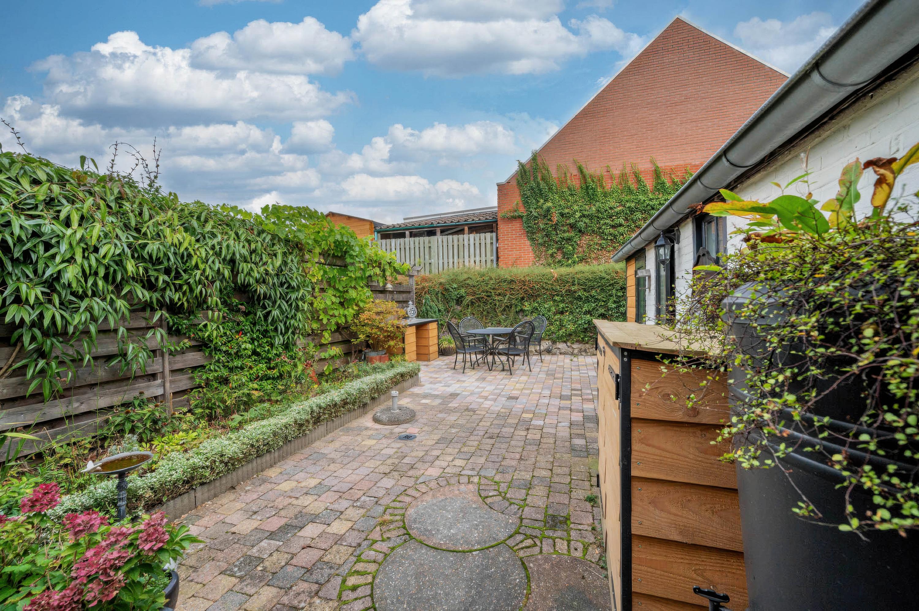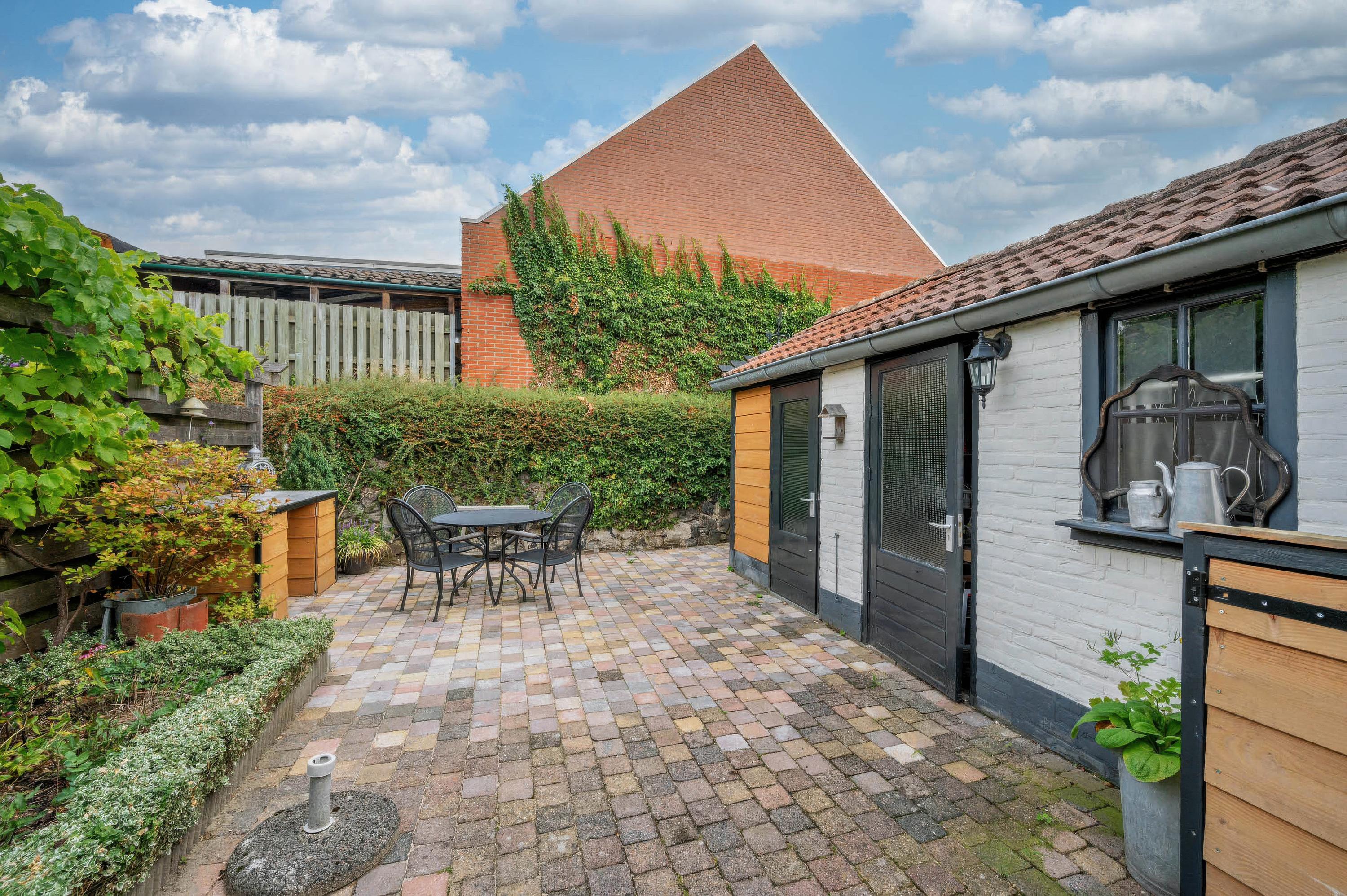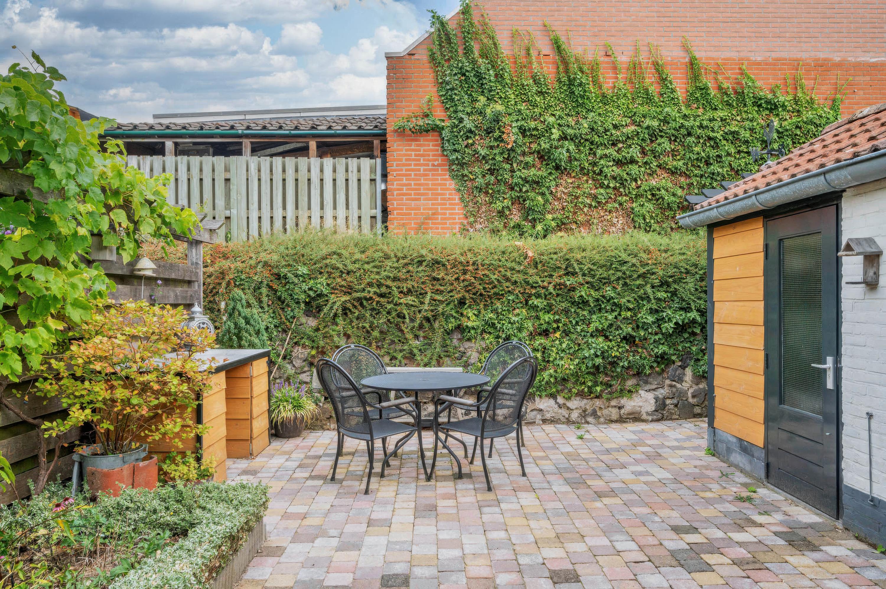 De voortuin is voorzien van groen en deels beklinkerd. Een looppad geeft toegang tot de entree. De achtertuin is onderhoudsvriendelijk ingericht, grotendeels beklinkerd en voorzien van borders met beplanting. Verder zijn er 2 stenen buitenbergingen, is er een ruime overkapping en is er veel privacy in de tuin.