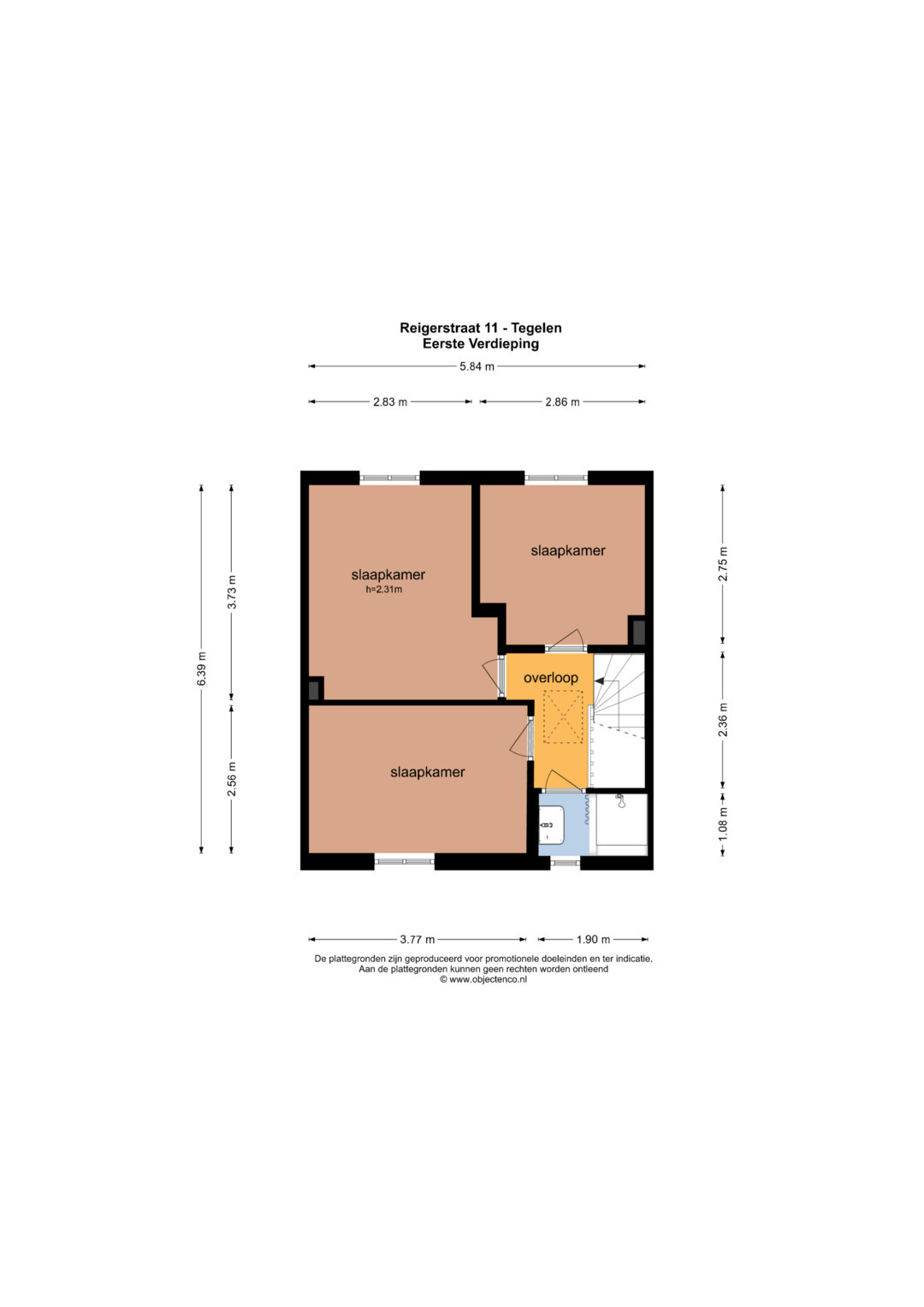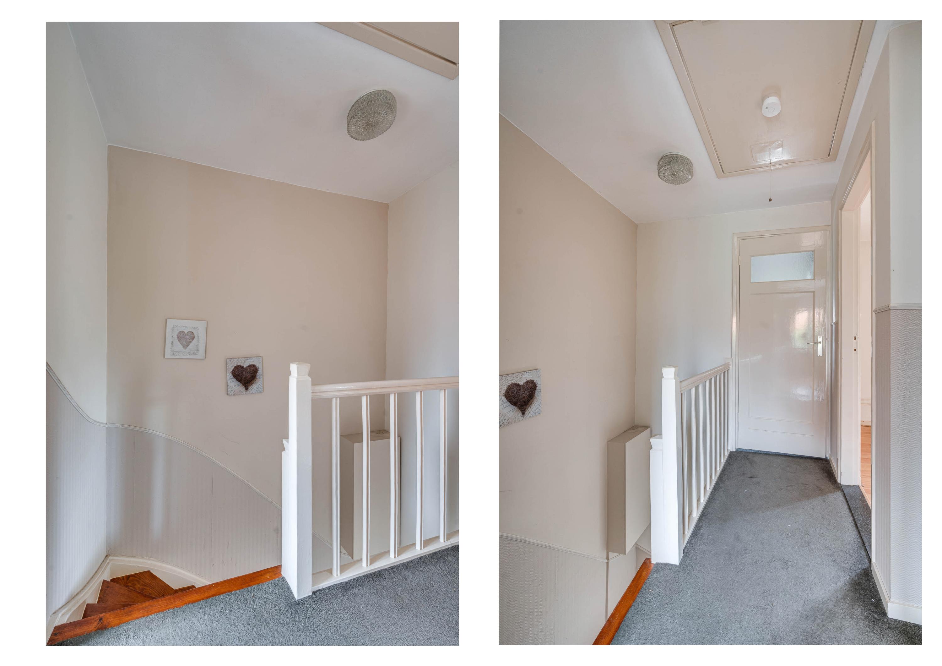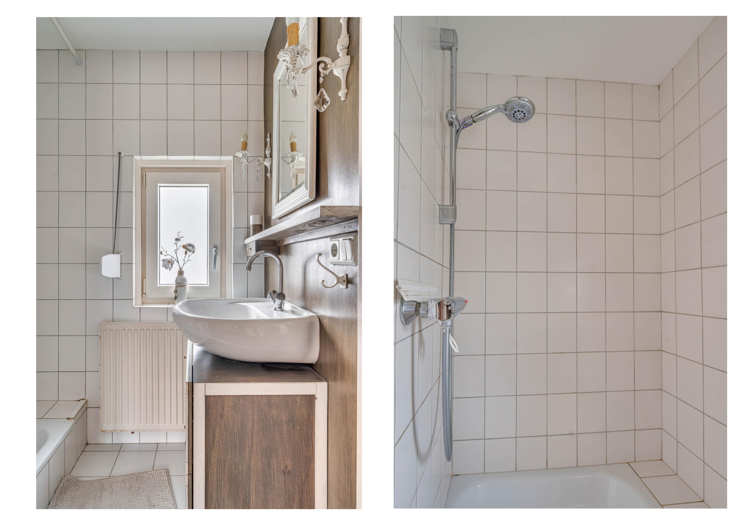 De overloop geeft toegang tot 3 slaapkamers, de badkamer en vlizotrap naar de zolder. Alle 3 de slaapkamers zijn voorzien van rolluiken en een laminaatvloer. De badkamer is functioneel ingericht met een douche, wastafel met meubel en buitenraam. De badkamer is geheel betegeld en voorzien van een buitenraam.