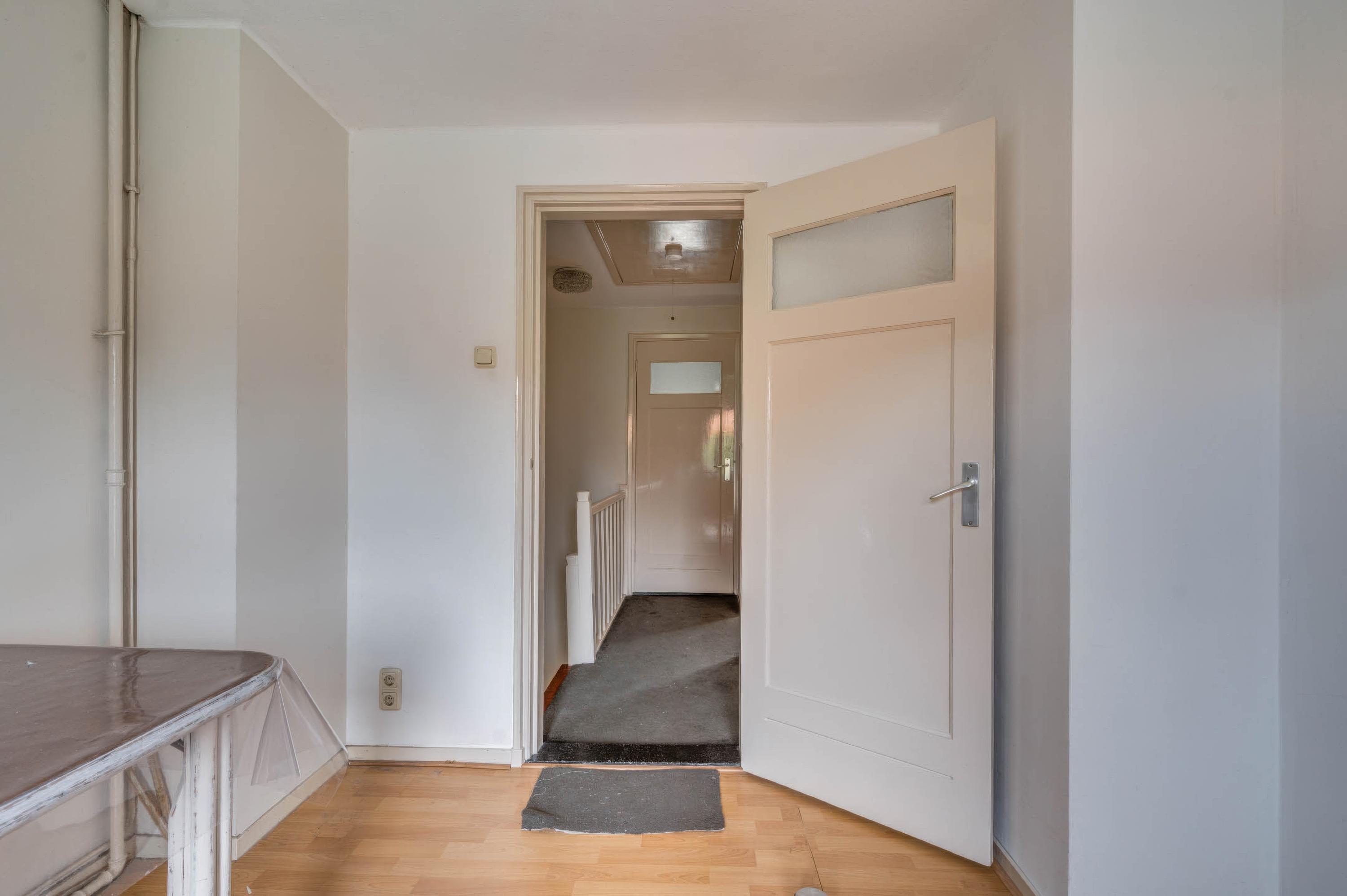 Middels een beklinkerd looppad is de entree van de woning te bereiken. De hal geeft toegang tot de toiletruimte, trapopgang naar de verdieping, trapopgang naar de kelder en loopdeur naar de keuken.