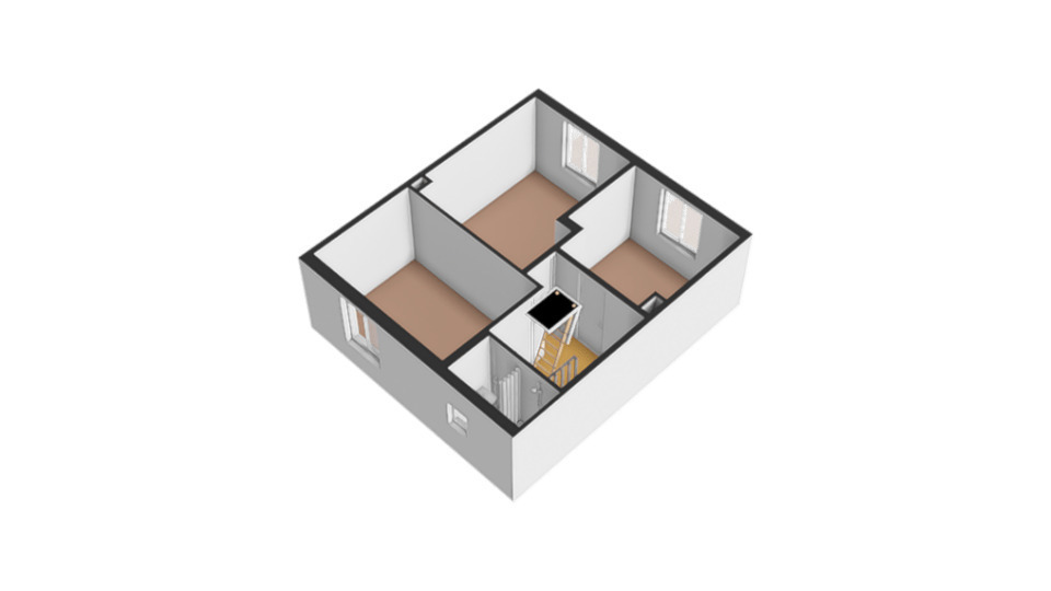 Een vlizotrap geeft toegang tot de zolderverdieping. Hier is de CV-ketel gepositioneerd. Het is mogelijk een vaste trap te realiseren.