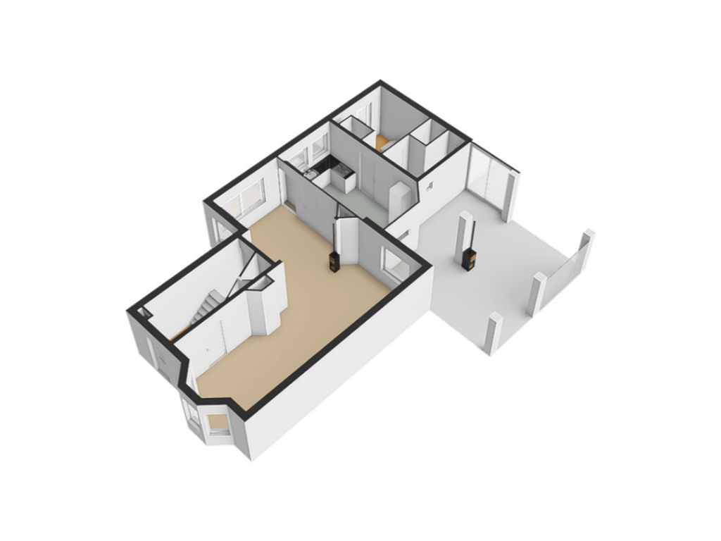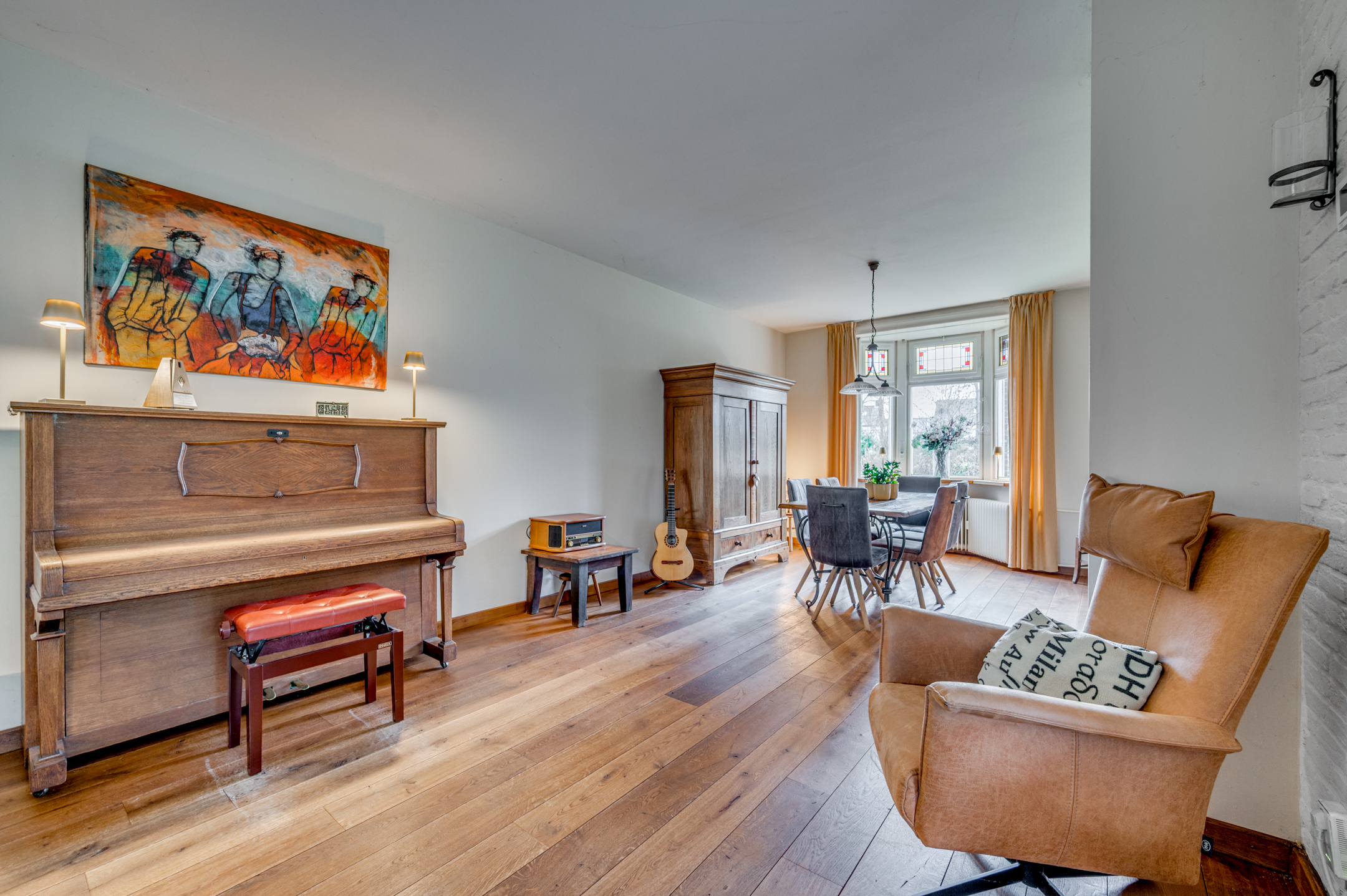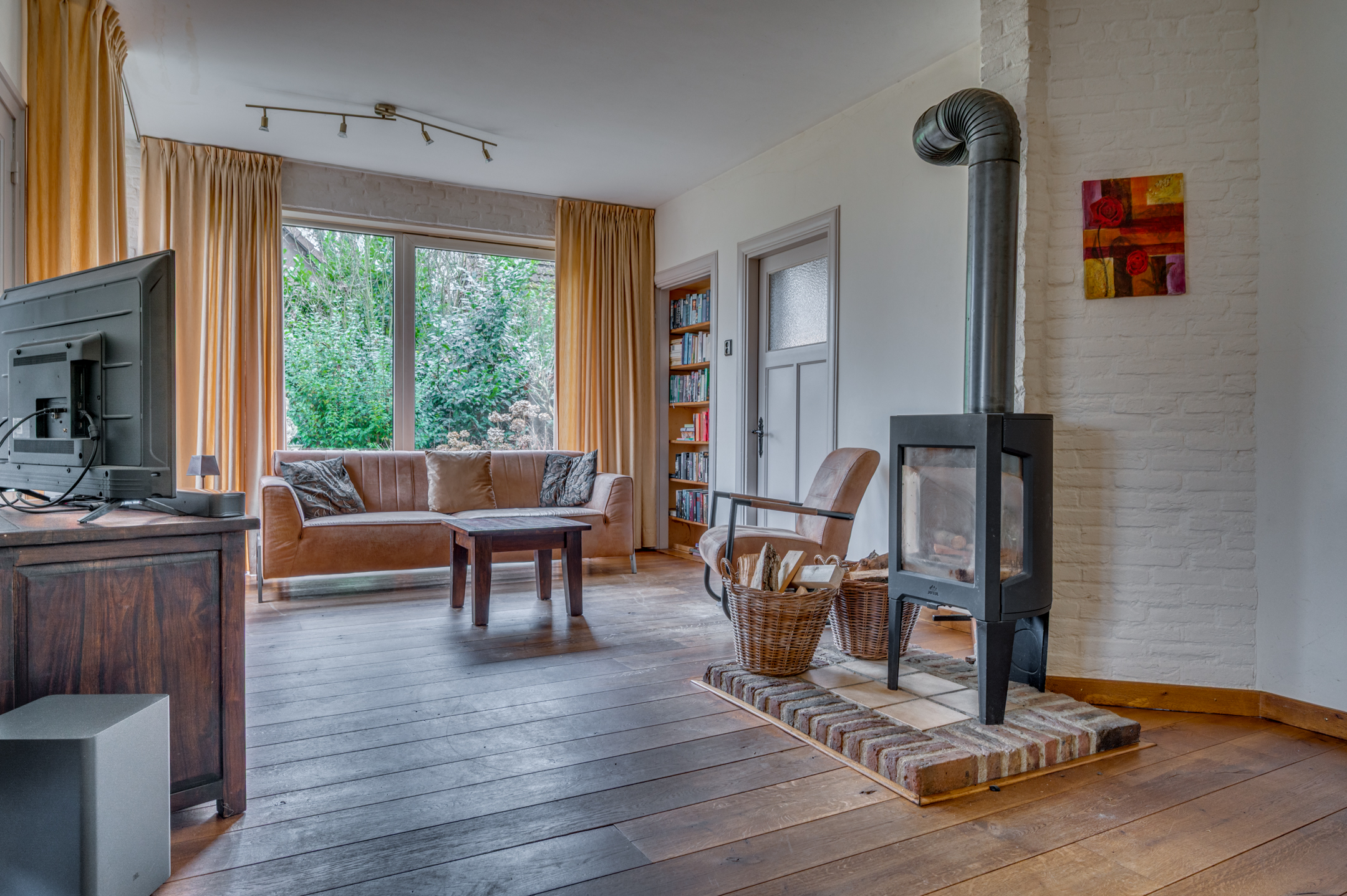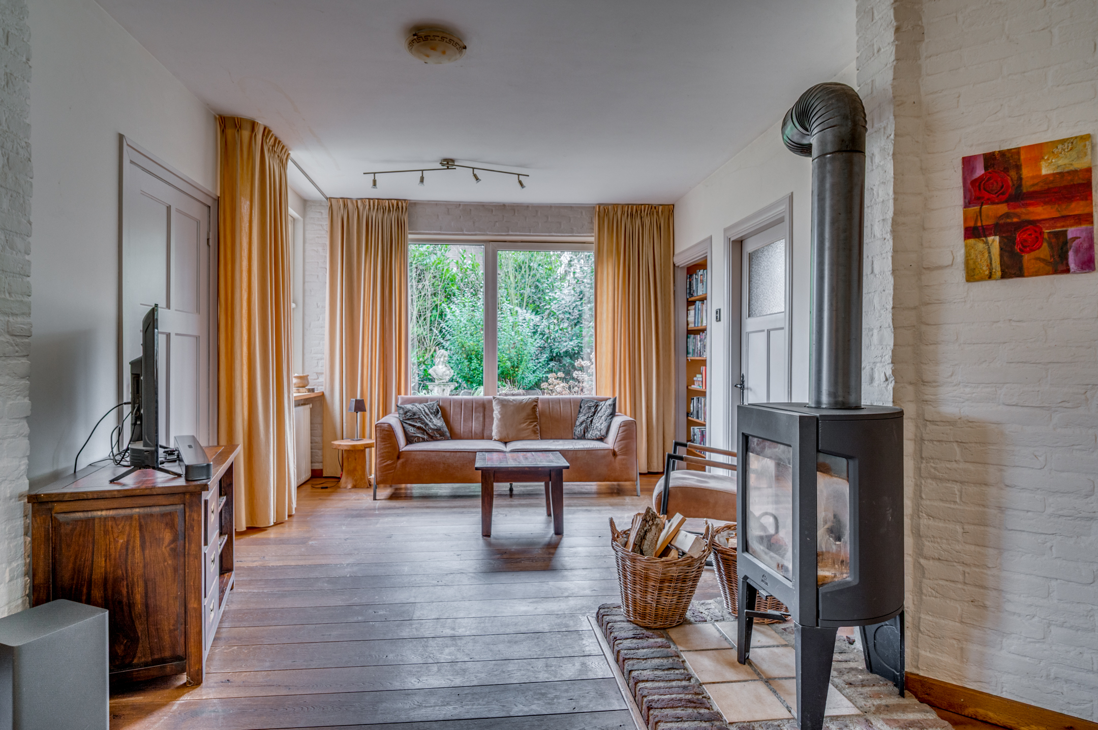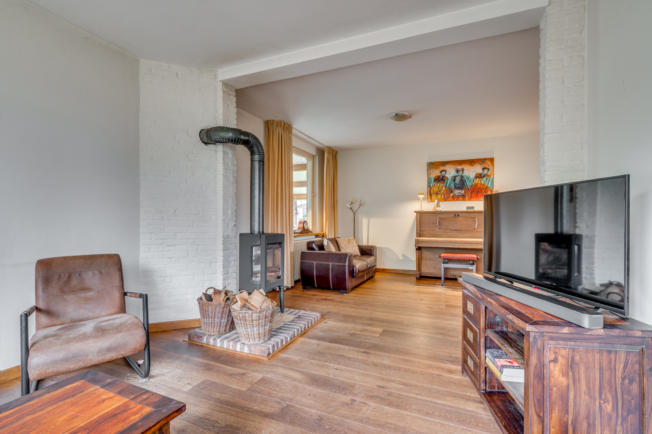 Een looppad van kiezel geeft toegang tot de entree van de woning. De ruime ontvangsthal geeft toegang tot de meterkast, woonkamer en trapopgang naar de verdieping. De woon/ eetkamer is ruim van opzet en voorzien van een eikenhouten plankenvloer. Aan de achterzijde is een houtkachel aanwezig, Middels een loopdeur in de woonkamer is er toegang tot de kelder en woonkeuken. De keuken is ruim van opzet en voorzien van een 5-pits gasfornuis, afzuigkap, spoelbak, vaatwasmachine, koelkast en diepvries. Vanuit de keuken is er toegang tot de overkapping en een loopdeur naar de 2e hal welke aan de achterzijde van de woning is gelegen. De hal geeft toegang tot de separate toiletruimte, badkamer, trapopgang en kastruimte waar de witgoedaansluitingen zijn geplaatst. De toiletruimte is deels betegeld en voorzien van een zwevend toilet met fonteintje. De badkamer is voorzien van een inloopdouche, wastafel met meubel, designradiator en mechanische ventilatie.