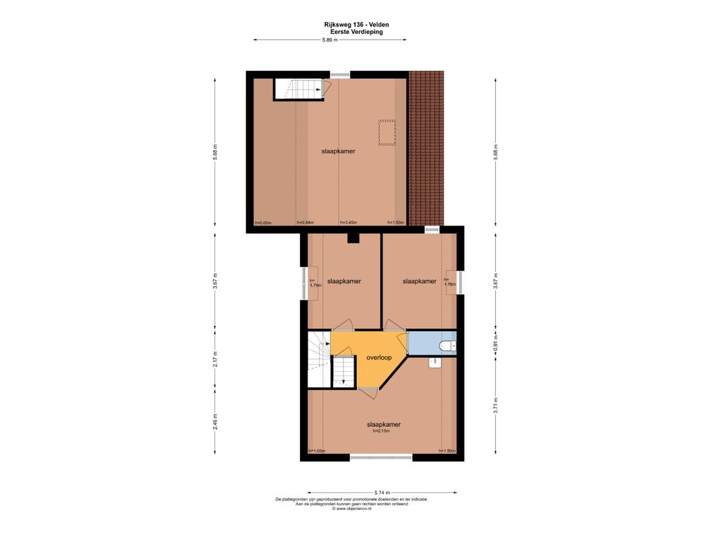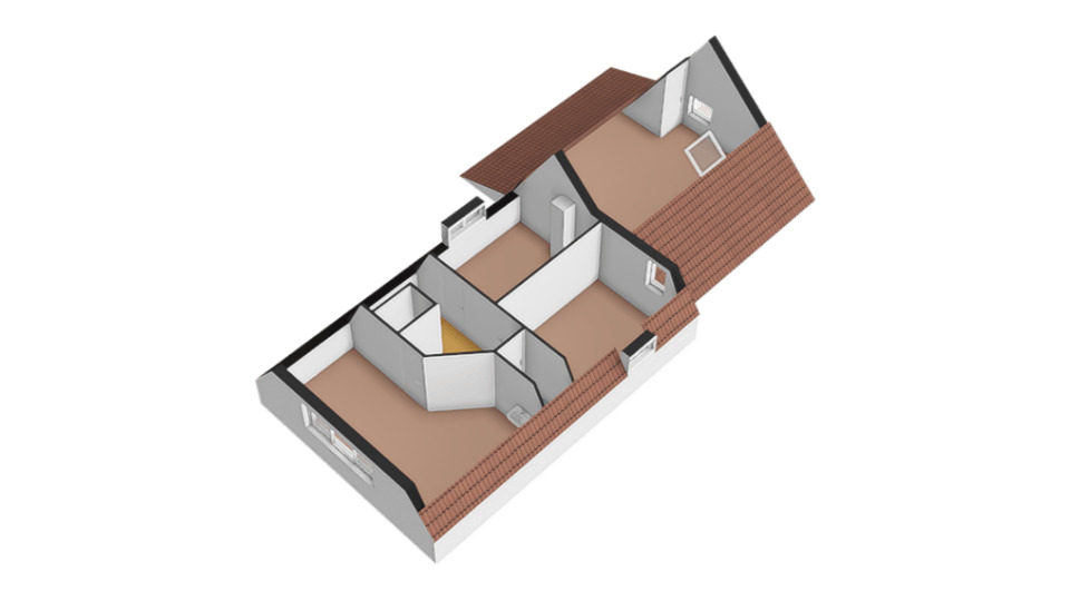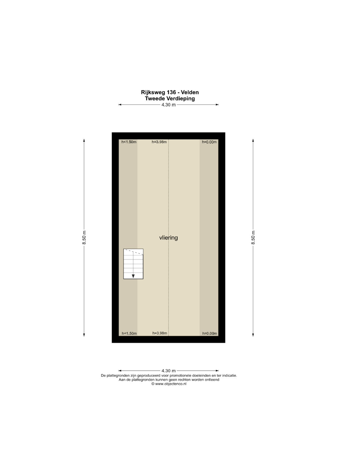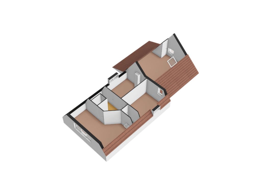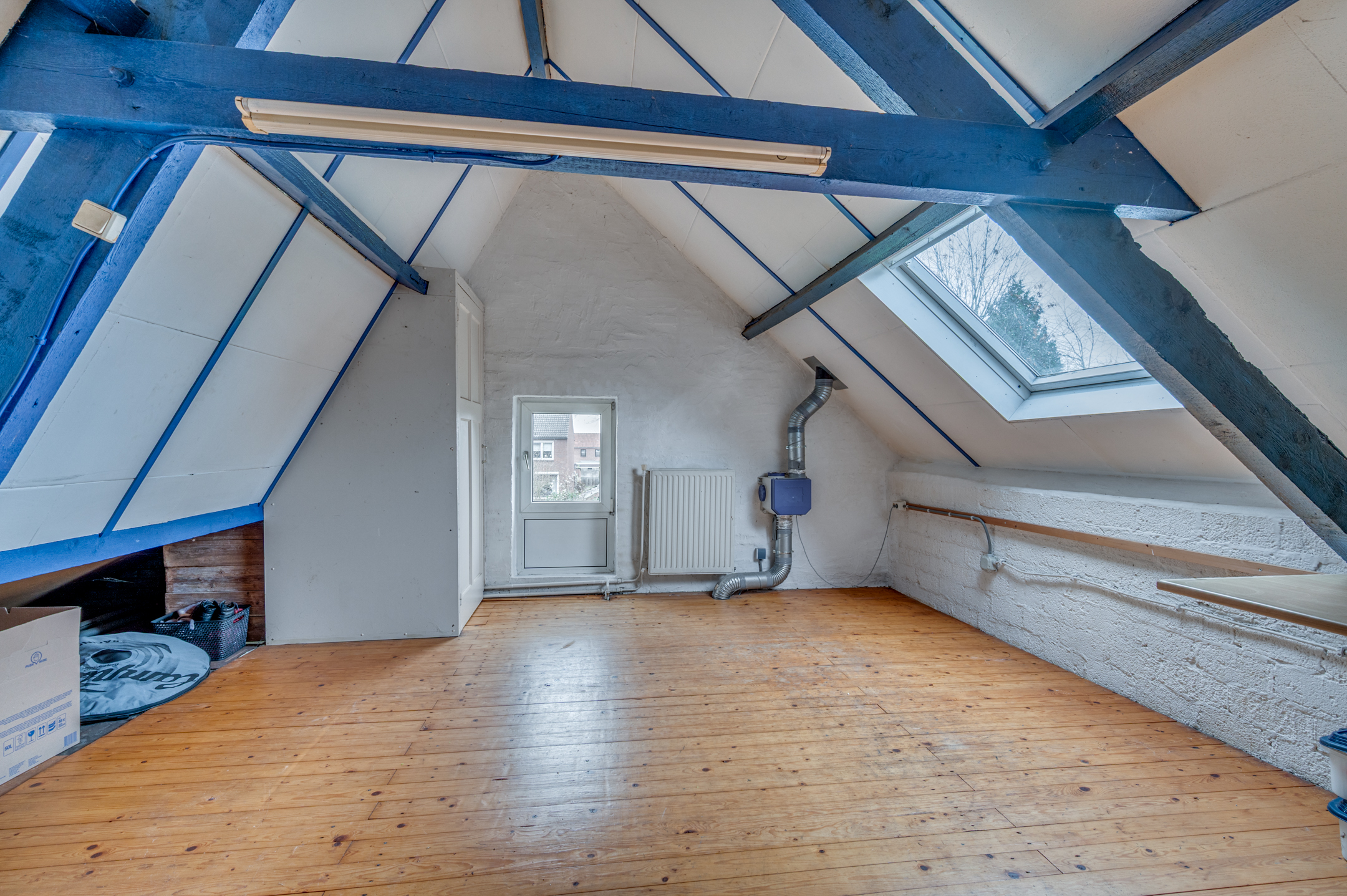 De verdieping is ca. 23m² groot en dient momenteel als opslagruimte/zolder.
