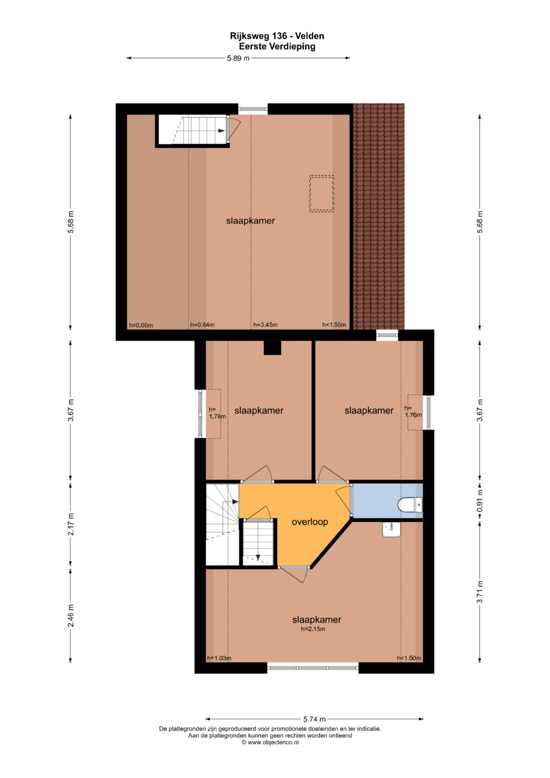 De slaapkamers zijn allen voorzien van vloerbedekking en ca. 10,5m², 10,5m² en 18,5m² groot.