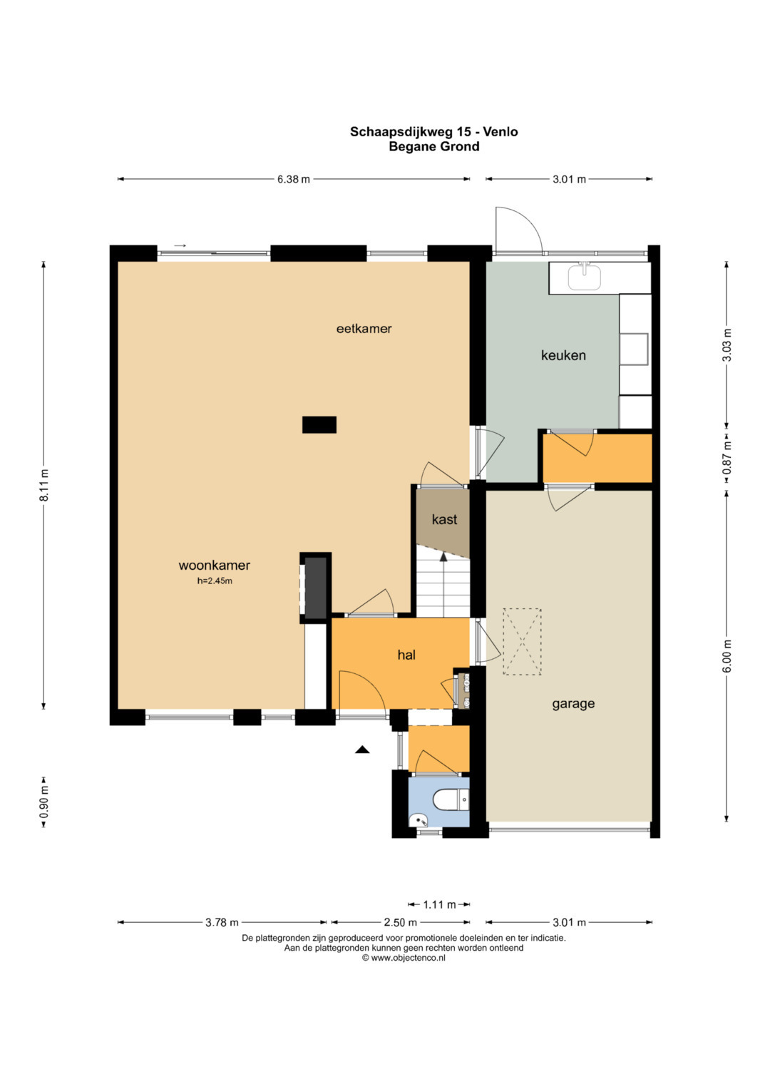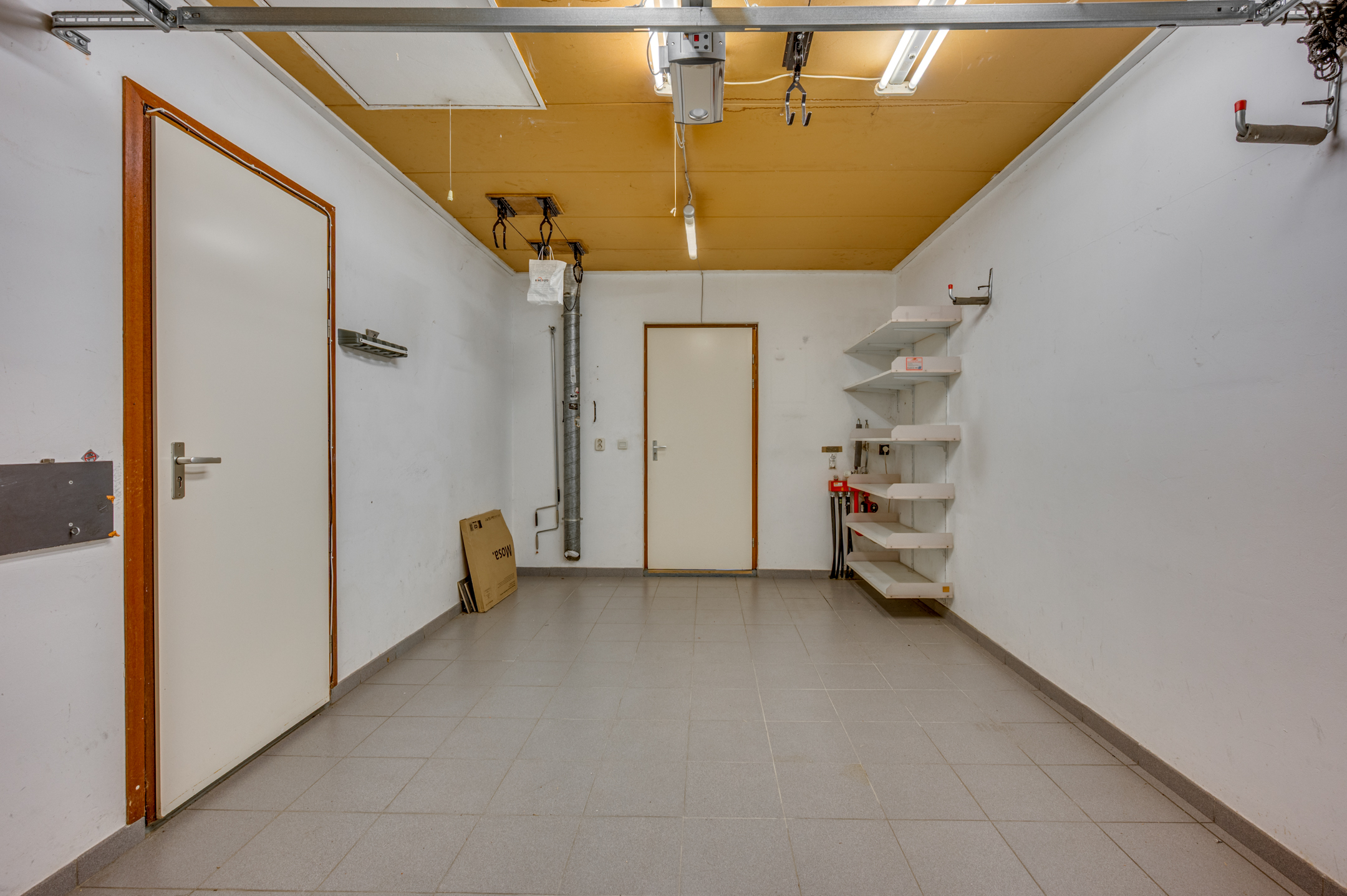De woning beschikt over een garage van 6*3m. De garage beschikt over een elektrische poort en beschikt verder over een vliering welke middels de vlizotrap te bereiken is.