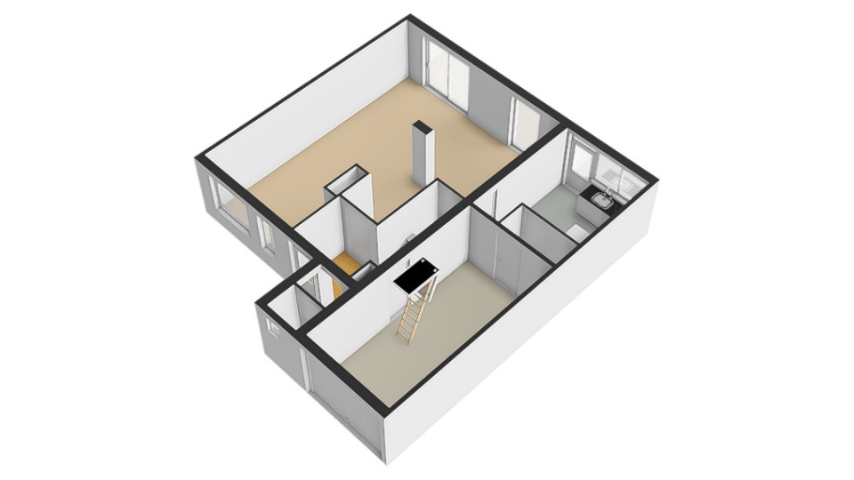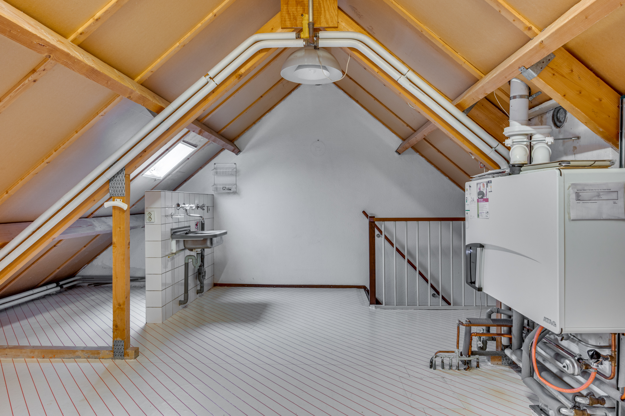 Middels een vaste trap is er toegang tot de 2e verdieping. Hier zijn de witgoedaansluitingen en de CV-ketel te vinden. Het is gemakkelijk hier een ruime 4e slaapkamer te realiseren.