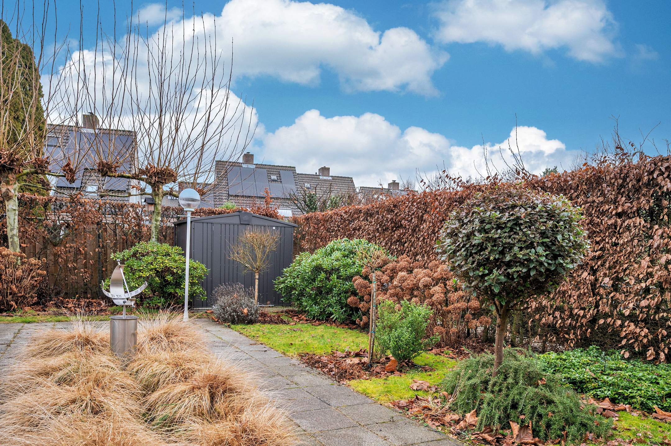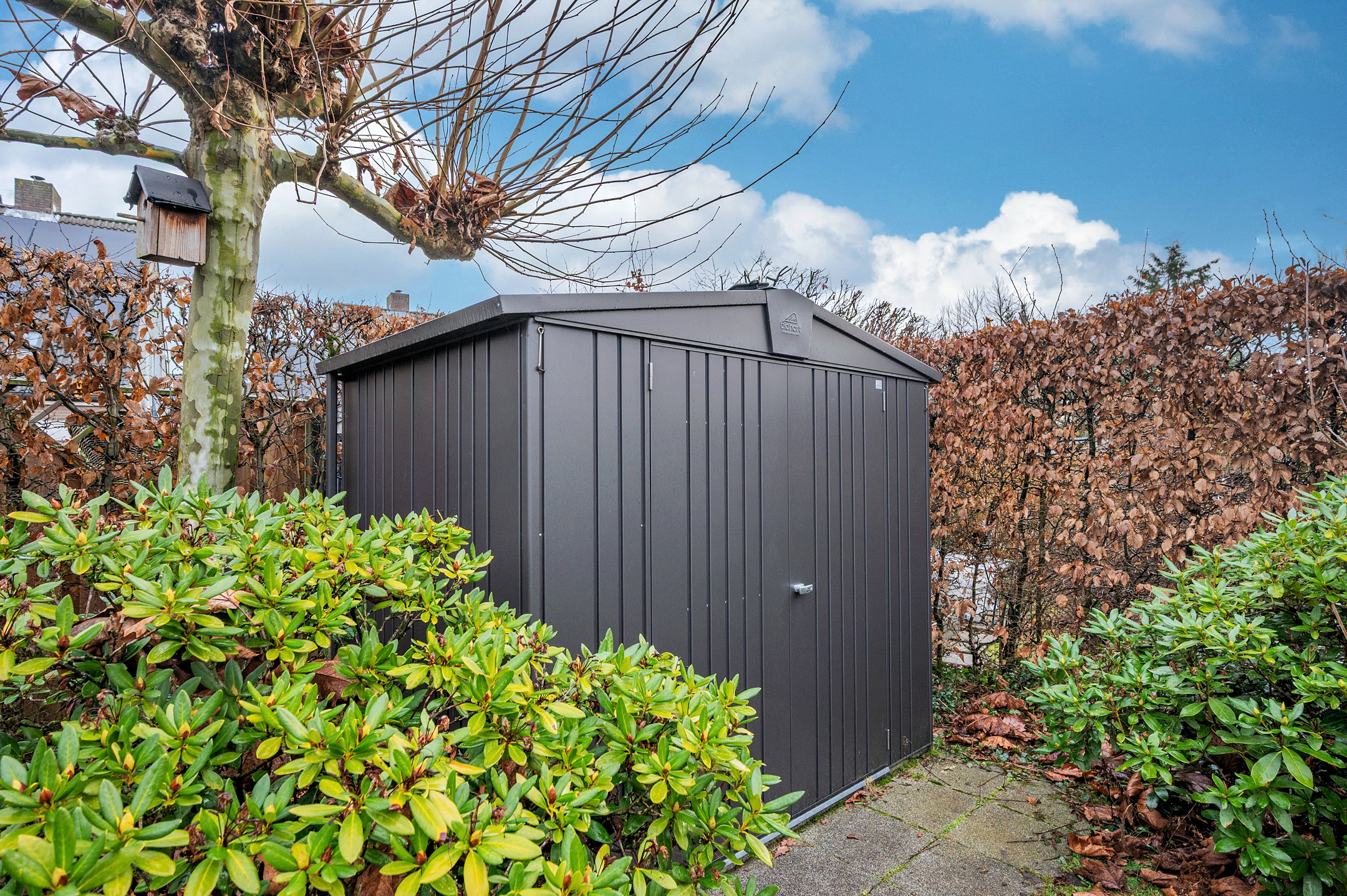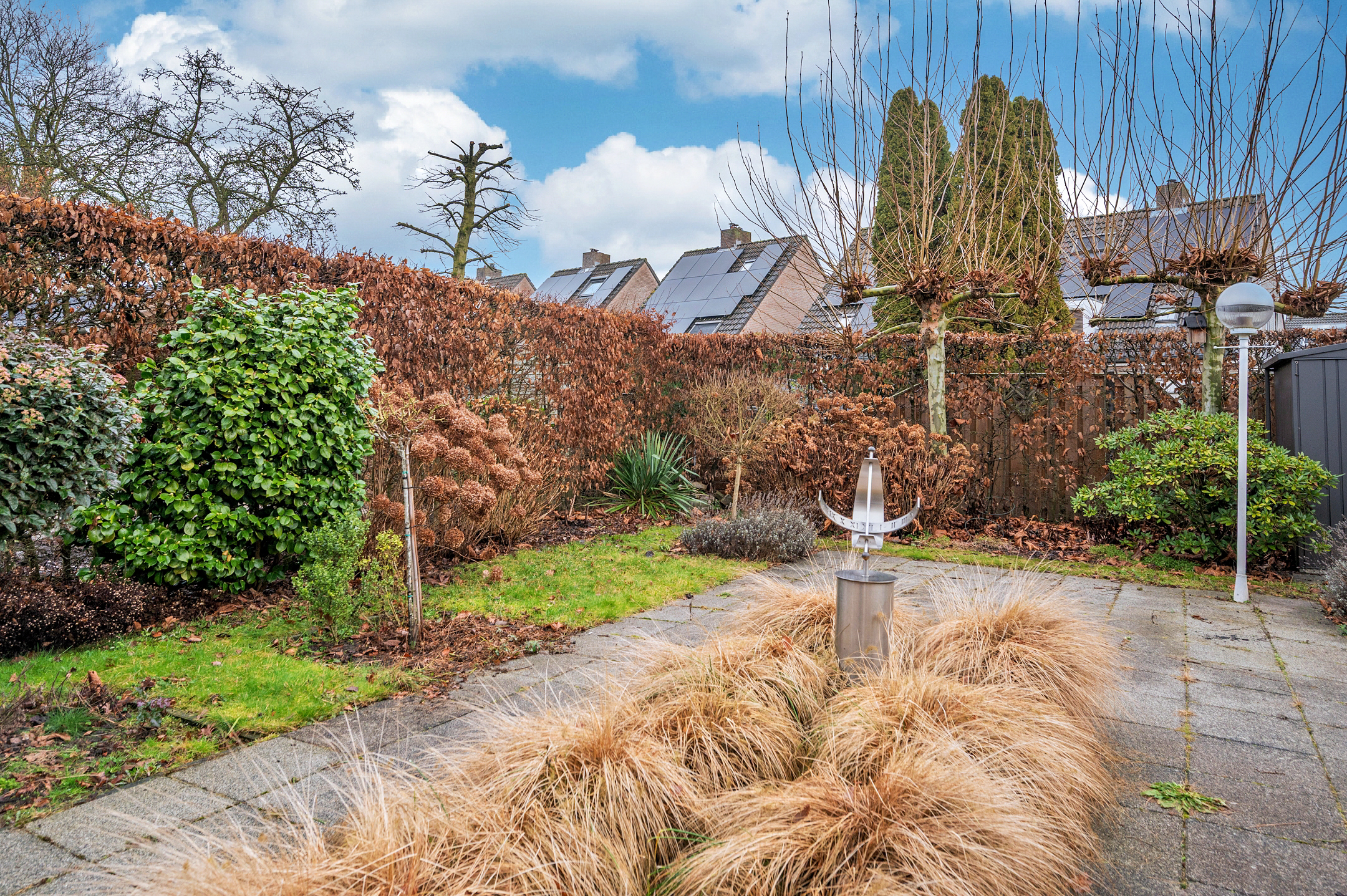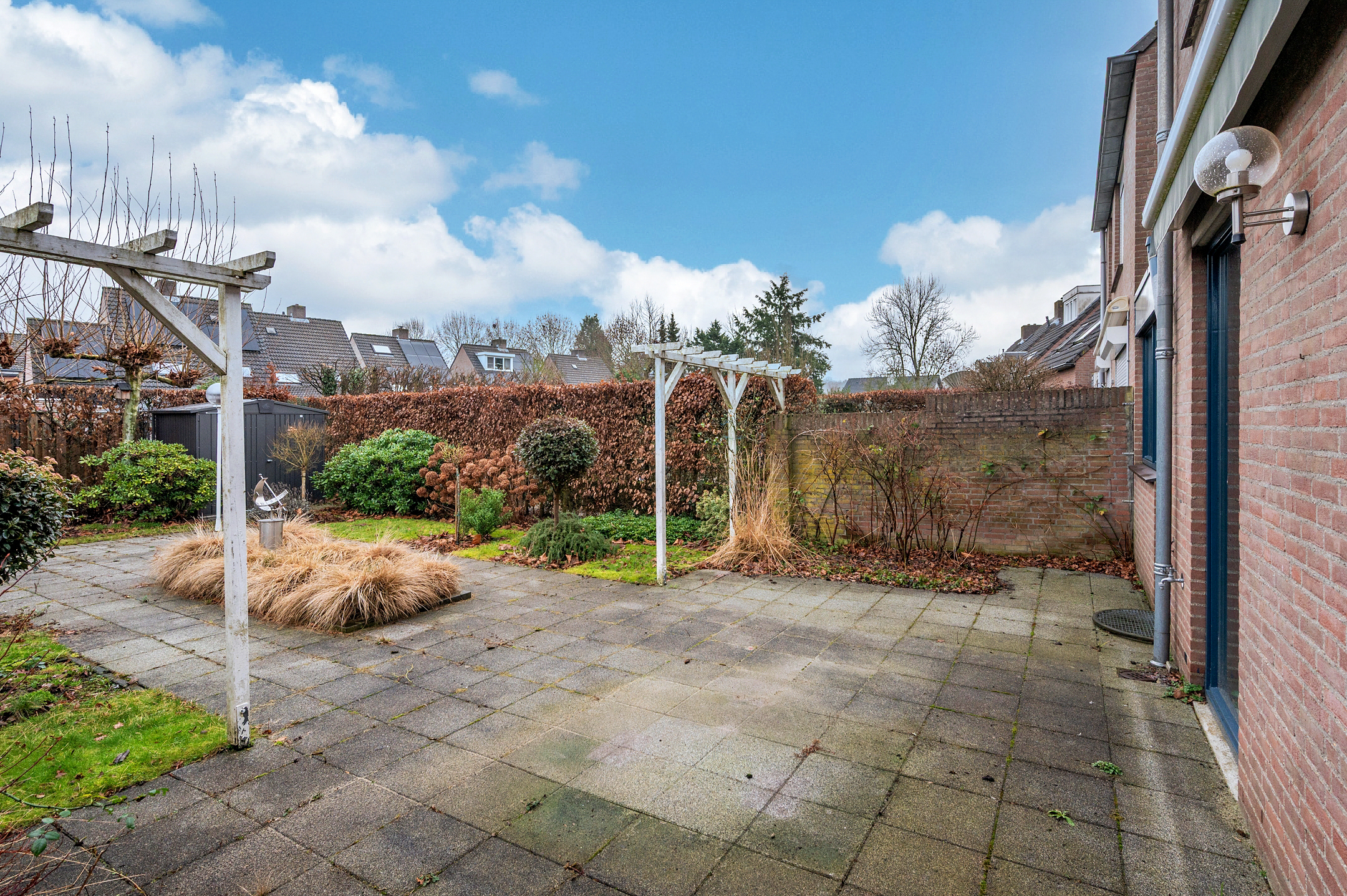 De tuin is geheel omheind en ruim van opzet. De achtertuin is op het noordoosten gelegen en heeft verder de beschikking over een zonnescherm.