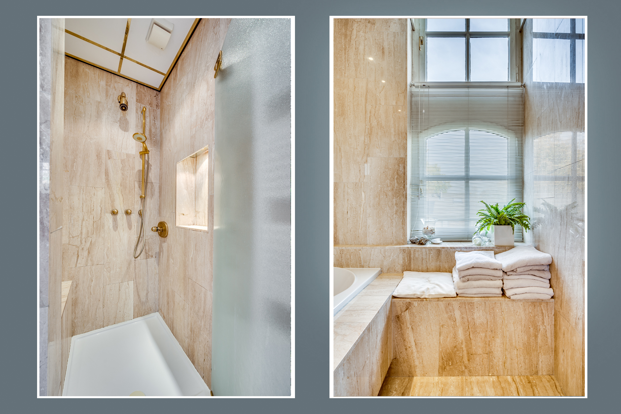 De woonkamer biedt hoge plafonds en een open verbinding met een verhoogd zit- of werkdeel. Daarnaast is er een tweede woon- of werkkamer. Ideaal voor ontvangsten of een rustige kantoorruimte.