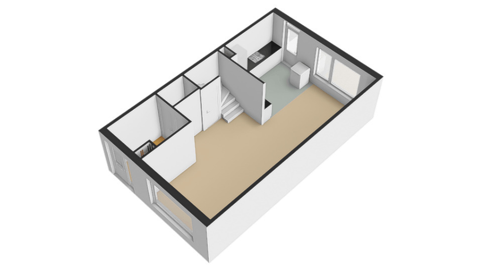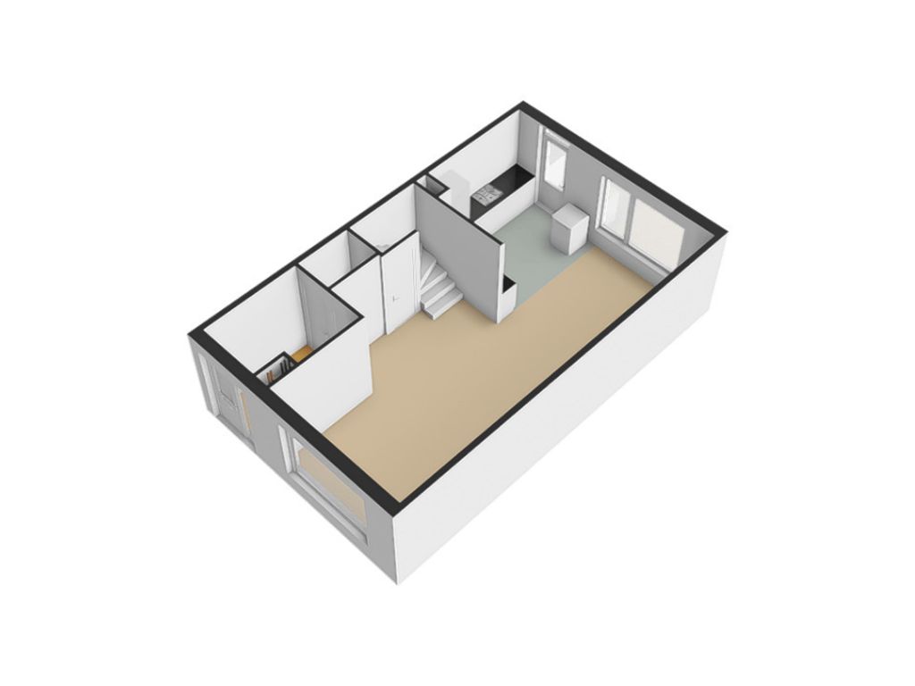 Middels een betegeld looppad in de voortuin is de entree van de woning te bereiken. De ontvangsthal met garderobe geeft toegang tot de meterkast, separate toiletruimte en woonkamer. De halfbetegelde toiletruimte is voorzien van een zwevend toilet en mechanische ventilatie. Middels een loopdeur is er toegang tot de woonkamer. De woonkamer is ingedeeld in een eet en zitgedeelte. Aan de achterzijde is de keuken te vinden. De keuken is voorzien van een 4-pits gasfornuis, afzuigkap, heteluchtoven, koelkast en spoelbak. Middels een loopdeur is er toegang tot de tuin. Vanuit de woonkamer is de trap naar de verdieping te bereiken, tevens is er een trapkast aanwezig.