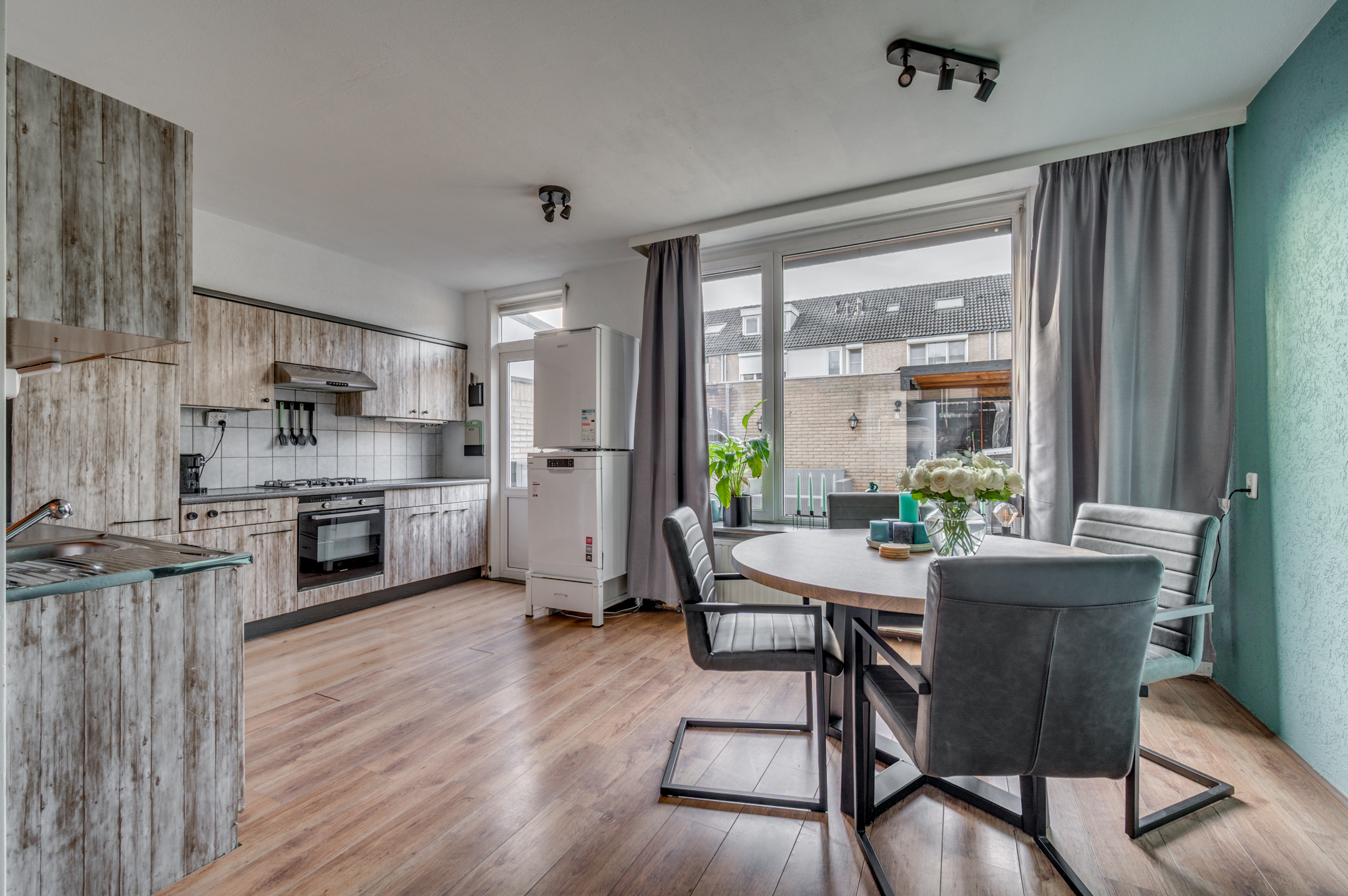 Zeer goed onderhouden tussenwoning gelegen in een autoluwe straat. Deze woning beschikt o.a. over een ruime doorzonwoonkamer, halfopen keuken, 4 slaapkamers en een tuin gelegen op het westen. Deze woning is omgeven van lagere en middelbare scholen, zwembad, park en te voet bereikbaar supermarkt. Op enkele fietsminuten van het centrum van Blerick gelegen. Het centrum van Venlo alsmede de A67 en A73 zijn in enkele autominuten te bereiken.