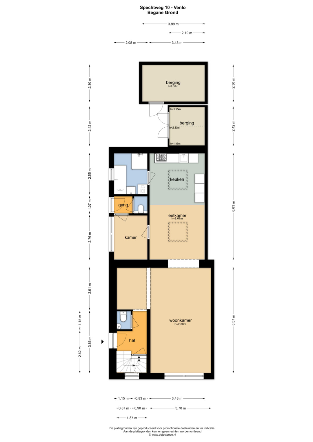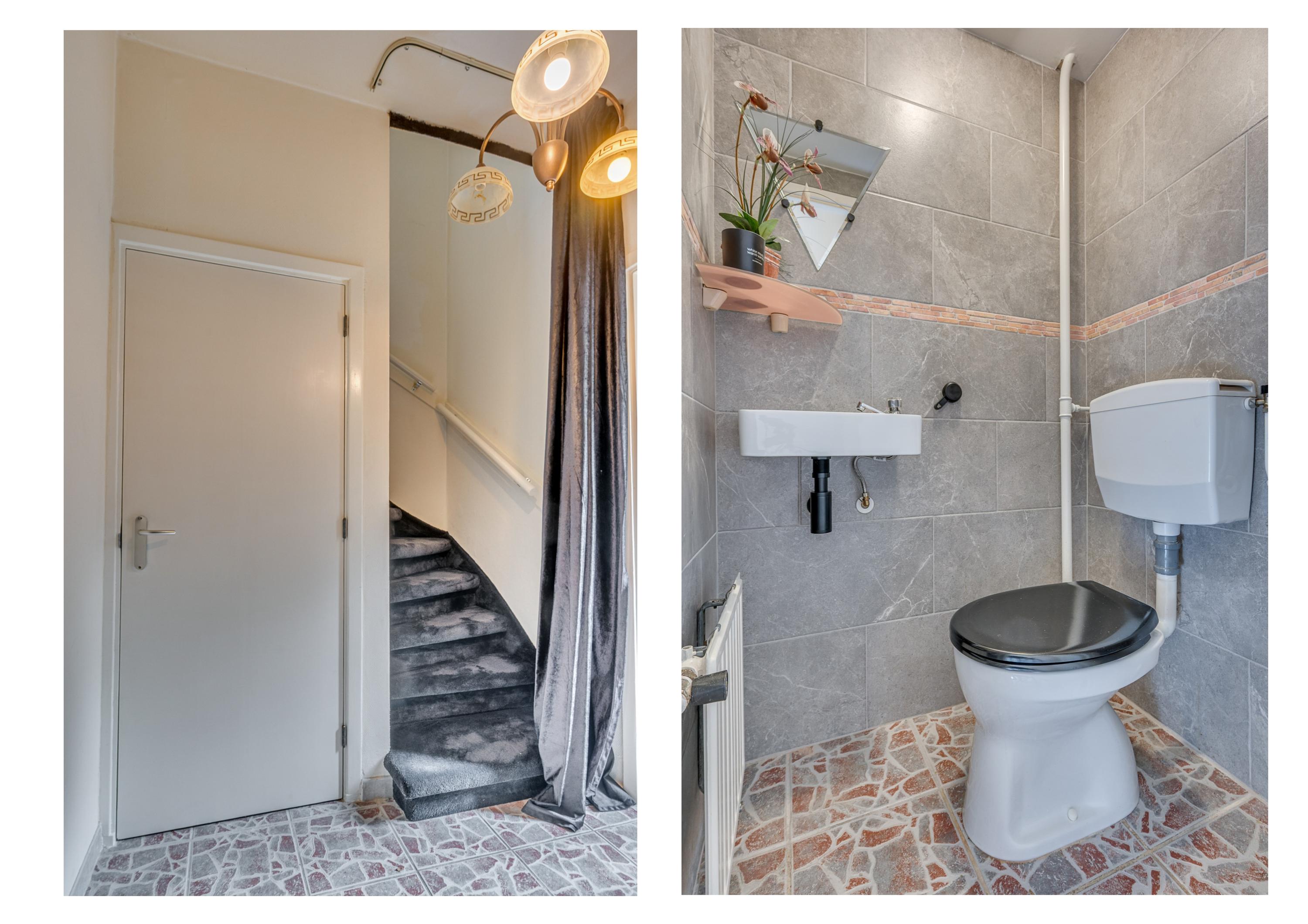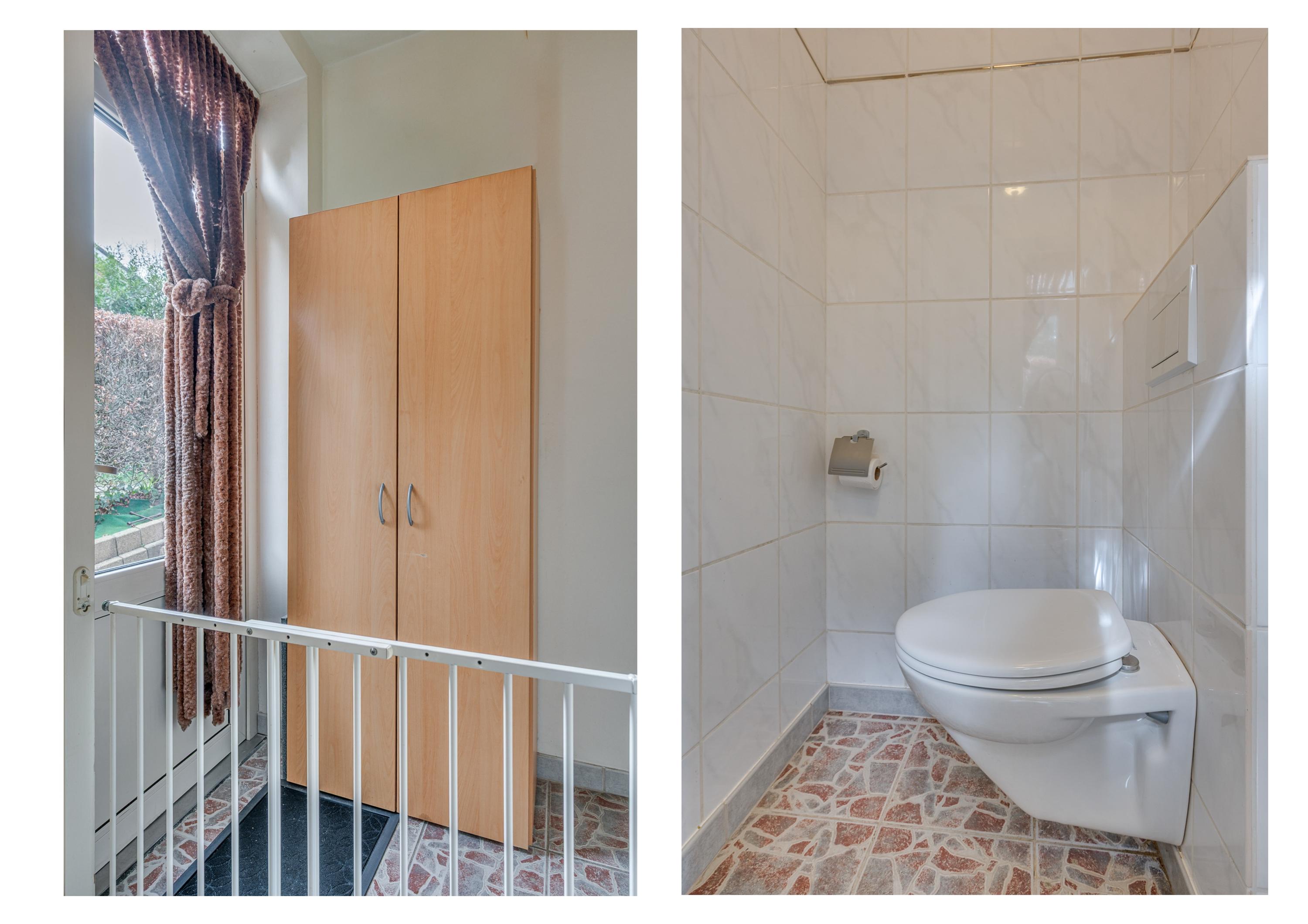 Middels de eigen oprit is de entree van de woning te betreden. De ontvangsthal geeft toegang tot de trapopgang naar de 1e verdieping, trapgang naar de kelder, toiletruimte en woonkamer. De geheel betegelde toiletruimte is voorzien van een toilet, fonteintje en verwarming. De woonkamer is ruim van opzet en geniet veel lichtinval. Aan de voorzijde is de woonkamer gepositioneerd en aan de achterzijde de eetkamer met open keuken. De keuken is voorzien van een 5-pits gasfornuis, afzuigkap, heteluchtoven, vaatwasmachine, magnetron, koffieapparaat en koelkast. Vanuit de woonkamer is er toegang tot een kamer welke voor meerdere doeleinden te gebruiken is. Vanuit deze kamer kom je in de 2e hal welke tevens toegang geeft tot de 2e toiletruimte op de begane grond. De toiletruimte is voorzien van een zwevend toilet. Middels een loopdeur in de keuken is er toegang tot de badkamer. De badkamer is voorzien van een zwevend toilet, douche, ligbad met douchefaciliteit, wastafel, de witgoedaansluitingen en een buitenraam.