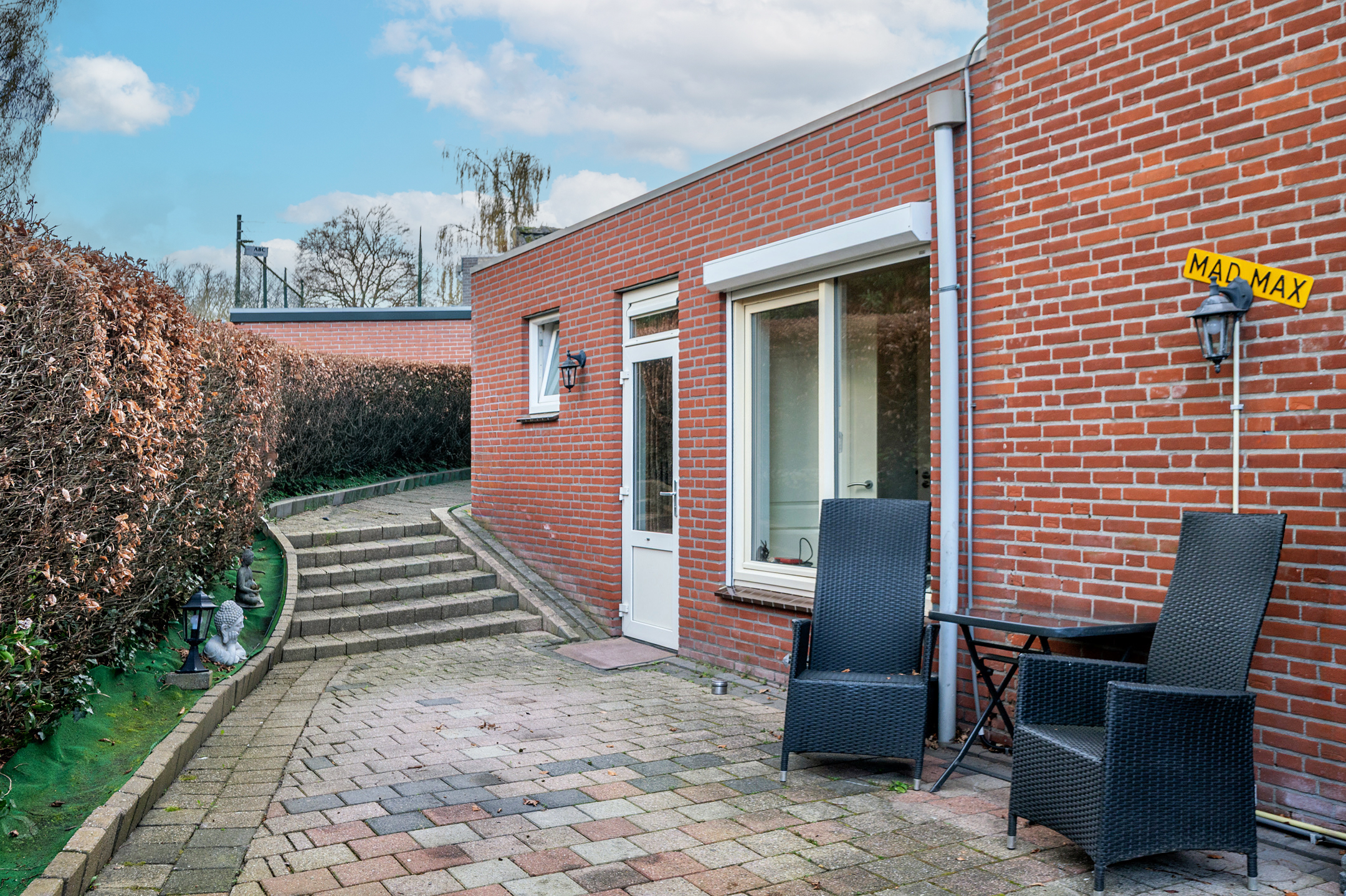 De zijtuin is onderhoudsvriendelijk en geniet veel privacy. Tevens zijn er 2 bergingen aan de achterzijde gelegen. Het is mogelijk meerdere auto's op eigen grond te parkeren.