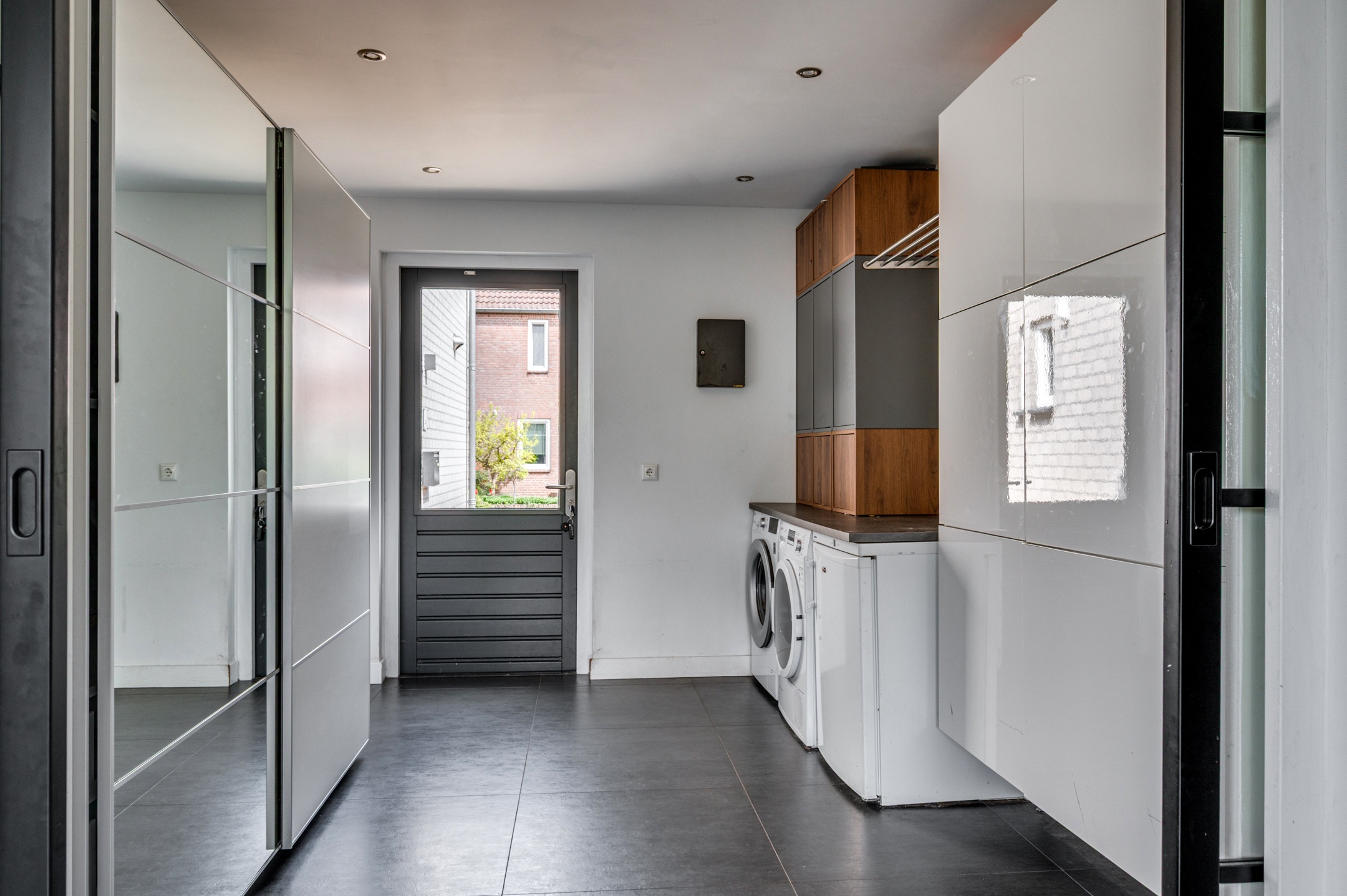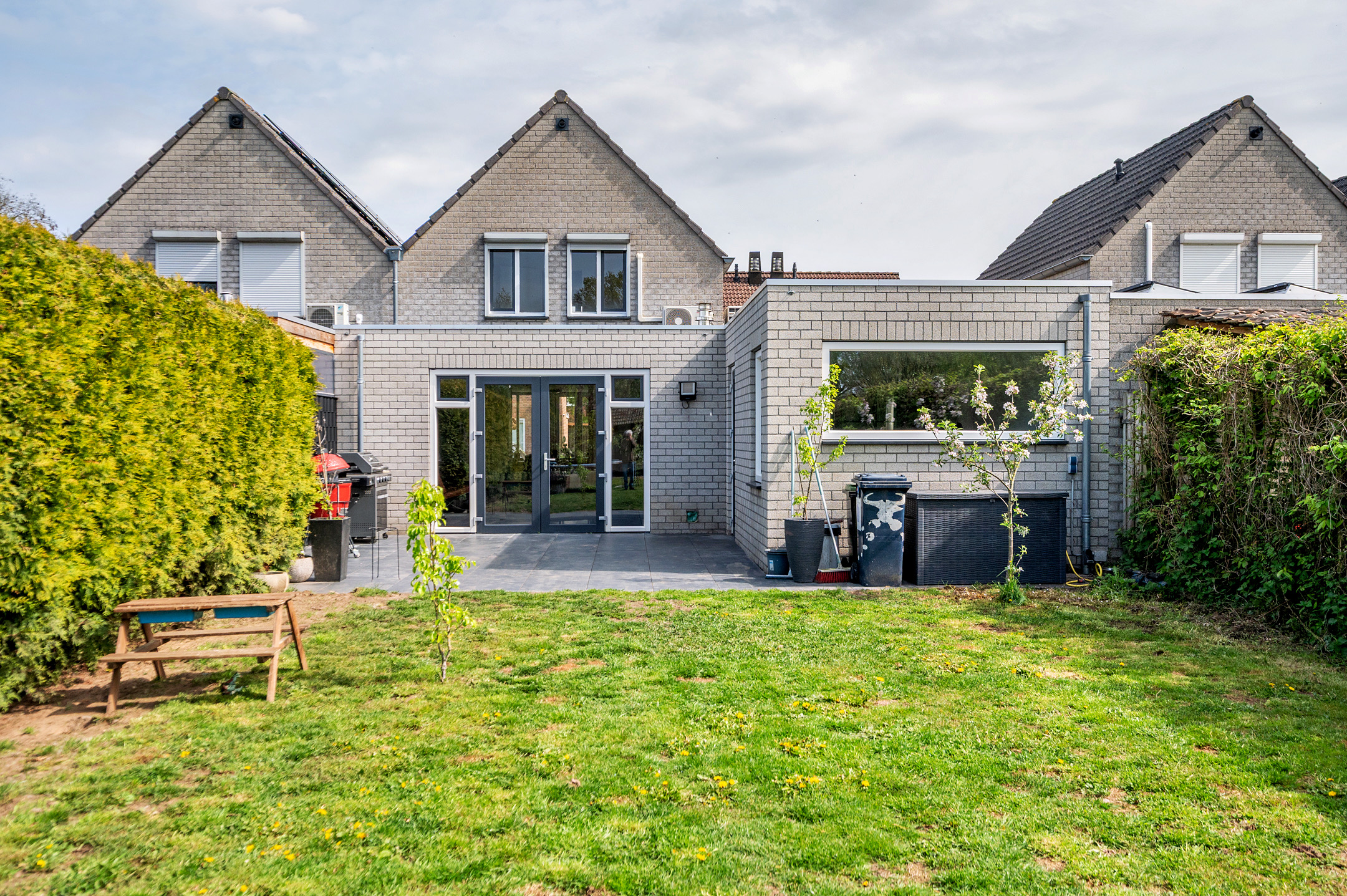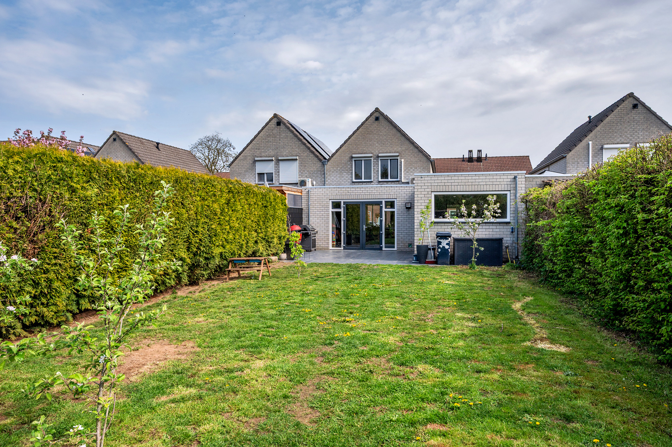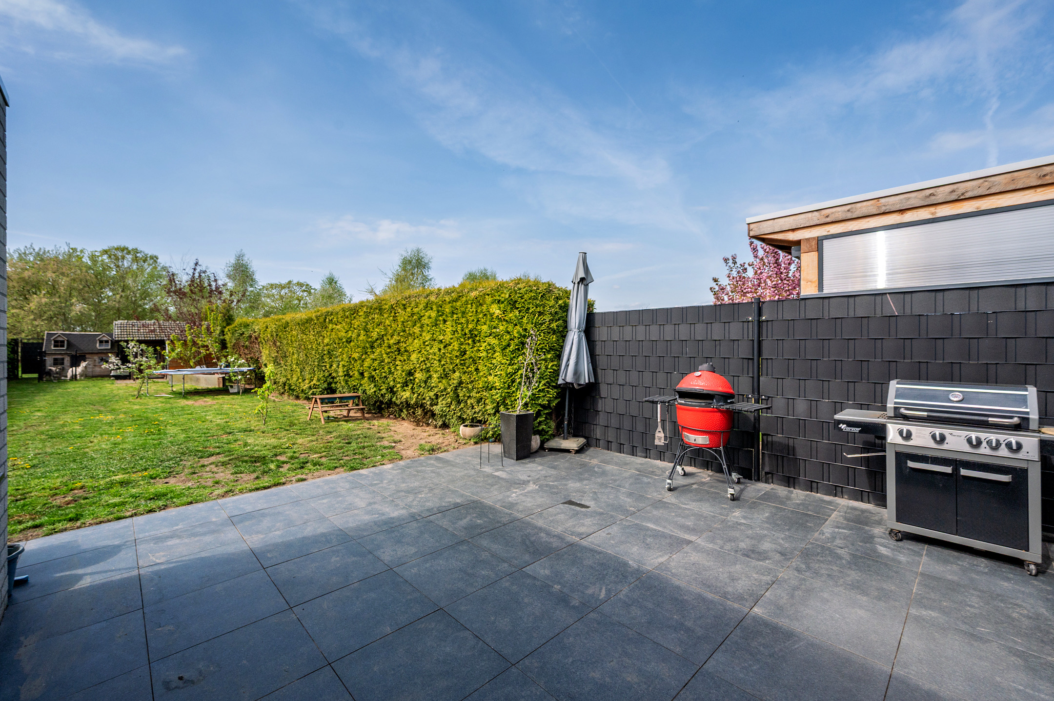 De onderhoudsvriendelijke achtertuin geniet veel privacy en is op het zuidwesten gelegen. Aan de achterzijde is er toegang tot de buitenberging. Aan de voorzijde is het mogelijk om 2 auto's op de eigen oprit te plaatsen.